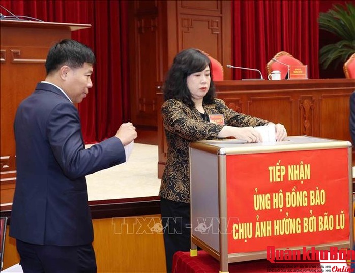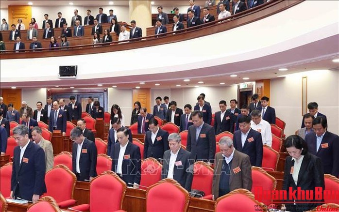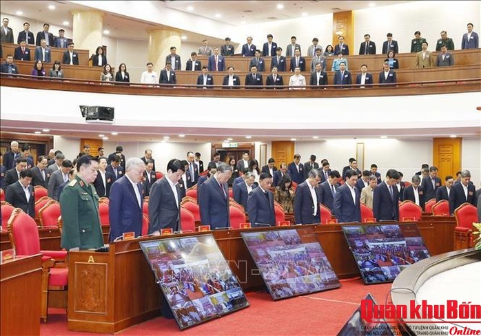 Tại hội nghị, Tổng Bí thư Tô Lâm và các đại biểu dành 1 phút mặc niệm đối với những người bị thiệt mạng do bão lũ và quyên góp, ủng hộ đồng bào chịu ảnh hưởng bởi bão lũ.