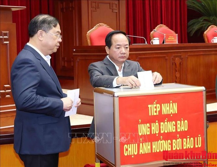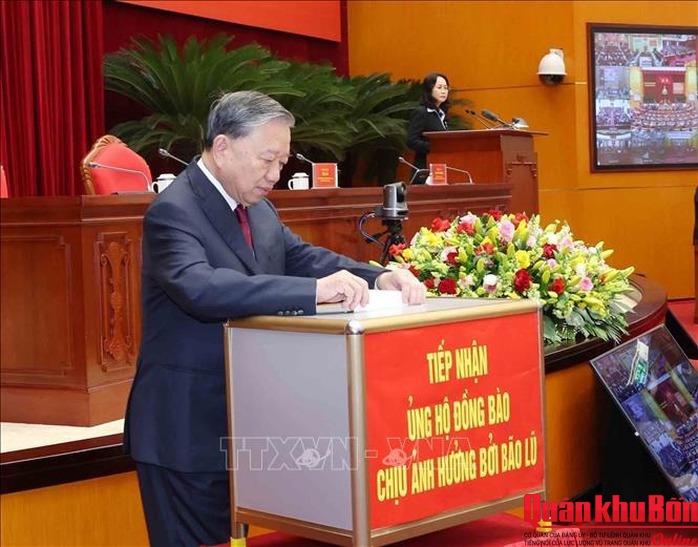 Hình ảnh Tổng Bí thư Tô Lâm và các đại biểu quyên góp, ủng hộ đồng bào chịu ảnh hưởng bởi bão lũ
