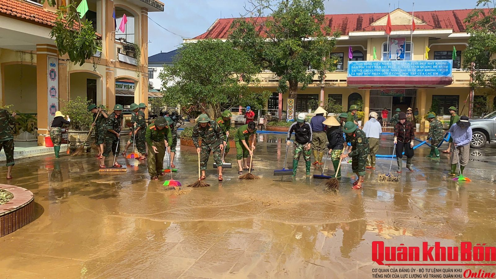 Với tinh thần “ở đâu Nhân dân khó, ở đó có bộ đội”, cán bộ, chiến sĩ lực lượng vũ trang tỉnh Quảng Trị đã không quản ngại gian khổ, dầm mình trong bùn đất, mưa lạnh để giúp các trường học sớm được vệ sinh sạch sẽ, tạo điều kiện cho thầy cô và học sinh trở lại giảng dạy, học tập trong thời gian sớm nhất.
