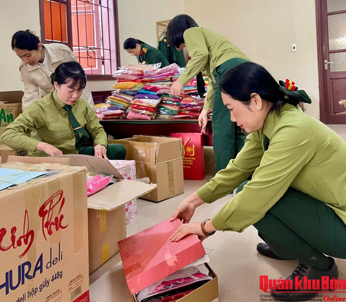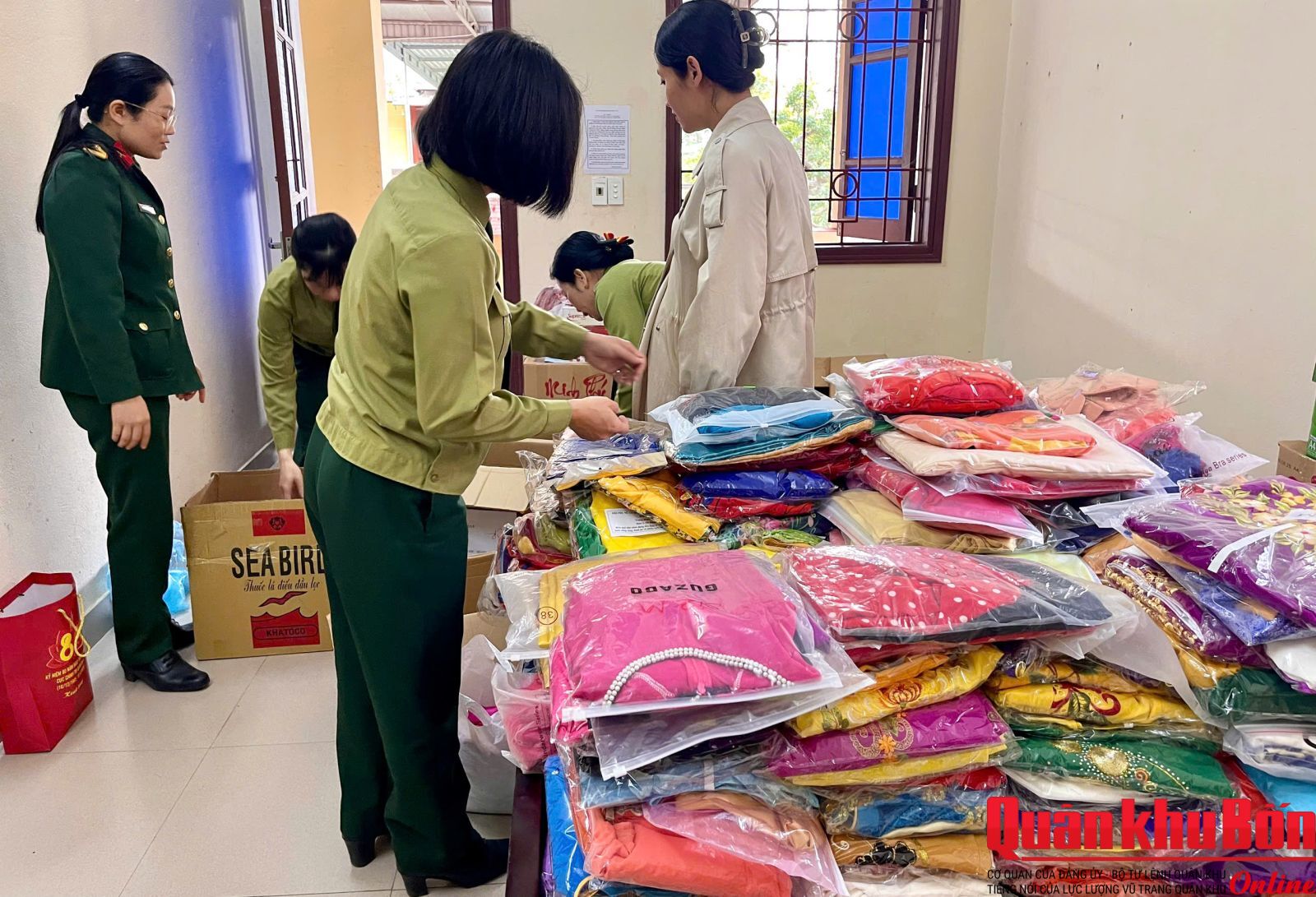 Hưởng ứng chương trình “Xuân biên cương - Tết ấm cho em - Hội chợ Tết 0 đồng” do Cục Chính trị Quân khu 4 phối hợp tổ chức nhân dịp Tết Nguyên đán Bính Ngọ năm 2026, sáng ngày 27/01/2026, Hội Phụ nữ cơ quan Cục Chính trị đã tổ chức phân loại, sắp xếp và đóng gói áo dài truyền thống để trao tặng các cô giáo đang công tác tại các trường học vùng cao miền núi xã Tam Thái, tỉnh Nghệ An. Đây là địa bàn từng chịu nhiều thiệt hại nặng nề do thiên tai, bão lũ trong thời gian vừa qua.
