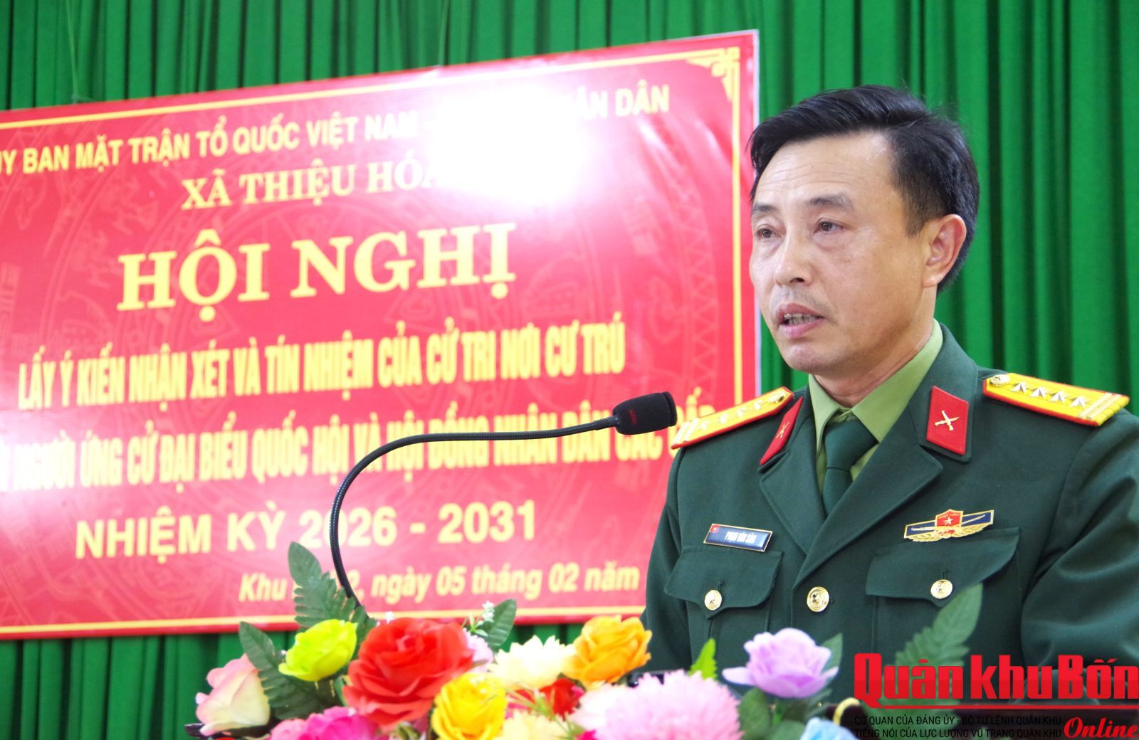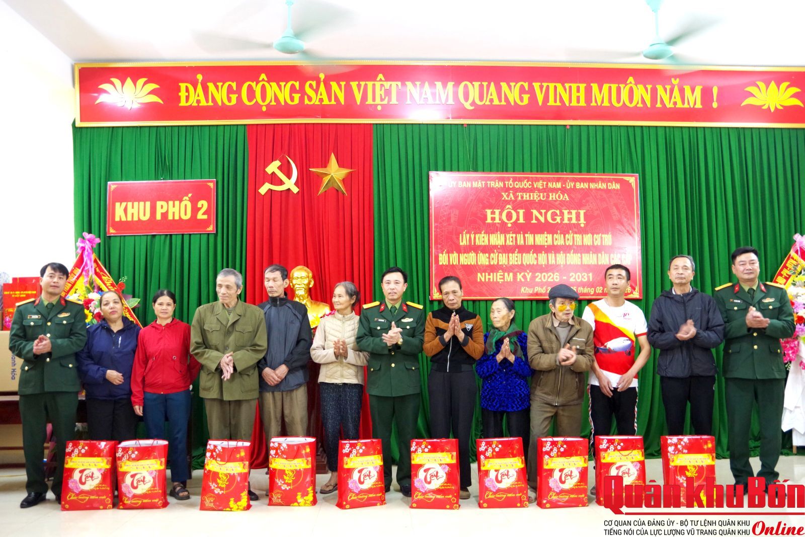 Tối ngày 05/02/2026, tại Khu phố 2, xã Thiệu Hóa, Ủy ban Mặt trận Tổ quốc Việt Nam tỉnh Thanh Hóa phối hợp với Ủy ban Nhân dân xã Thiệu Hóa tổ chức Hội nghị lấy ý kiến nhận xét và tín nhiệm của cử tri nơi cư trú đối với người ứng cử đại biểu Quốc hội và đại biểu Hội đồng Nhân dân các cấp, nhiệm kỳ 2026-2031.