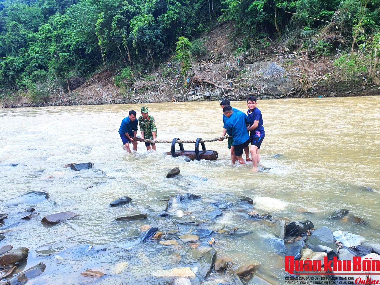 Trước đó, vào khoảng 21 giờ ngày 30/10/2025, trong khi đánh bắt cá trên sông Nậm Mô (đoạn qua bản Pủng, xã Tương Dương), người dân phát hiện một quả bom chưa nổ, nằm cách bờ sông khoảng 30 m, cách cầu Tân Xả khoảng 200 m. Ngay sau khi nhận được tin báo, Ban CHQS xã Tương Dương đã cử lực lượng xuống xác minh, khoanh vùng bảo vệ hiện trường, phối hợp với chính quyền địa phương tuyên truyền, vận động Nhân dân không đến gần khu vực có bom, đồng thời báo cáo và đề nghị cơ quan chức năng xử lý.
