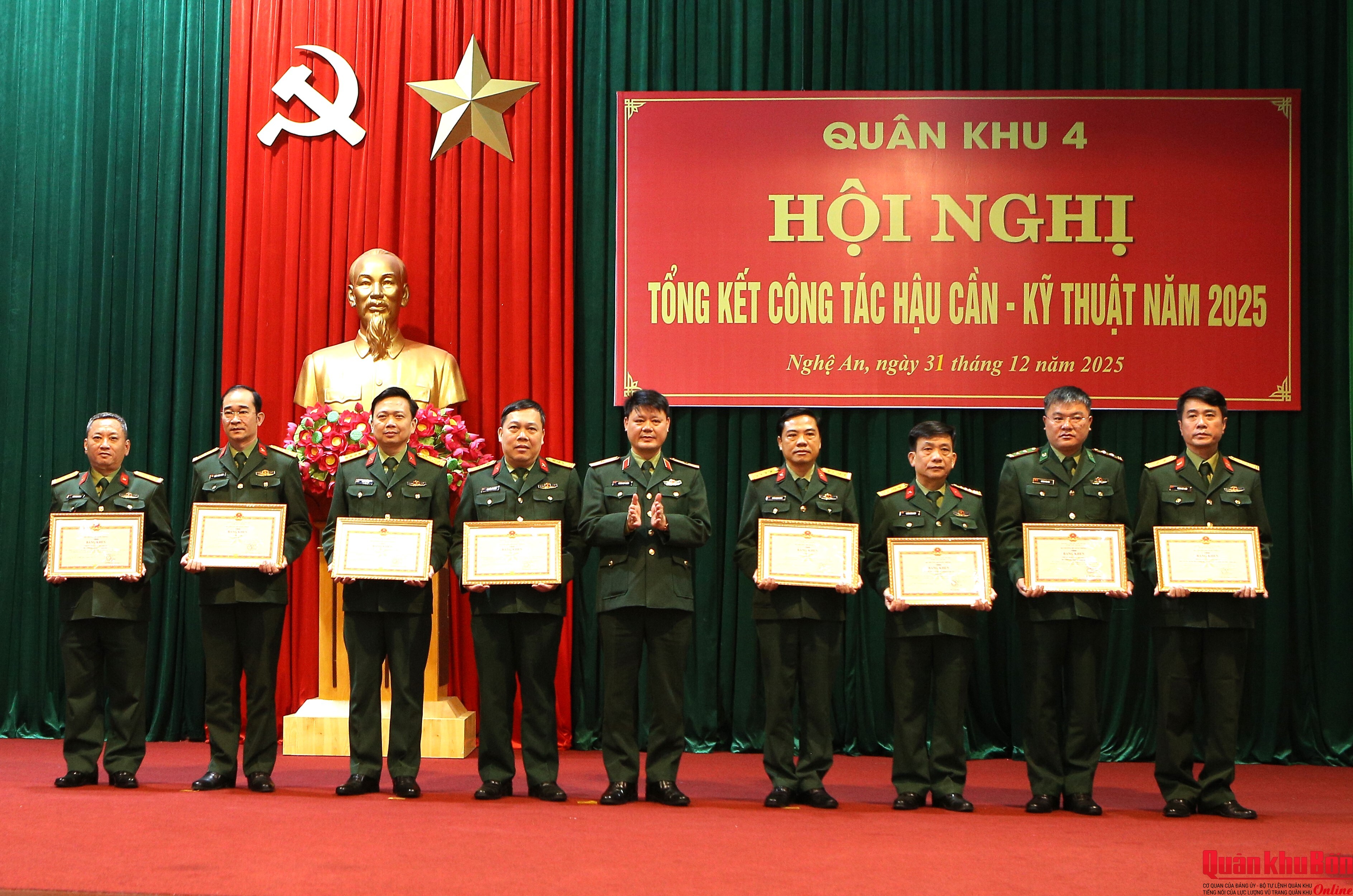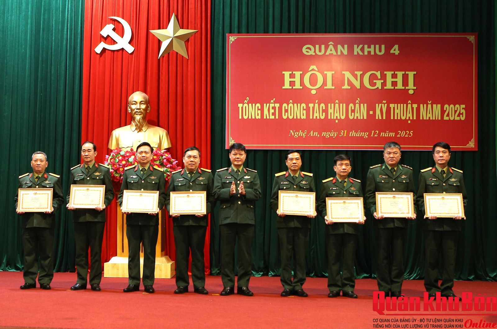 Tại hội nghị, thừa ủy quyền, Thiếu tướng Hoàng Duy Chiến, Phó Tư lệnh Quân khu đã trao Bằng khen của Bộ trưởng Bộ Quốc phòng tặng 8 tập thể vì đã có thành tích tiêu biểu, xuất sắc trong thực hiện Phong trào thi đua “Ngành Hậu cần Quân đội làm theo lời Bác Hồ dạy” và Cuộc vận động Quản lý, khai thác vũ khí trang bị kỹ thuật tốt bền, an toàn, tiết kiệm và an toàn giao thông (Cuộc vận động 50) giai đoạn 2020 - 2025. Thủ trưởng Cục Hậu cần - Kỹ thuật đã trao thưởng cho đại diện các tập thể, cá nhân đạt thành tích cao trong Hội thi đơn vị tăng gia sản xuất giỏi cấp tiểu đoàn năm 2025.