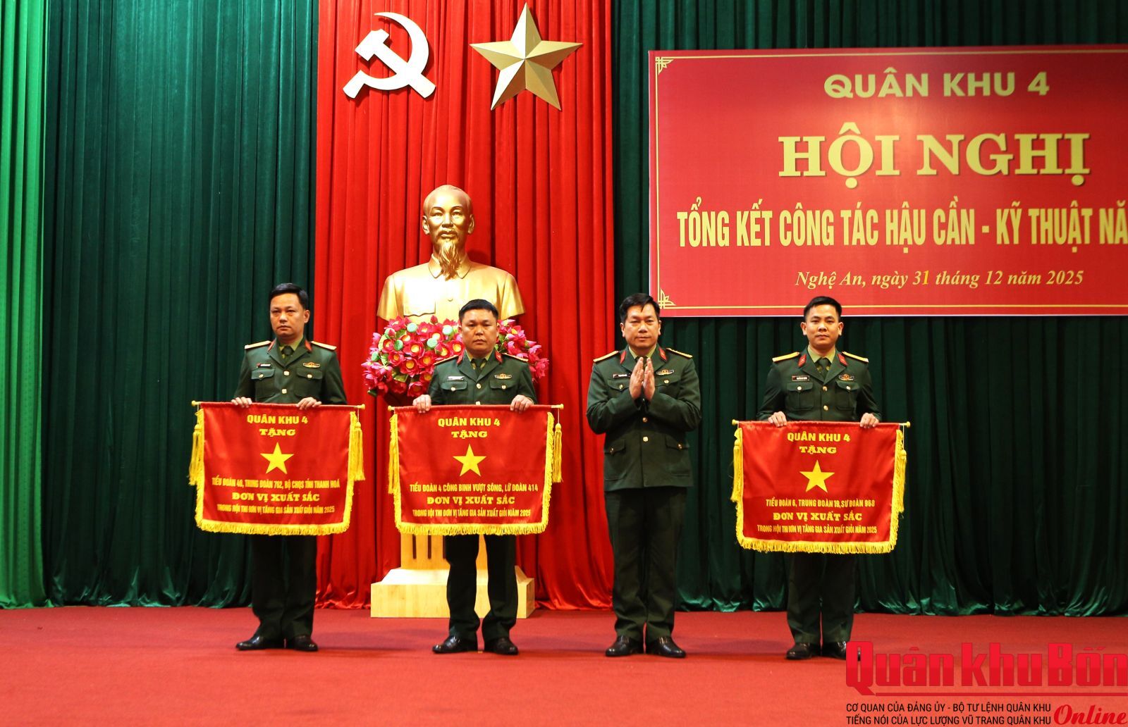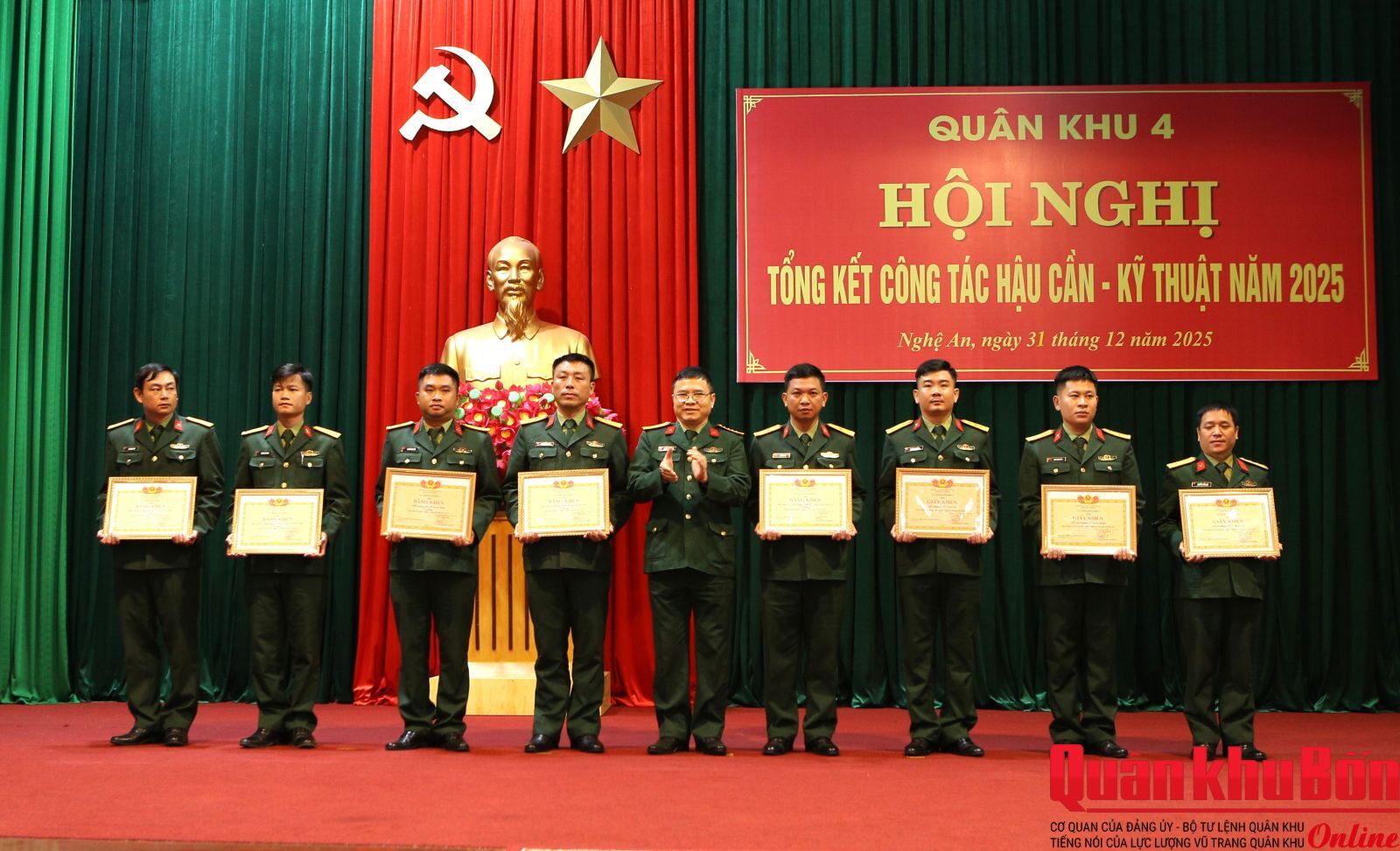 (Năm 2025, Quân khu 4 có 2 tập thể được tặng Cờ thưởng Bộ Quốc phòng; 4 tập thể, 4 cá nhân được tặng Bằng khen của Bộ trưởng Bộ Quốc phòng vì đã có thành tích tiêu biểu, xuất sắc trong thực hiện Phong trào thi đua “Ngành Hậu cần Quân đội làm theo lời Bác Hồ dạy”. 2 tập thể được tặng Cờ thưởng Bộ Quốc phòng; 5 tập thể và 12 cá nhân được tặng Bằng khen của Bộ trưởng Bộ Quốc phòng vì đã có thành tích xuất sắc, tiêu biểu trong thực hiện Cuộc vận động 50 giai đoạn 2020 - 2025.