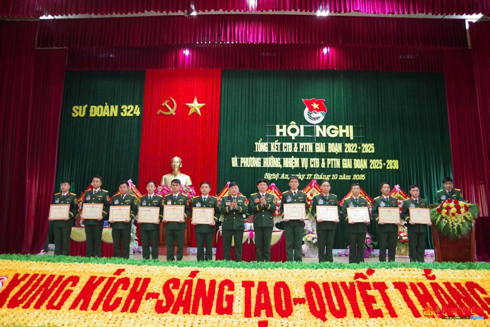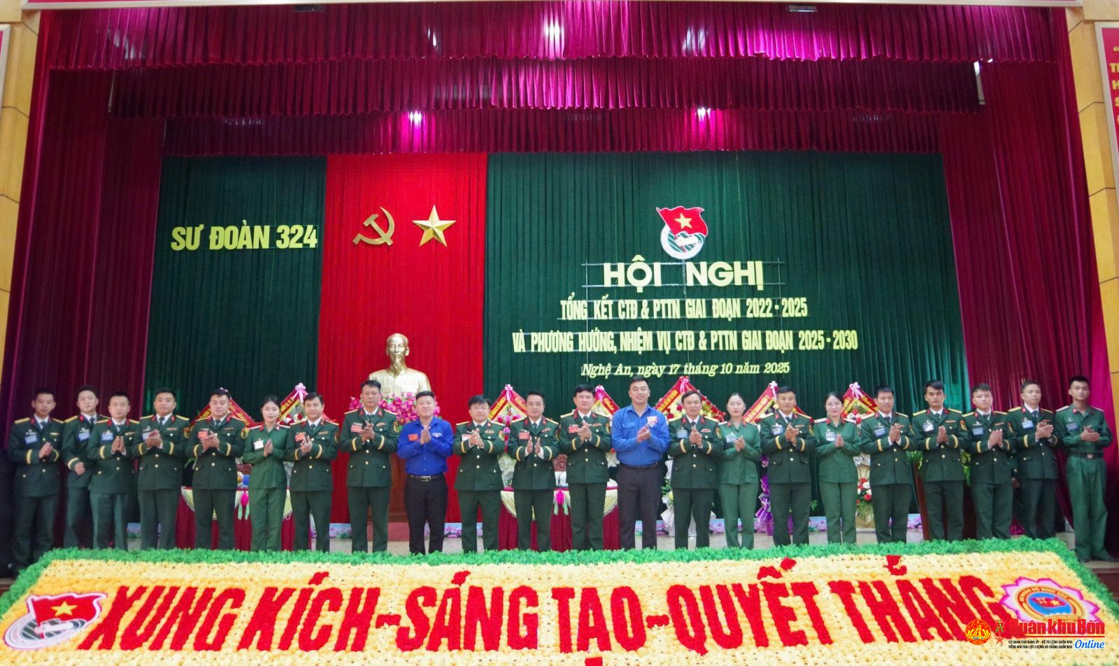 Ngày 17/10/2025, Sư đoàn 324 đã tổ chức Hội nghị tổng kết hoạt động công tác đoàn và phong trào thành niên (CTĐ & PTTN) Sư đoàn giai đoạn 2022 - 2025 và phương hướng, nhiệm vụ hoạt động CTĐ và PTTN giai đoạn 2025 - 2030. Dự Hội nghị có Đại tá Bùi Thế Kỷ, Trưởng phòng Công tác quần chúng, Cục Chính trị Quân khu; Đại tá Nguyễn Thao Trường, Phó Bí thư Đảng ủy, Sư đoàn trưởng, Đại tá Nguyễn Huy Long, Bí thư Đảng ủy, Chỉnh ủy Sư đoàn.