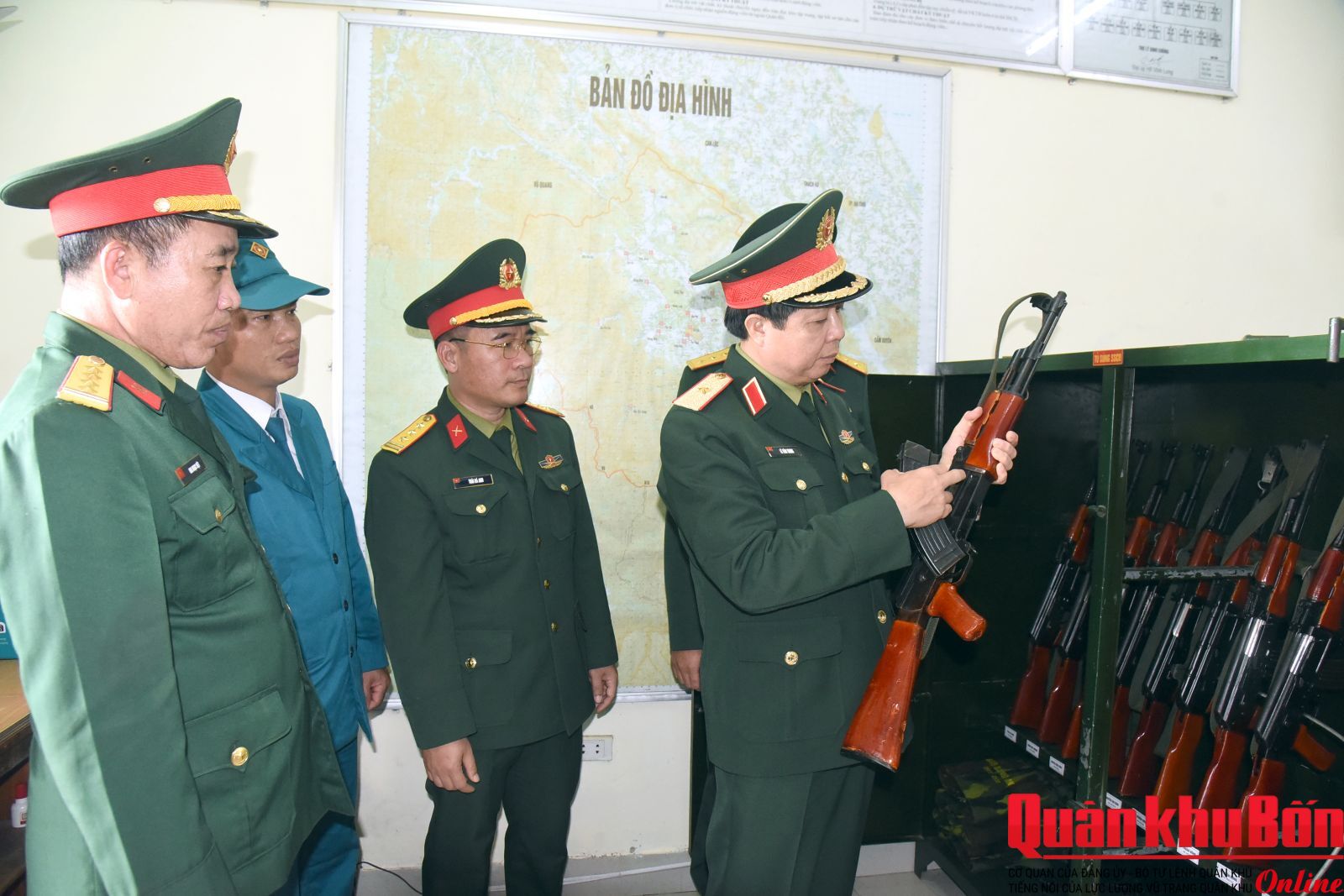 Thiếu tướng Lê Văn Trung kiểm tra, chúc Tết tại Ban Chỉ huy Quân sự xã Hương Khê