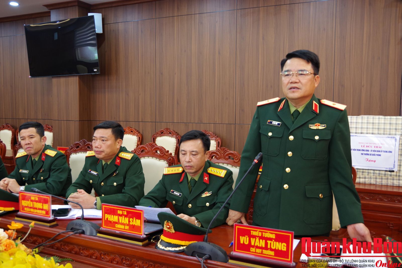 Sau khi nghe báo cáo tình hình thực hiện nhiệm vụ, Thượng tướng Lê Đức Thái ghi nhận, biểu dương và đánh giá cao tinh thần trách nhiệm, kết quả đạt được trên các mặt công tác quân sự, quốc phòng và biên phòng của Bộ CHQS tỉnh trong năm 2025 và hai tháng đầu năm 2026.