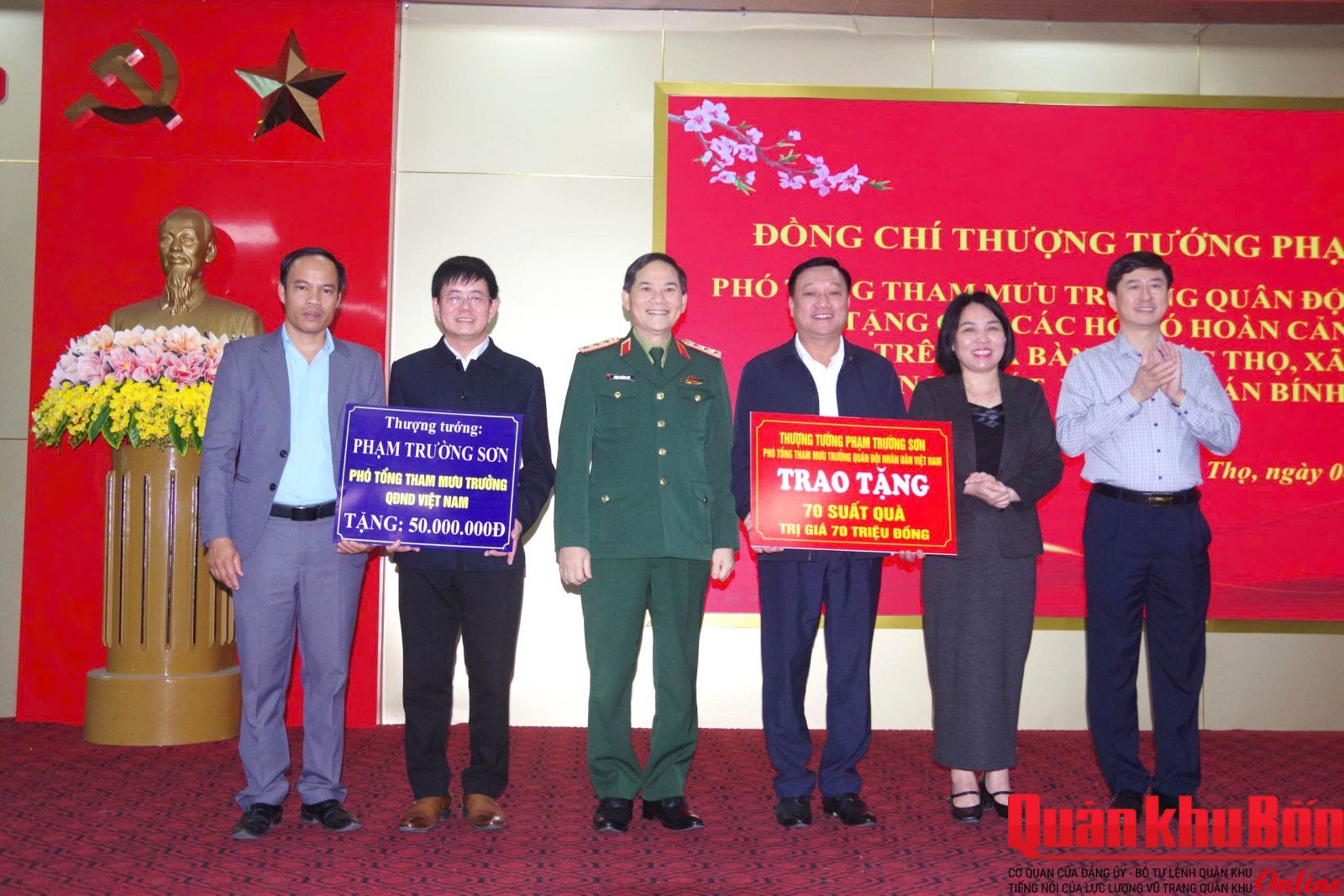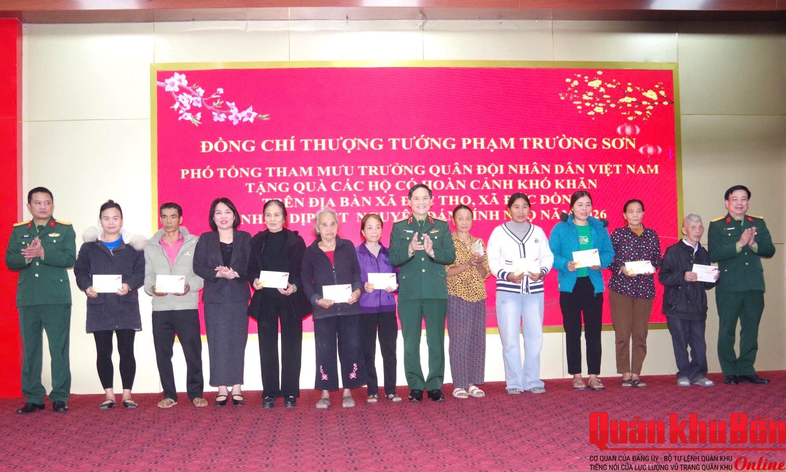 Ngày 4/2/2026, Thượng tướng Phạm Trường Sơn, Phó tổng Tham mưu trưởng Quân đội Nhân dân Việt Nam đã đến thăm, kiểm tra, chúc Tết các đơn vị và trao quà tặng các đối tượng chính sách, hộ nghèo trên địa bàn tỉnh Hà Tĩnh. Cùng đi có Thiếu tướng Hoàng Duy Chiến, Phó Tư lệnh Quân khu 4.
