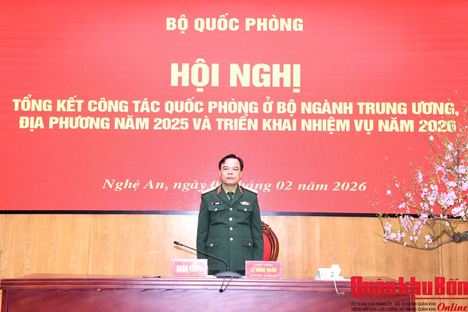 Tại điểm cầu Sở chỉ huy Quân khu 4, Thiếu tướng Lê Hồng Nhân, Phó Tư lệnh kiêm Tham mưu trưởng Quân khu chủ trì. Dự Hội nghị có Thiếu tướng Lê Văn Vỹ, Phó Tham mưu trưởng Quân khu; Đại tá Nguyễn Kỳ Hồng, Phó Chủ nhiệm Chính trị Quân khu cùng thủ trưởng các phòng, ban cơ quan Quân khu, Trường Quân sự Quân khu, Tổng Công ty Hợp tác kinh tế.