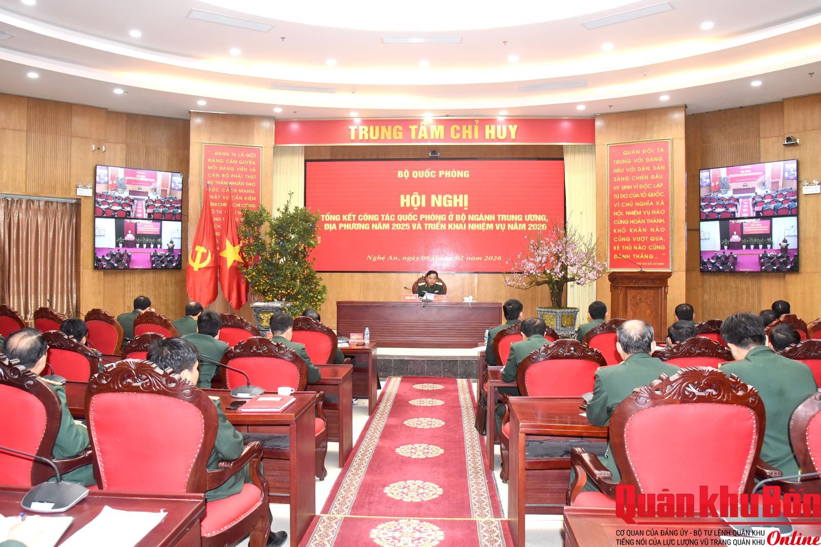 Sáng 06/02/2026, Bộ Quốc phòng tổ chức Hội nghị tổng kết công tác quốc phòng ở các bộ, ngành Trung ương, địa phương năm 2025 và triển khai nhiệm vụ năm 2026. Thượng tướng Huỳnh Chiến Thắng, Phó Tổng Tham mưu trưởng Quân đội nhân dân Việt Nam chủ trì Hội nghị. Hội nghị được tổ chức theo hình thức trực tiếp kết hợp trực tuyến tại 60 điểm cầu trong toàn quân.