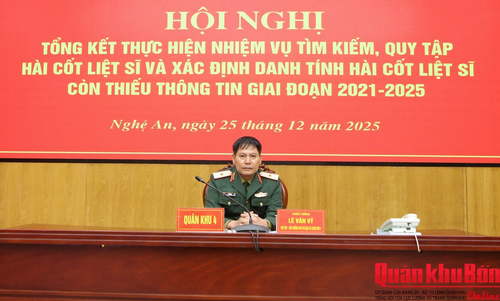 Tại hội nghị, Ban Tổ chức đã công bố quyết định và trao Bằng khen của Bộ trưởng Bộ Quốc phòng tặng 48 tập thể và 69 cá nhân có nhiều thành tích xuất sắc trong thực hiện nhiệm vụ tìm kiếm, quy tập hài cốt liệt sĩ và xác định danh tính hài cốt liệt sĩ còn thiếu thông tin giai đoạn 2021-2025. Quân khu 4 có 8 tập thể (gồm: tập thể Quân khu 4, Đoàn Kinh tế - Quốc phòng 337, Sư đoàn 968, Ban Bản đồ/Phòng tác chiến/Bộ tham mưu, Phòng Chính sách, Bộ Chỉ huy Quân sự các tỉnh Thanh Hoá, Nghệ An, Quảng Trị) cùng 10 cá nhân được nhận Bằng khen của Bộ trưởng Bộ Quốc phòng. Đội Quy tập hài cốt liệt sĩ, Phòng Chính trị, Bộ Chỉ huy Quân sự tỉnh Nghệ An và Thượng tá Chế Ngọc Hà, Đội trưởng được đề nghị Chủ tịch nước tặng Huân chương Bảo vệ Tổ quốc hạng Ba.
