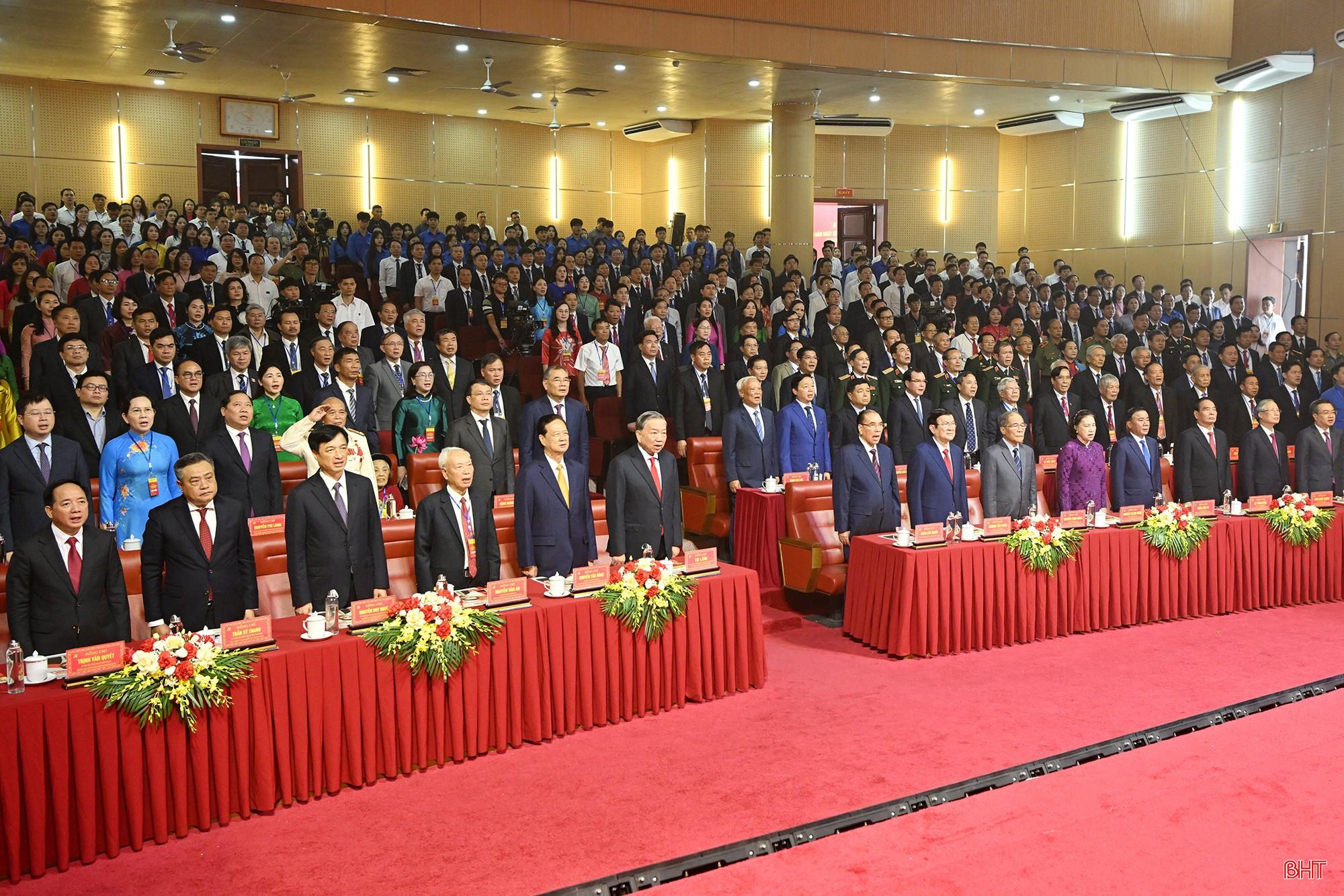 Tập trung xây dựng Đảng và hệ thống chính trị trong sạch, vững mạnh; quyết liệt thực hiện mục tiêu tăng trưởng trên 10% gắn với xác lập mô hình tăng trưởng mới dựa trên khoa học, công nghệ, đổi mới sáng tạo và chuyển đổi số; phát huy mạnh mẽ giá trị văn hóa và con người Hà Tĩnh; không ngừng nâng cao đời sống vật chất, tinh thần của Nhân dân, đưa tỉnh nhà phát triển nhanh và bền vững; góp phần cùng cả nước từng bước hiện thực hóa mục tiêu “xây dựng nước Việt Nam hòa bình, độc lập, dân chủ, giàu mạnh, phồn vinh, văn minh, hạnh phúc, vững bước đi lên chủ nghĩa xã hội” như tư tưởng chỉ đạo của đồng chí Tô Lâm - Tổng Bí thư, Chủ tịch nước.