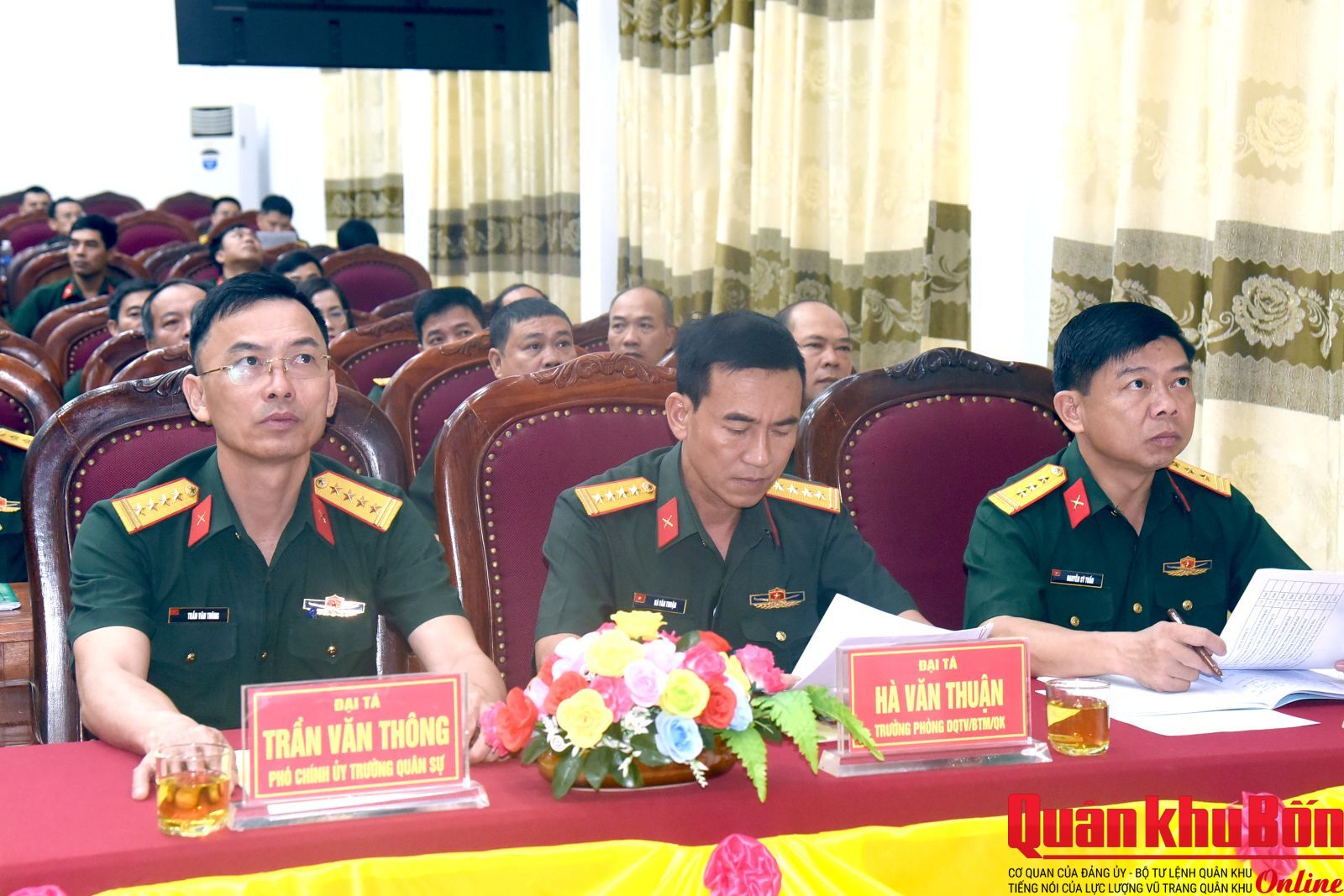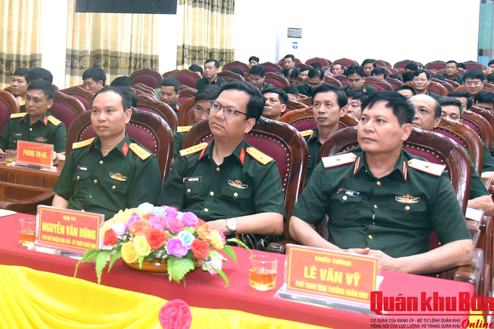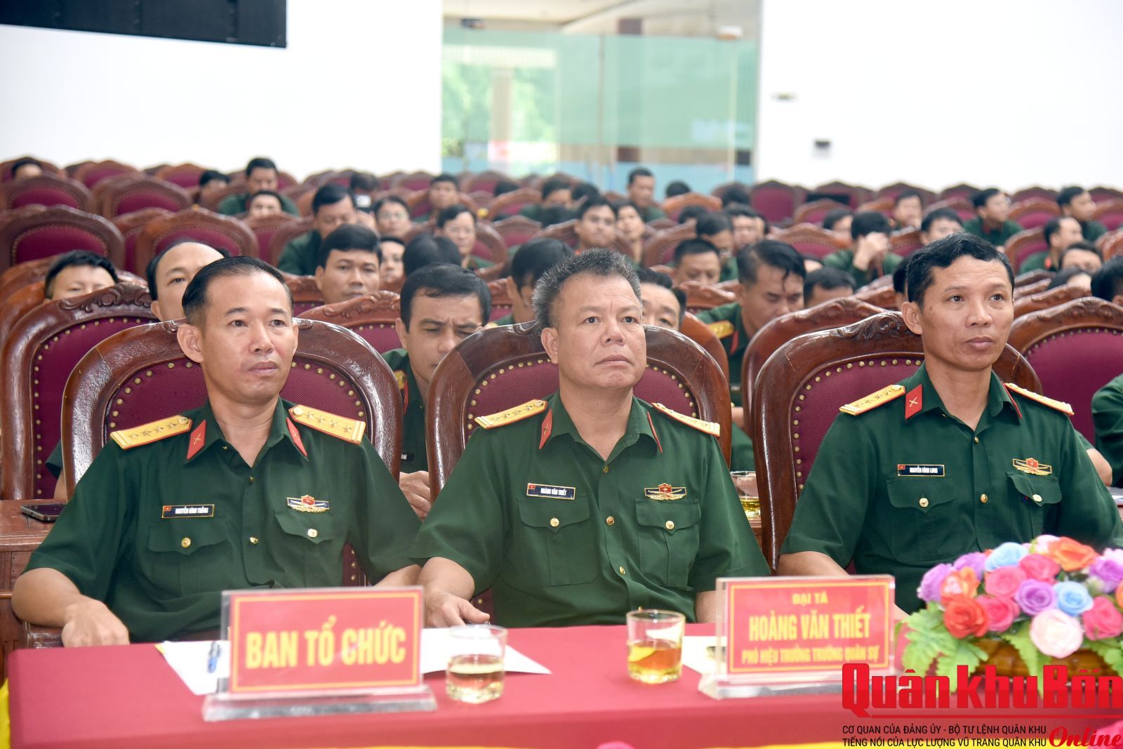 Ngoài ra, các học viên còn được huấn luyện và thực hành bắn súng ngắn K54 bài 1b; luyện tập một số nội dung cơ chế diễn tập tác chiến cấp xã trong khu vực phòng thủ; tham quan, nghiên cứu thực tế tại Lữ đoàn Công binh 414. Ban Giám hiệu Nhà trường tổ chức thông tin thời sự về tình hình thế giới, khu vực, trong nước, Quân đội và Quân khu thời gian qua, góp phần nâng cao tư duy, tầm nhìn chiến lược cho các học viên... Cuối khóa các học viên viết thu hoạch theo chuyên đề. Kết quả 100% học viên đạt khá, giỏi; trong đó 40,8% giỏi.