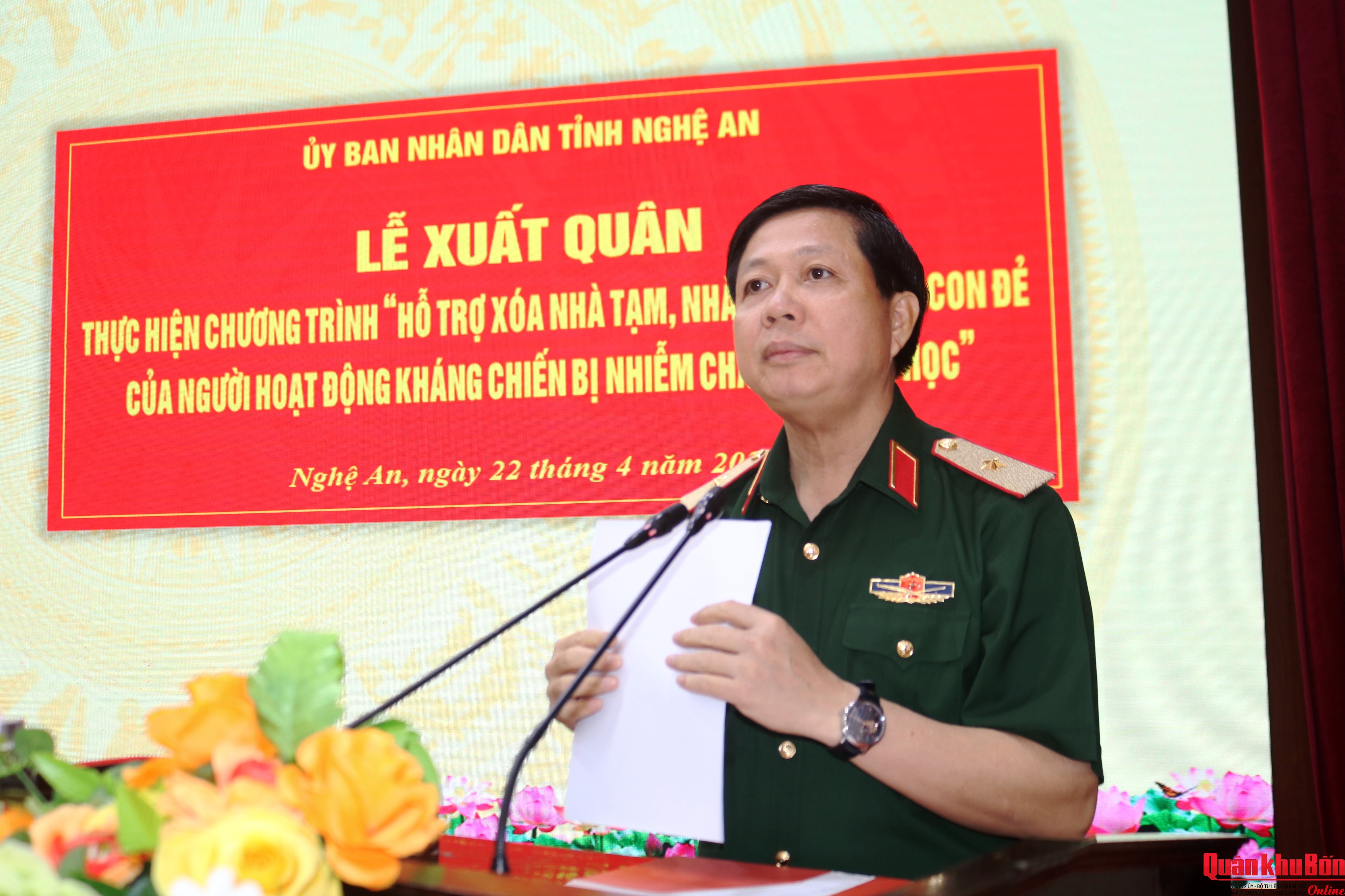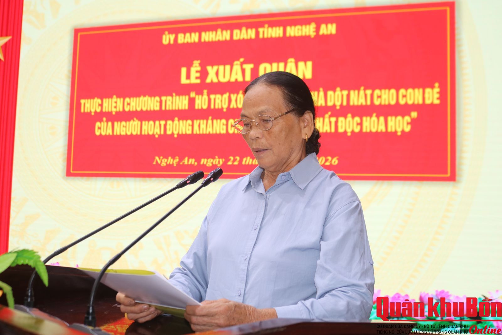Sáng ngày 22/4/2026, tỉnh Nghệ An đã tổ chức Lễ xuất quân thực hiện Chương trình “Hỗ trợ xóa nhà tạm, nhà dột nát cho con đẻ của người hoạt động kháng chiến bị nhiễm chất độc hóa học” trên địa bàn tỉnh.