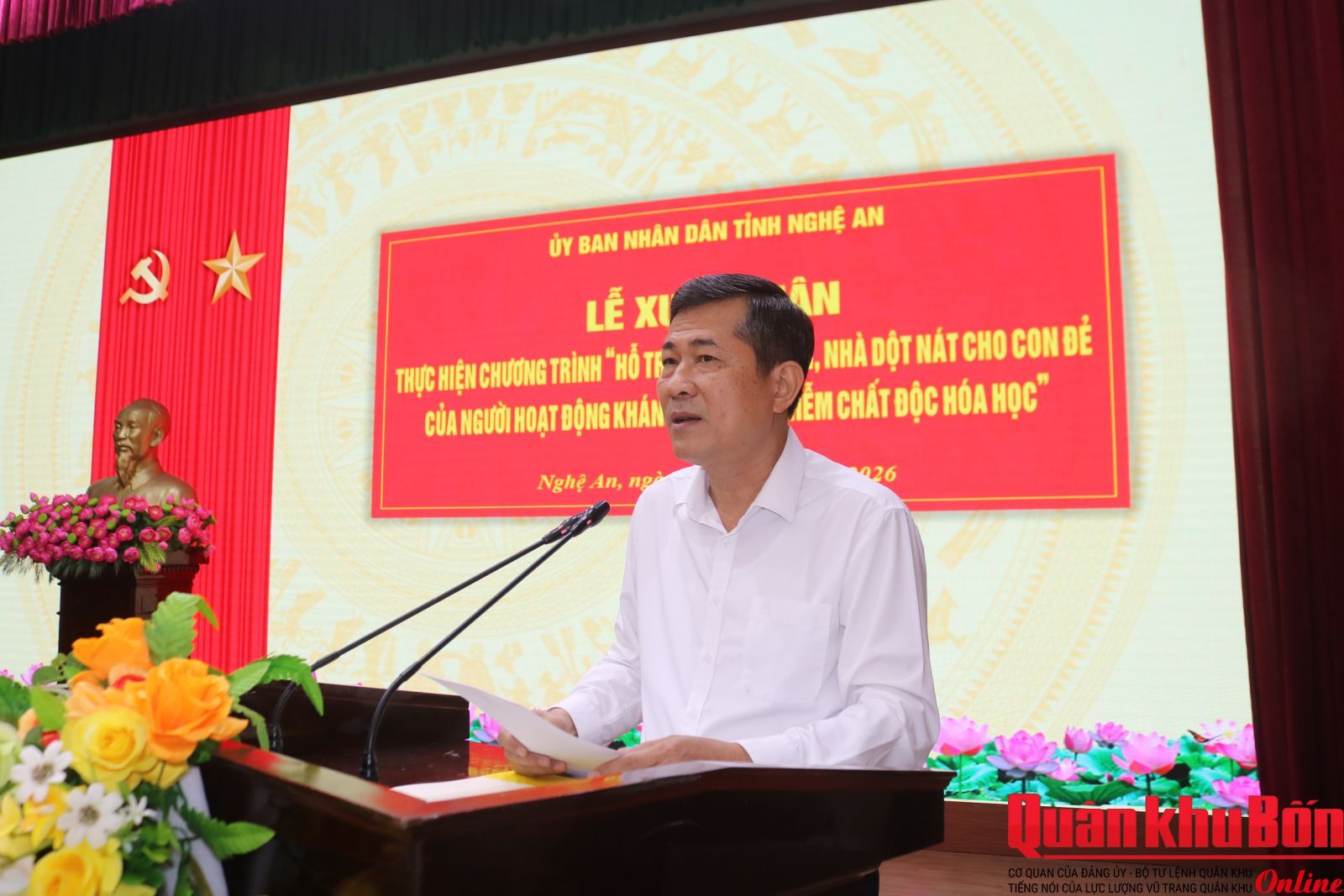Lễ xuất quân thực hiện Chương trình “Hỗ trợ xóa nhà tạm, nhà dột nát cho con đẻ của người hoạt động kháng chiến bị nhiễm chất độc hóa học” trên địa bàn tỉnh Nghệ An với mục tiêu: 100% đối tượng đủ điều kiện đều được quan tâm, hỗ trợ; mỗi căn nhà được xây mới hoặc sửa chữa đều phải bảo đảm đúng tiêu chí, đúng chất lượng, bền vững, an toàn, phù hợp điều kiện thực tế từng địa phương. Trong đó chú trọng diện tích nhà ở, kết cấu nền - móng, khung - tường, mái và mức độ an toàn trong sử dụng. Mức hỗ trợ 60 triệu đồng/hộ khi xây mới; 30 triệu đồng/hộ khi sửa chữa. Thời gian hoàn thành việc hỗ trợ xây dựng, sửa chữa nhà trước ngày 27/7/2026.
