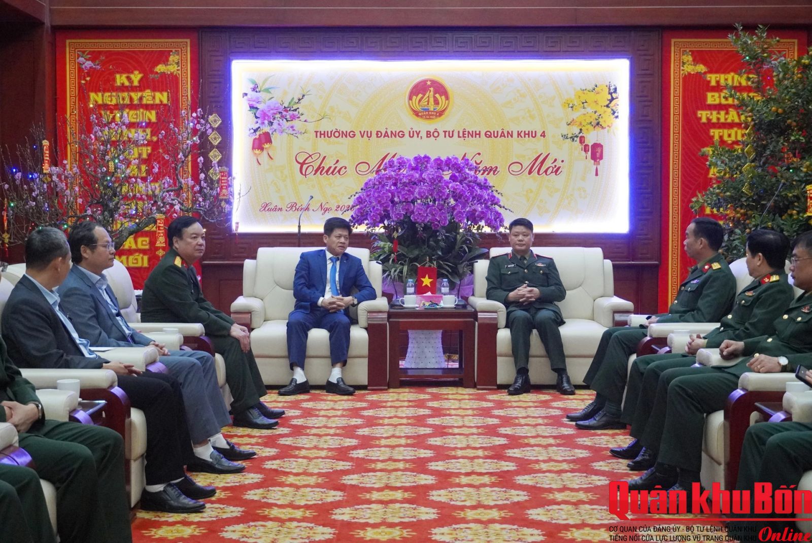 Ngày 2/2/2026, đoàn công tác của tỉnh Quảng Trị do đồng chí Lê Văn Bảo, Ủy viên Ban Thường vụ Tỉnh ủy, Phó Chủ tịch Ủy ban Nhân dân (UBND) tỉnh làm trưởng đoàn đã đến thăm, chúc Tết tại Bộ Tư lệnh Quân khu 4. Thiếu tướng Hoàng Duy Chiến, Phó Tư lệnh Quân khu 4 tiếp đoàn công tác.