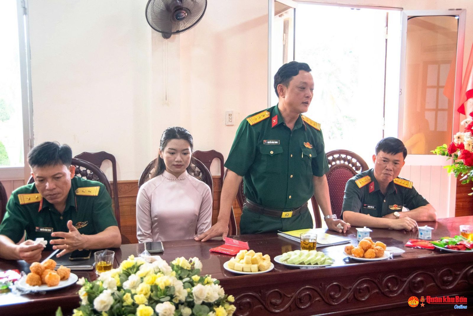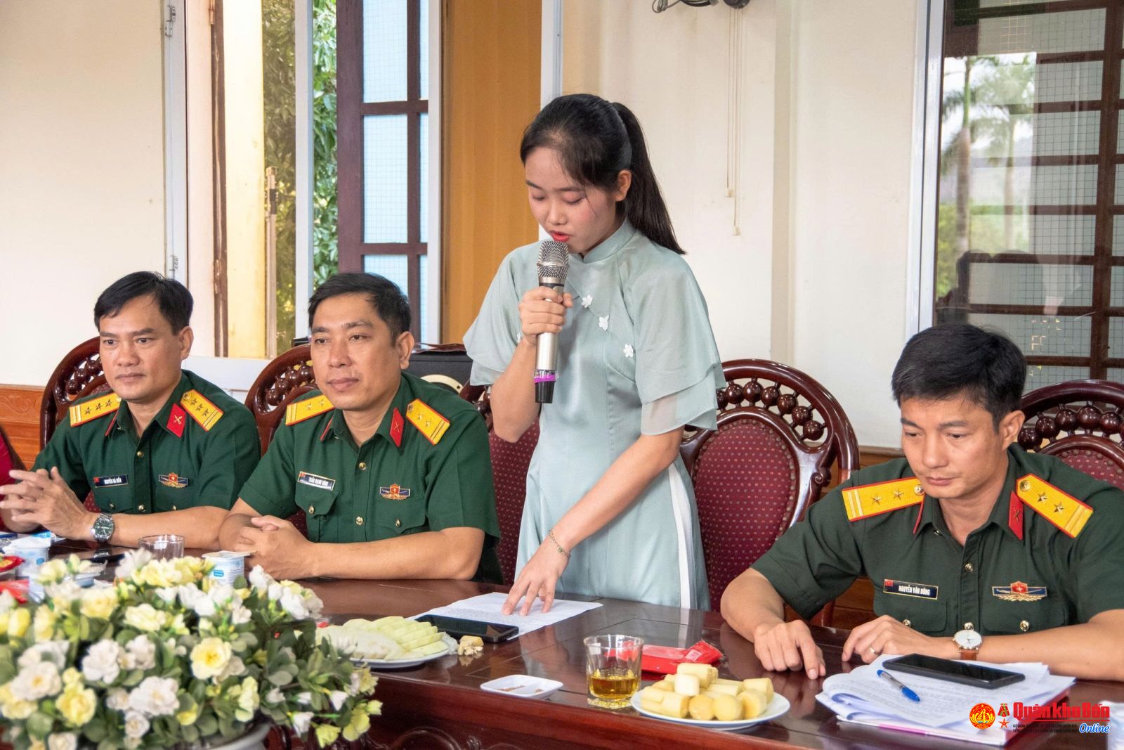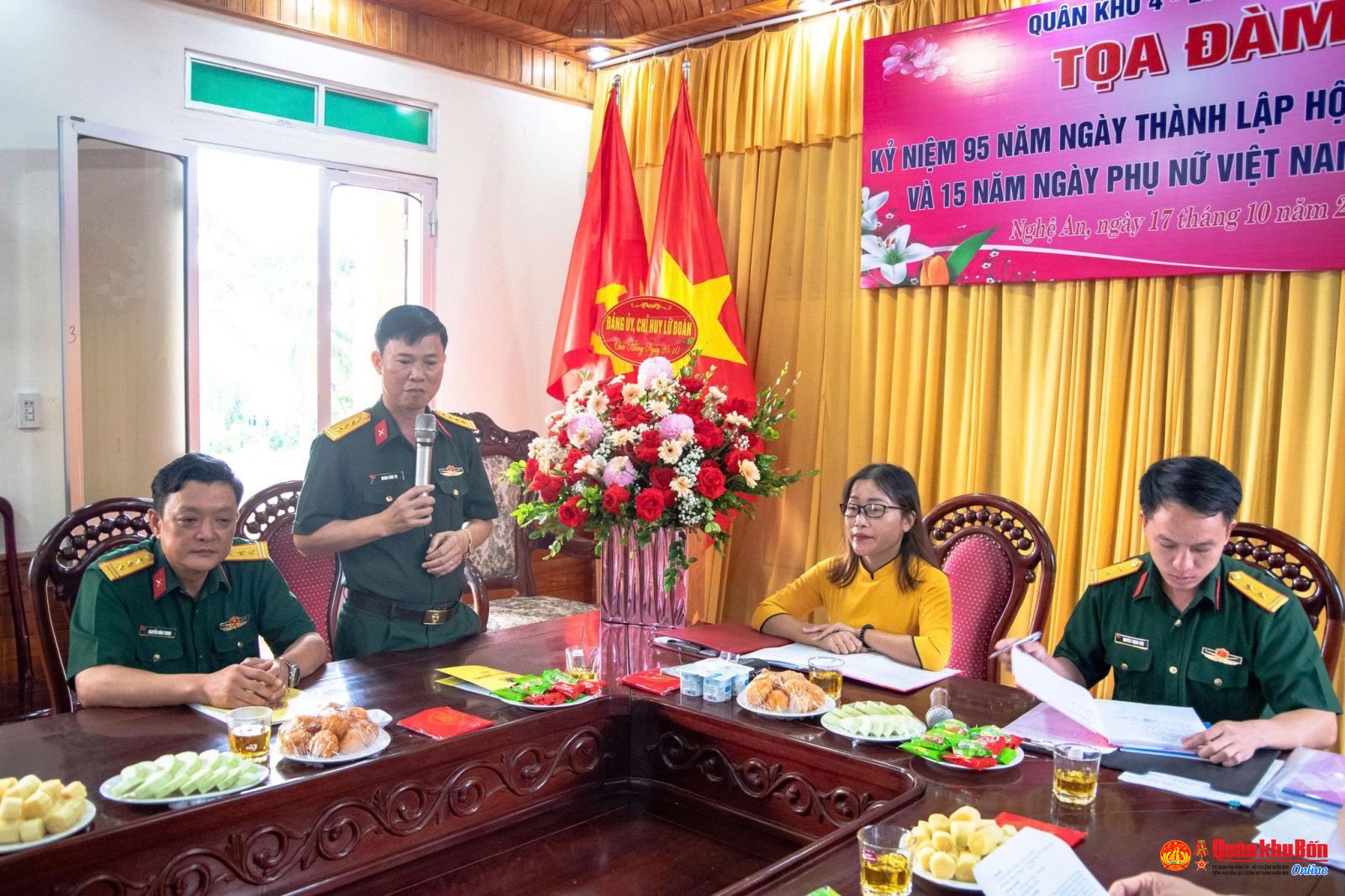 Trong chương trình Tọa đàm, Trung tá Nguyễn Trọng Biên, Phó Chủ nhiệm Chính trị, Bí thư Đoàn cơ sở đã gửi tặng chị em phụ nữ bài thơ hay, ý nghĩa do đồng chí sáng tác với tiêu đề “Hoa đẹp quân ngũ”, ca ngợi vẻ đẹp, tinh thần, nghị lực và sự cống hiến thầm lặng của những nữ quân nhân: