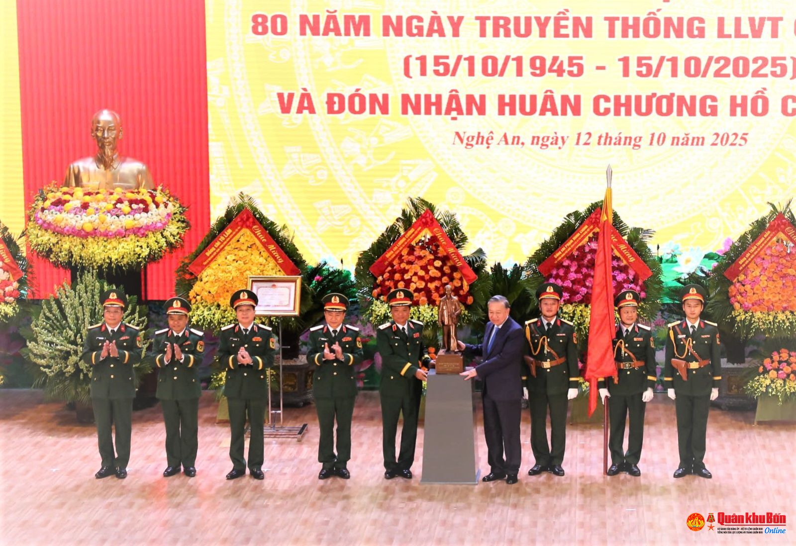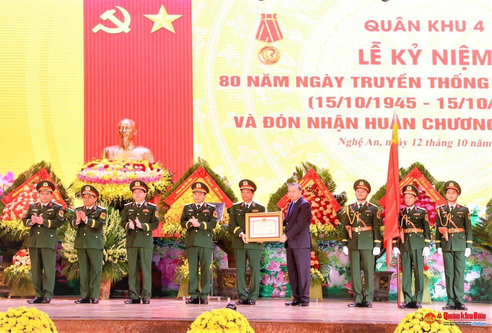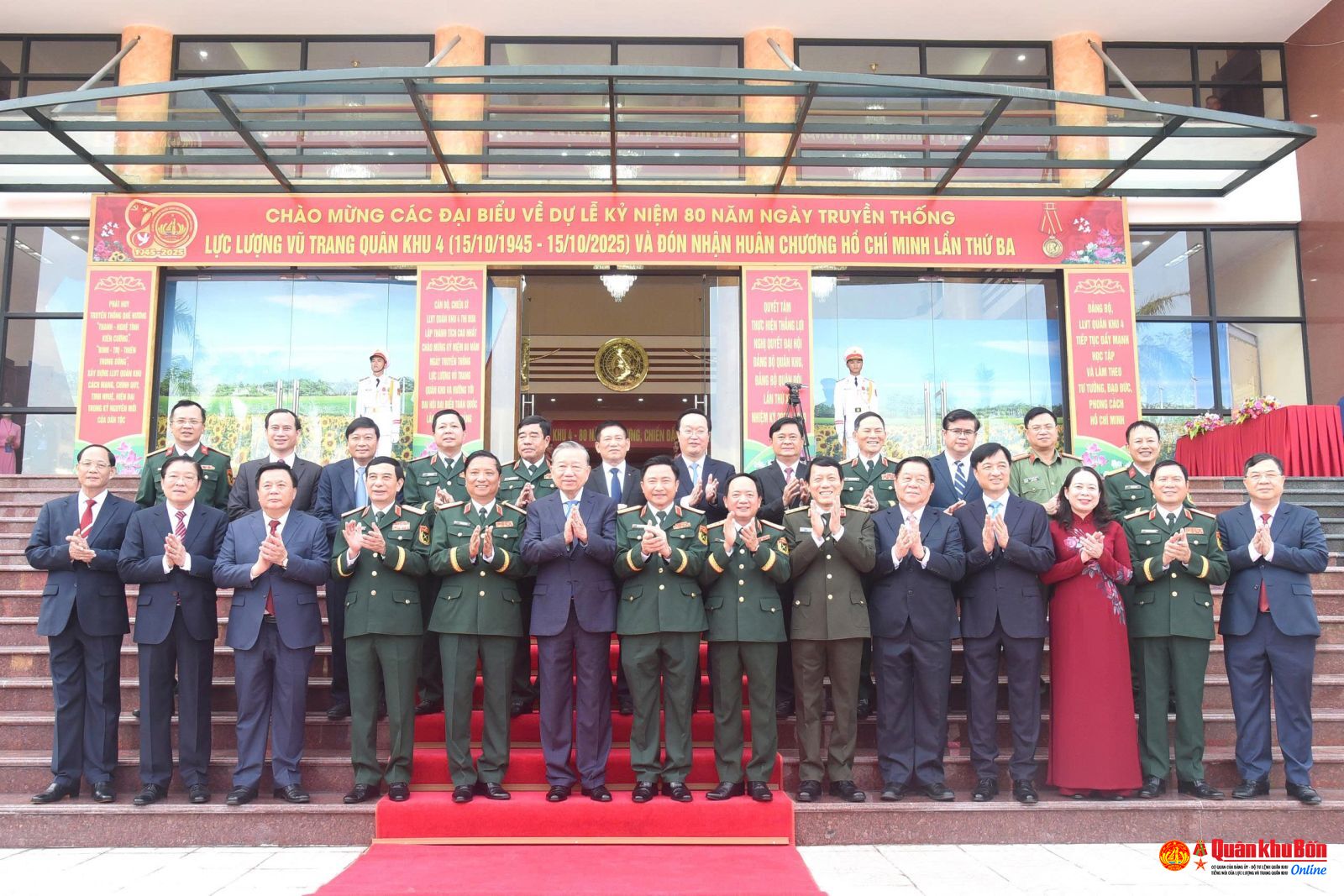 Thay mặt lãnh đạo Đảng, Nhà nước, đồng chí Tô Lâm, Tổng Bí thư Ban Chấp hành Trung ương Đảng Cộng sản Việt Nam, Bí thư Quân ủy Trung ương trao Huân chương Hồ Chí Minh tặng LLVT Quân khu 4, ghi nhận những thành tích đặc biệt xuất sắc trong sự nghiệp xây dựng và bảo vệ Tổ quốc.
