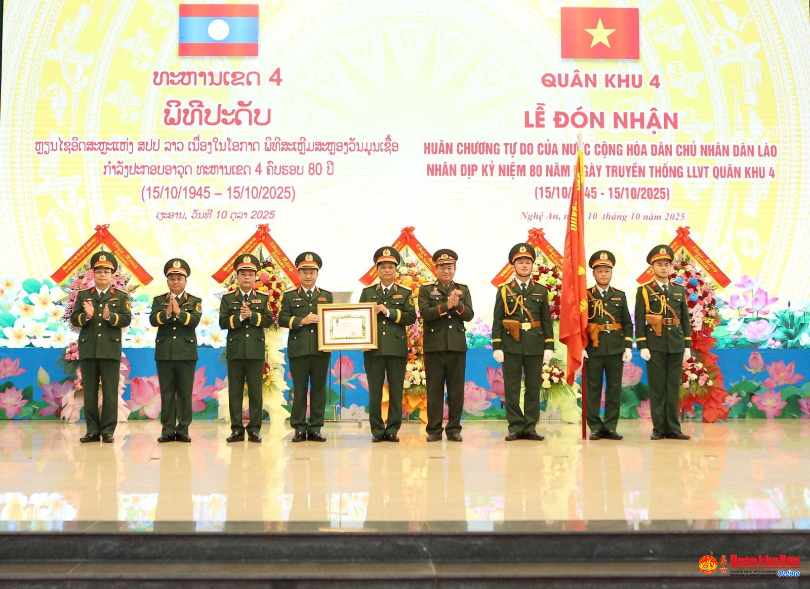 Cũng trong dịp này, Nhà nước Cộng hòa Dân chủ Nhân dân Lào đã trao Huân chương Tự do hạng Nhất tặng LLVT Quân khu 4 - biểu tượng của tình đoàn kết, hữu nghị vĩ đại, gắn bó keo sơn giữa hai nước Việt - Lào anh em.