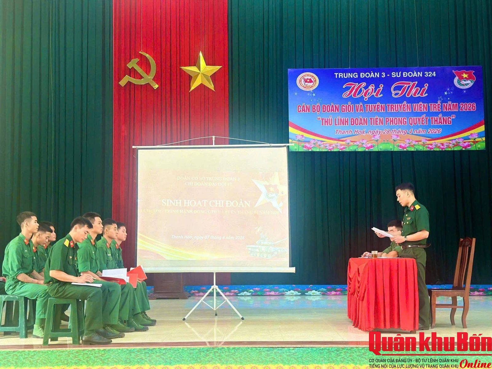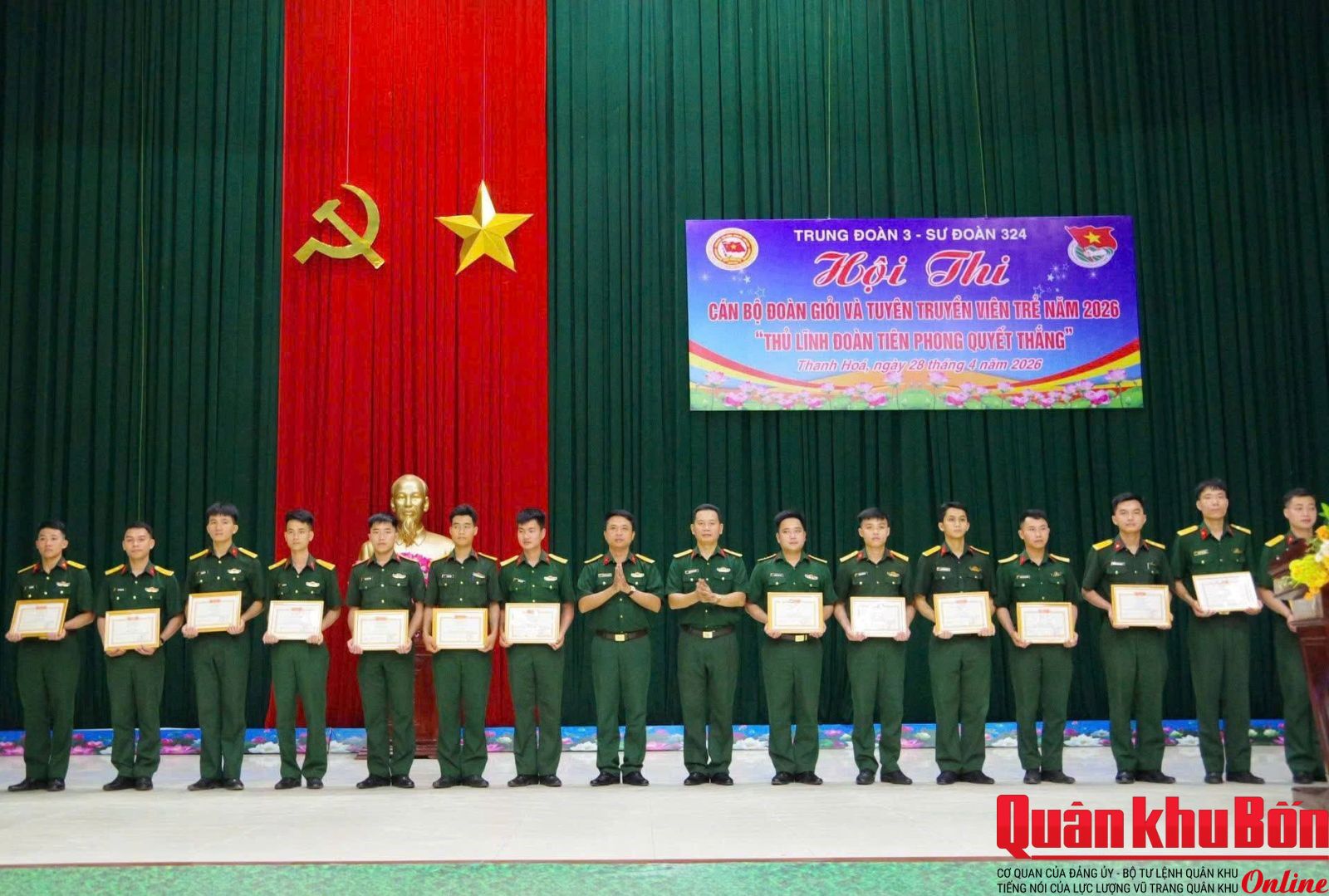 Trong hai ngày 27 và 28/4/2026, Trung đoàn 3, Sư đoàn 324 đã tổ chức thành công Hội thi cán bộ Đoàn giỏi và Tuyên truyền viên trẻ năm 2026 với chủ đề: “Thủ lĩnh Đoàn tiên phong quyết thắng”. Thượng tá Ngô Trí Xuân, Bí thư Đảng ủy, Chính ủy Trung đoàn; Trung tá Trần Nam Long, Phó Bí thư Đảng ủy, Trung đoàn trưởng dự, chỉ đạo Hội thi. Tham gia Hội thi gồm 36 cán bộ làm công tác Đoàn đến từ các cơ quan, đơn vị trong toàn Trung đoàn.