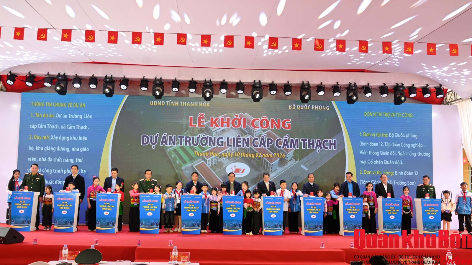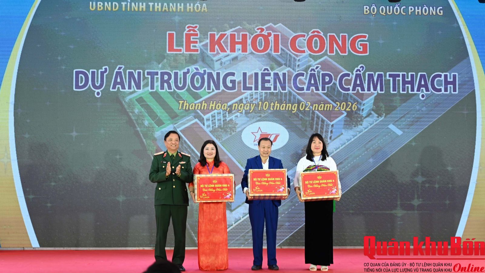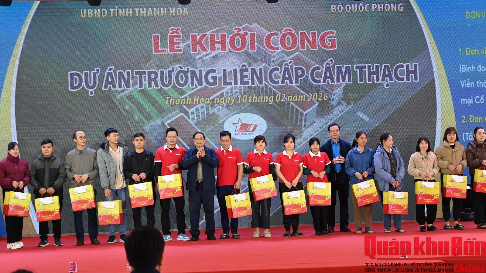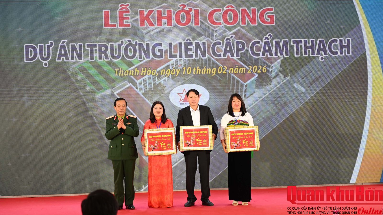 Sau nghi thức bấm nút khởi công Dự án, Thủ tướng Phạm Minh Chính, Phó Chủ tịch Quốc hội Nguyễn Đức Hải, lãnh đạo các ban, bộ, ngành Trung ương, Quân khu 4 và tỉnh Thanh Hoá đã thực hiện nghi thức khởi công dự án Trường liên cấp Cẩm Thạch; tặng nhiều suất quà cho cán bộ, giáo viên, học sinh trường Tiểu học Cẩm Thạch, gia đình chính sách, hộ nghèo và công nhân, lao động trên địa bàn xã Cẩm Thạch và tỉnh Thanh Hoá. Tại buổi Lễ, Trung tướng Hà Thọ Bình, Tư lệnh Quân khu đã trao 3 suất quà của Quân khu tặng xã Cẩm Thạch, Cẩm Thủy và Trường Tiểu học xã Cẩm Thạch.