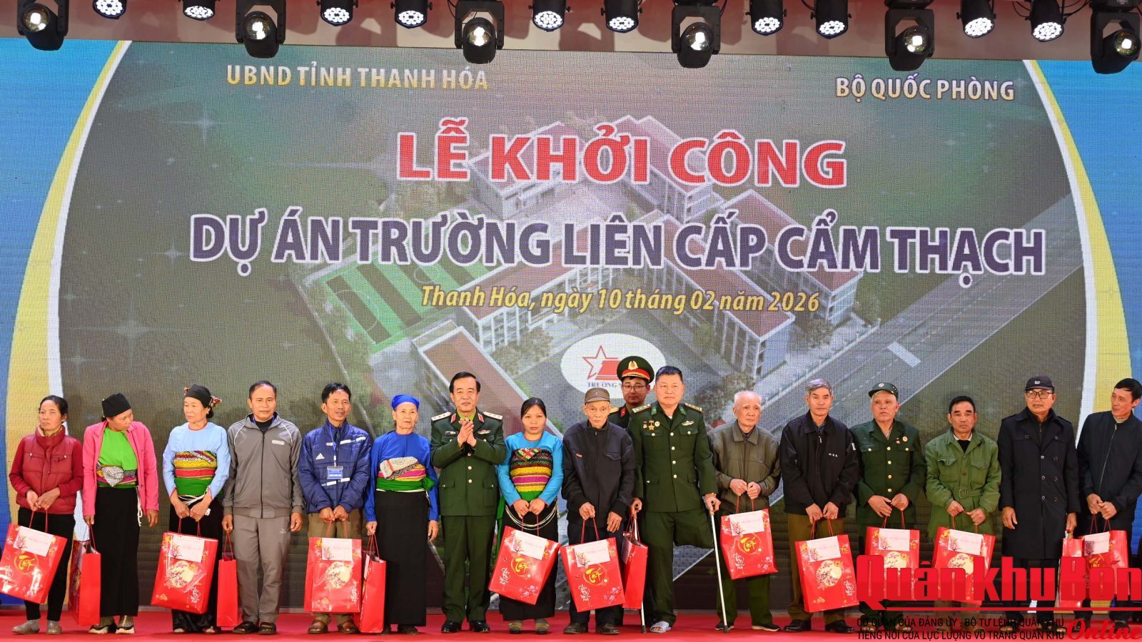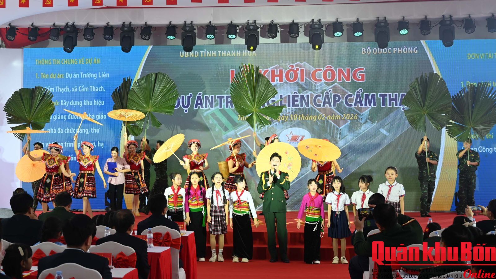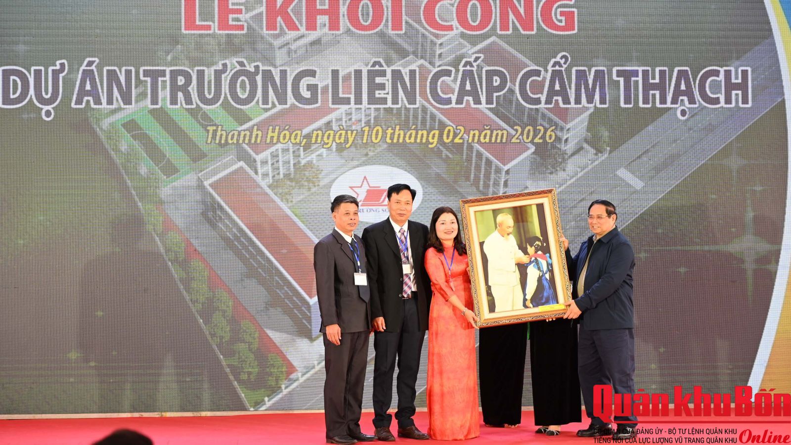 Sau nghi thức bấm nút khởi công Dự án, Thủ tướng Phạm Minh Chính, Phó Chủ tịch Quốc hội Nguyễn Đức Hải, lãnh đạo các ban, bộ, ngành Trung ương, Quân khu 4 và tỉnh Thanh Hoá đã thực hiện nghi thức khởi công dự án Trường liên cấp Cẩm Thạch; tặng nhiều suất quà cho cán bộ, giáo viên, học sinh trường Tiểu học Cẩm Thạch, gia đình chính sách, hộ nghèo và công nhân, lao động trên địa bàn xã Cẩm Thạch và tỉnh Thanh Hoá. Tại buổi Lễ, Trung tướng Hà Thọ Bình, Tư lệnh Quân khu đã trao 3 suất quà của Quân khu tặng xã Cẩm Thạch, Cẩm Thủy và Trường Tiểu học xã Cẩm Thạch.