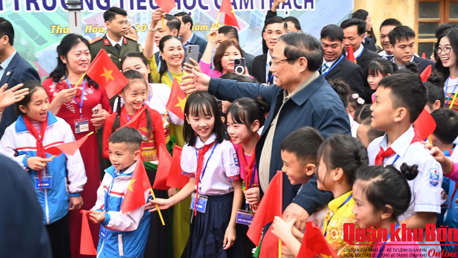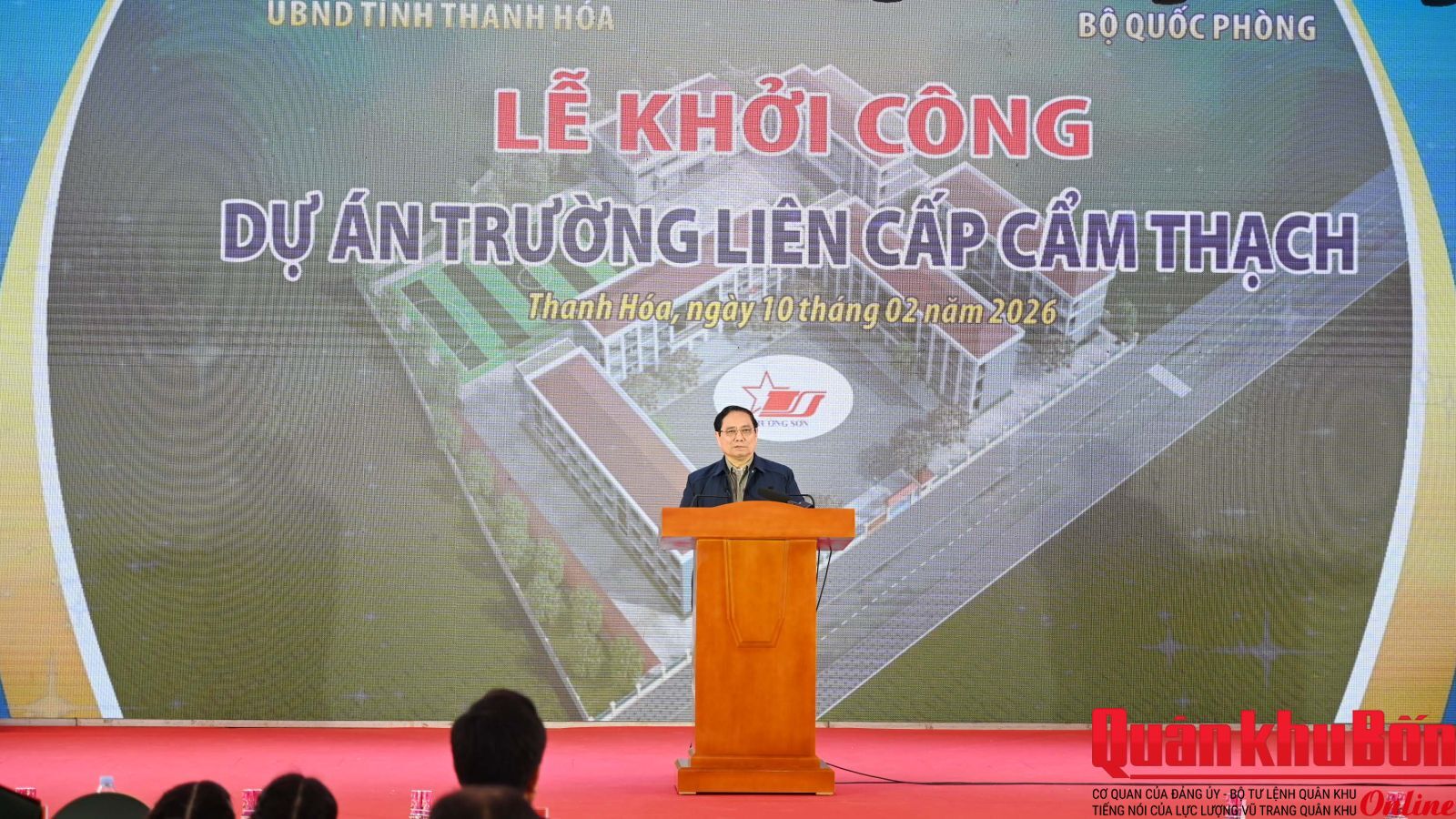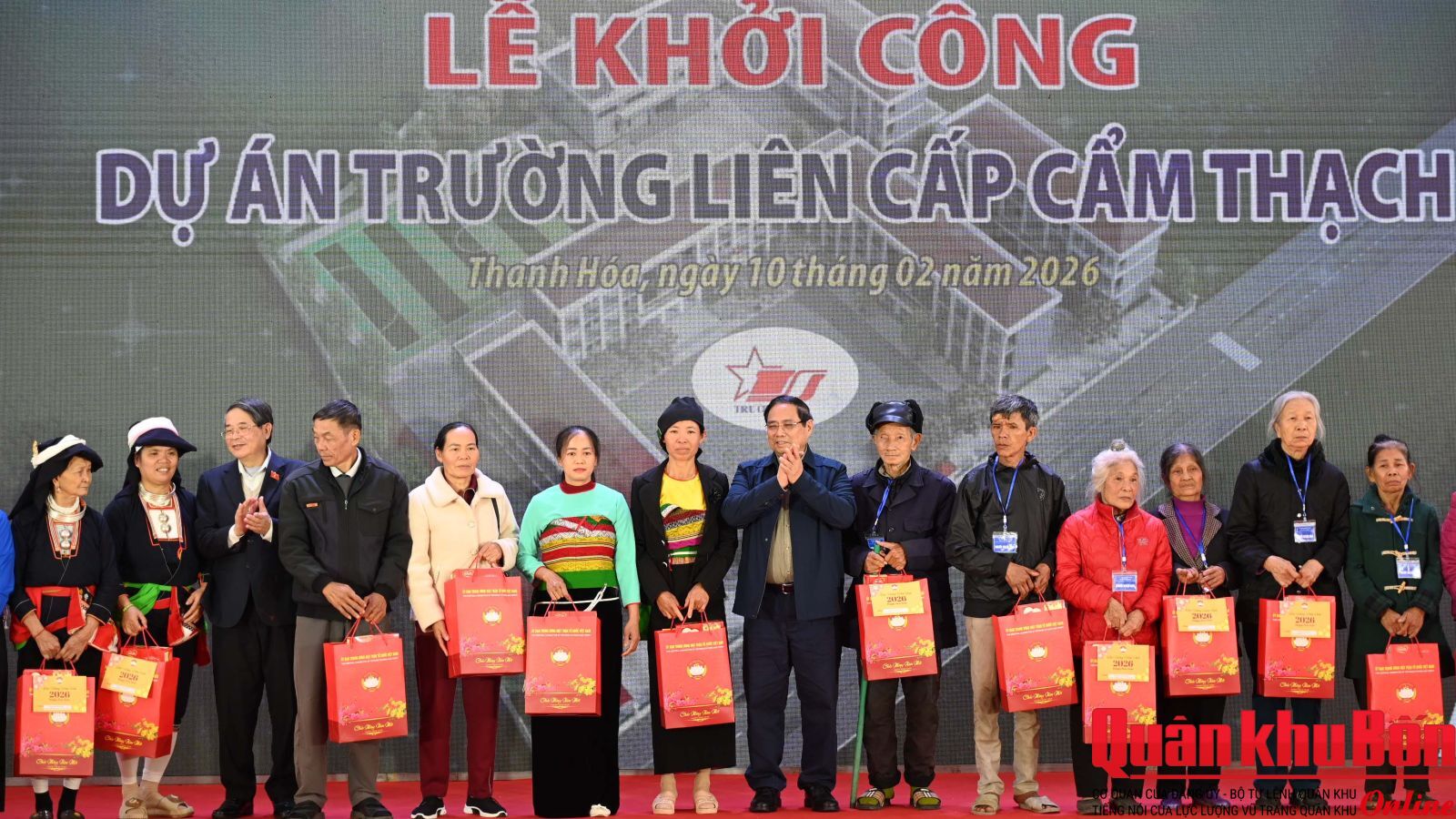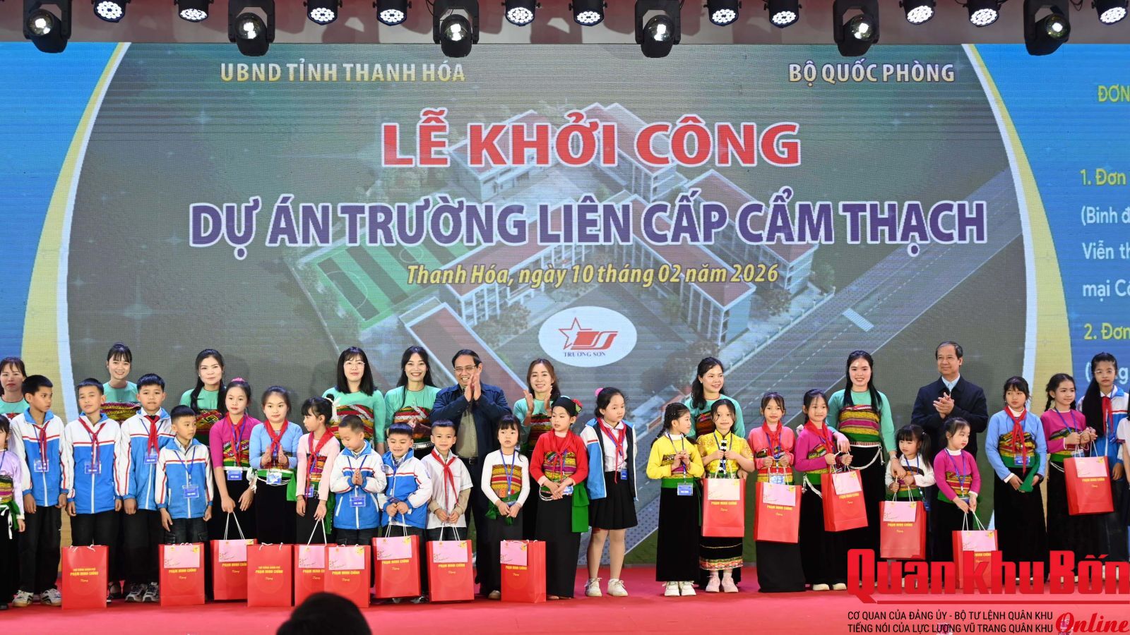Sau nghi thức bấm nút khởi công Dự án, Thủ tướng Phạm Minh Chính, Phó Chủ tịch Quốc hội Nguyễn Đức Hải, lãnh đạo các ban, bộ, ngành Trung ương, Quân khu 4 và tỉnh Thanh Hoá đã thực hiện nghi thức khởi công dự án Trường liên cấp Cẩm Thạch; tặng nhiều suất quà cho cán bộ, giáo viên, học sinh trường Tiểu học Cẩm Thạch, gia đình chính sách, hộ nghèo và công nhân, lao động trên địa bàn xã Cẩm Thạch và tỉnh Thanh Hoá. Tại buổi Lễ, Trung tướng Hà Thọ Bình, Tư lệnh Quân khu đã trao 3 suất quà của Quân khu tặng xã Cẩm Thạch, Cẩm Thủy và Trường Tiểu học xã Cẩm Thạch.