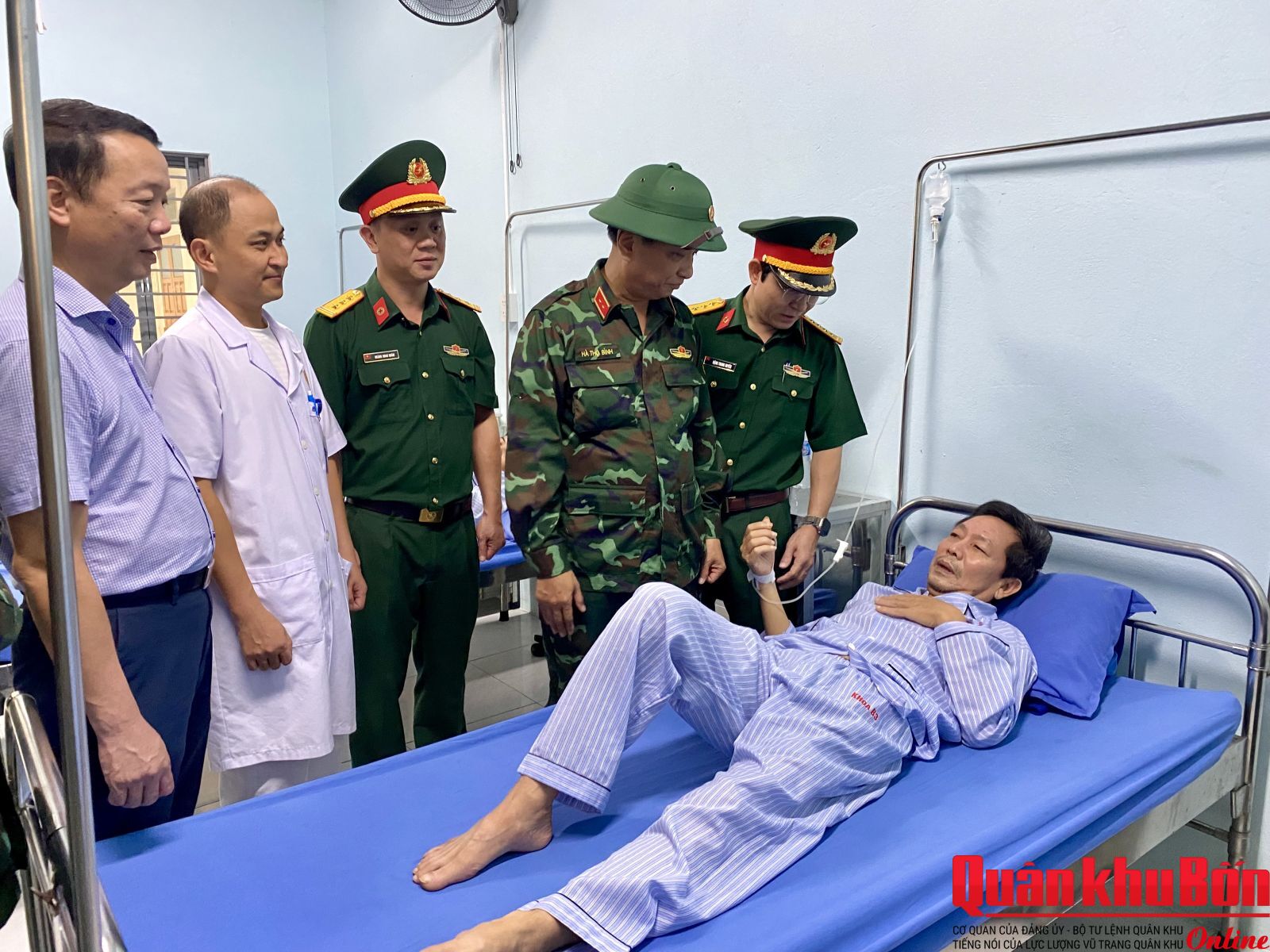 Tiếp đó, đoàn công tác đã đến Bệnh viện Quân y 268, nơi đang tiếp nhận, điều trị cho nhiều bệnh nhân bị thương, ốm đau trong và sau đợt mưa lũ. Tại đây, Trung tướng Hà Thọ Bình thăm hỏi, trao quà cho các bệnh nhân và thân nhân, động viên họ yên tâm điều trị, sớm phục hồi sức khỏe.