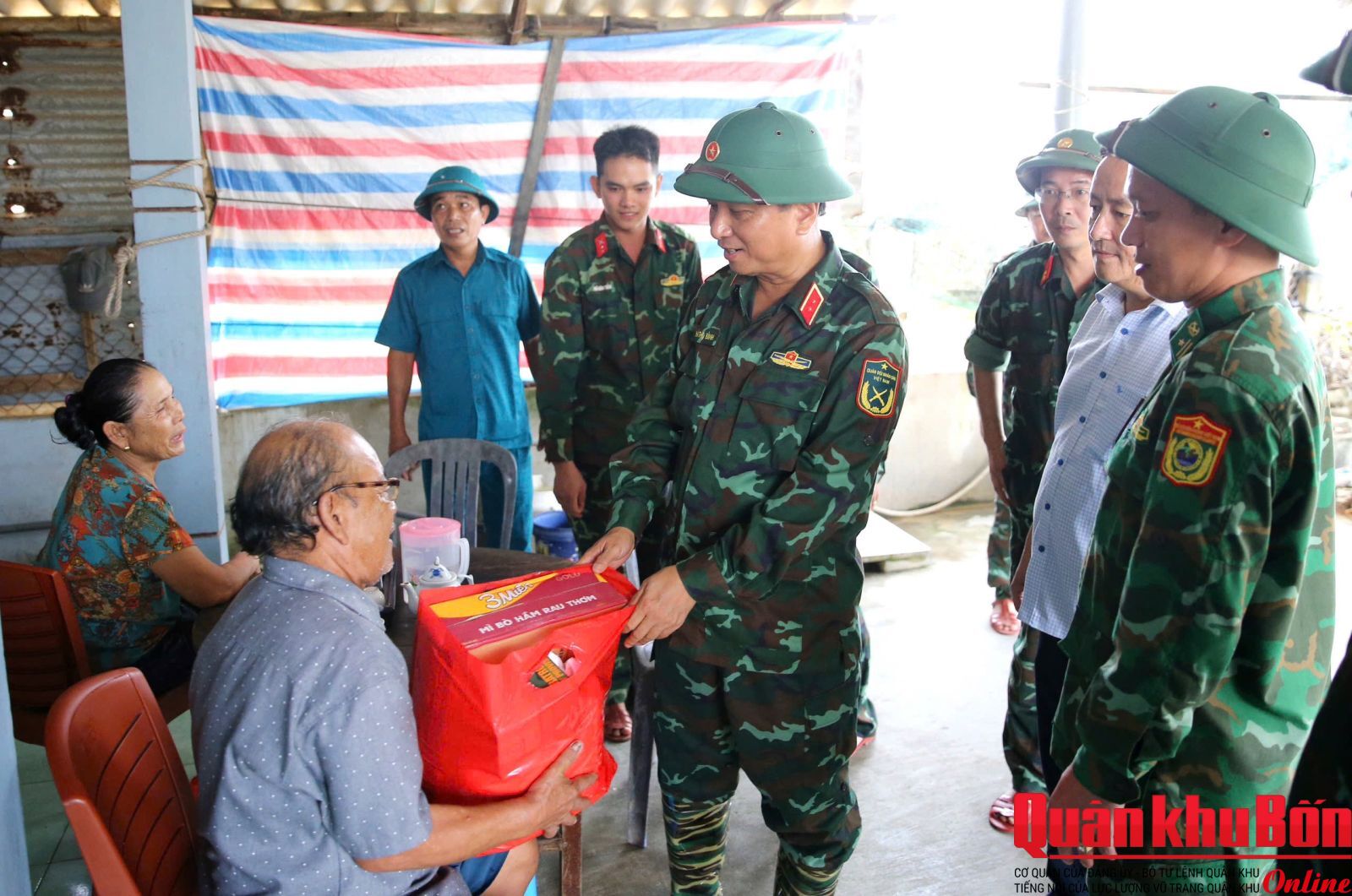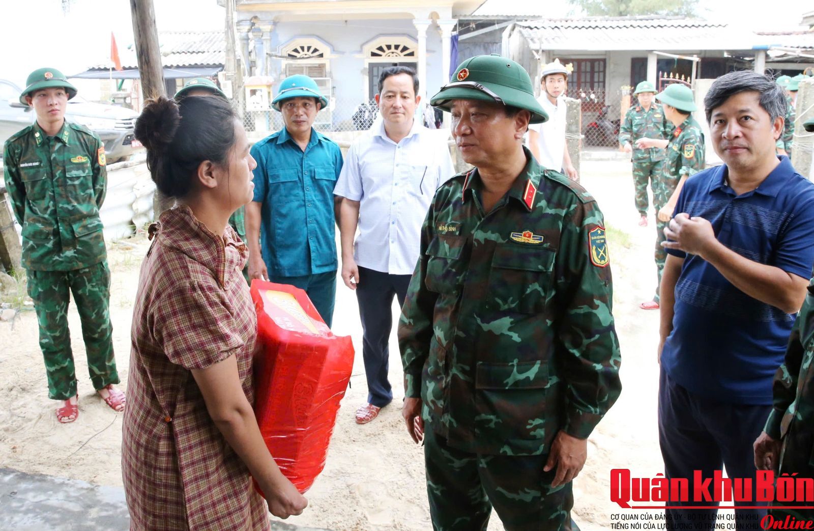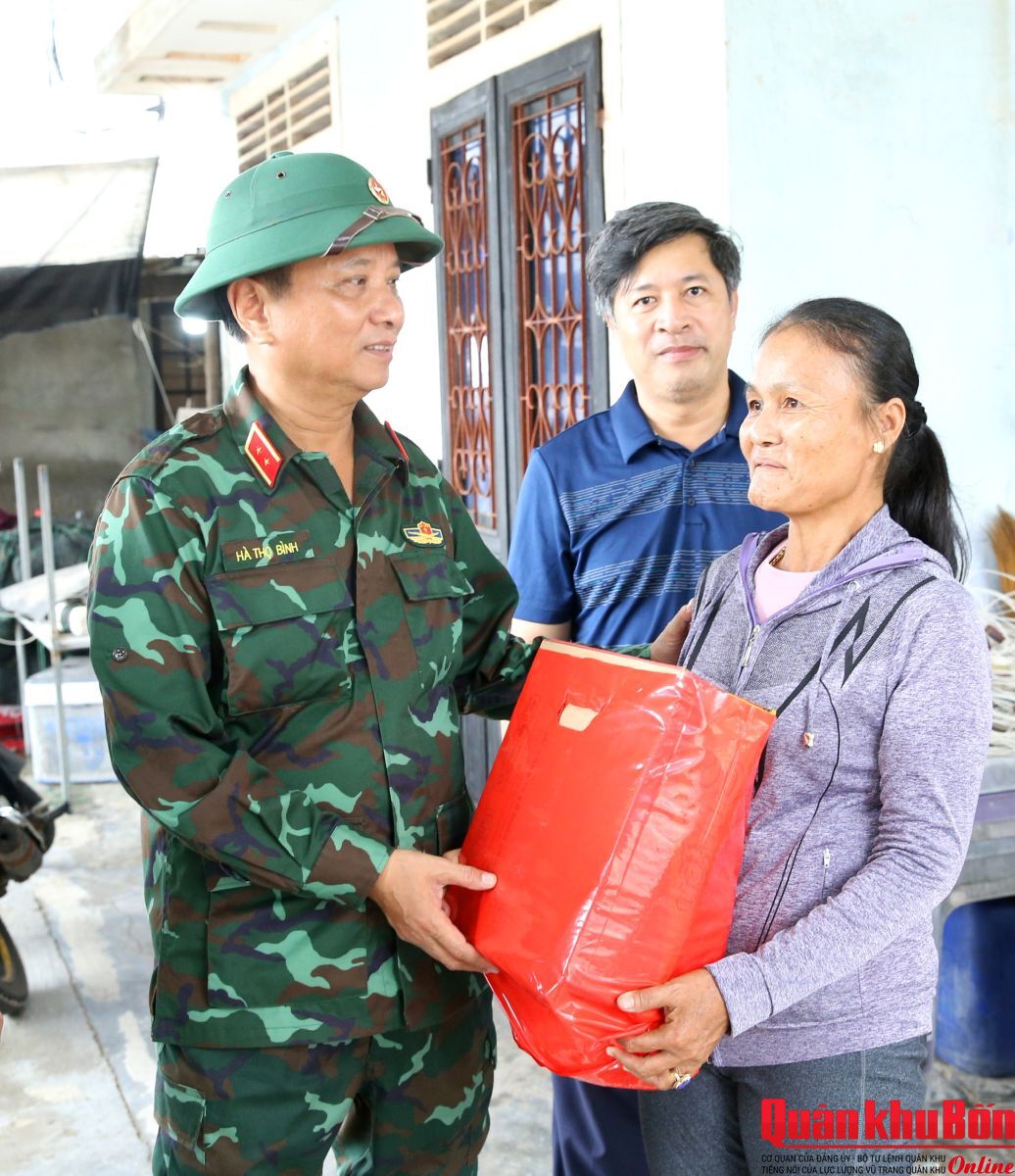 Đoàn đã đến thăm, tặng quà cho các hộ dân tại phường Thuận An, thành phố Huế. Tại các gia đình, Trung tướng Hà Thọ Bình, Tư lệnh Quân khu ân cần thăm hỏi đời sống, chia sẻ khó khăn với bà con, gửi tặng các phần quà hỗ trợ, bày tỏ sự cảm thông sâu sắc trước những mất mát mà người dân đang gánh chịu. Động viên bà con nêu cao tinh thần đoàn kết, vượt qua khó khăn, sớm ổn định cuộc sống; đồng thời khẳng định lực lượng vũ trang Quân khu 4 luôn sát cánh cùng chính quyền và nhân dân địa phương trong mọi tình huống, sẵn sàng hỗ trợ khi cần thiết.