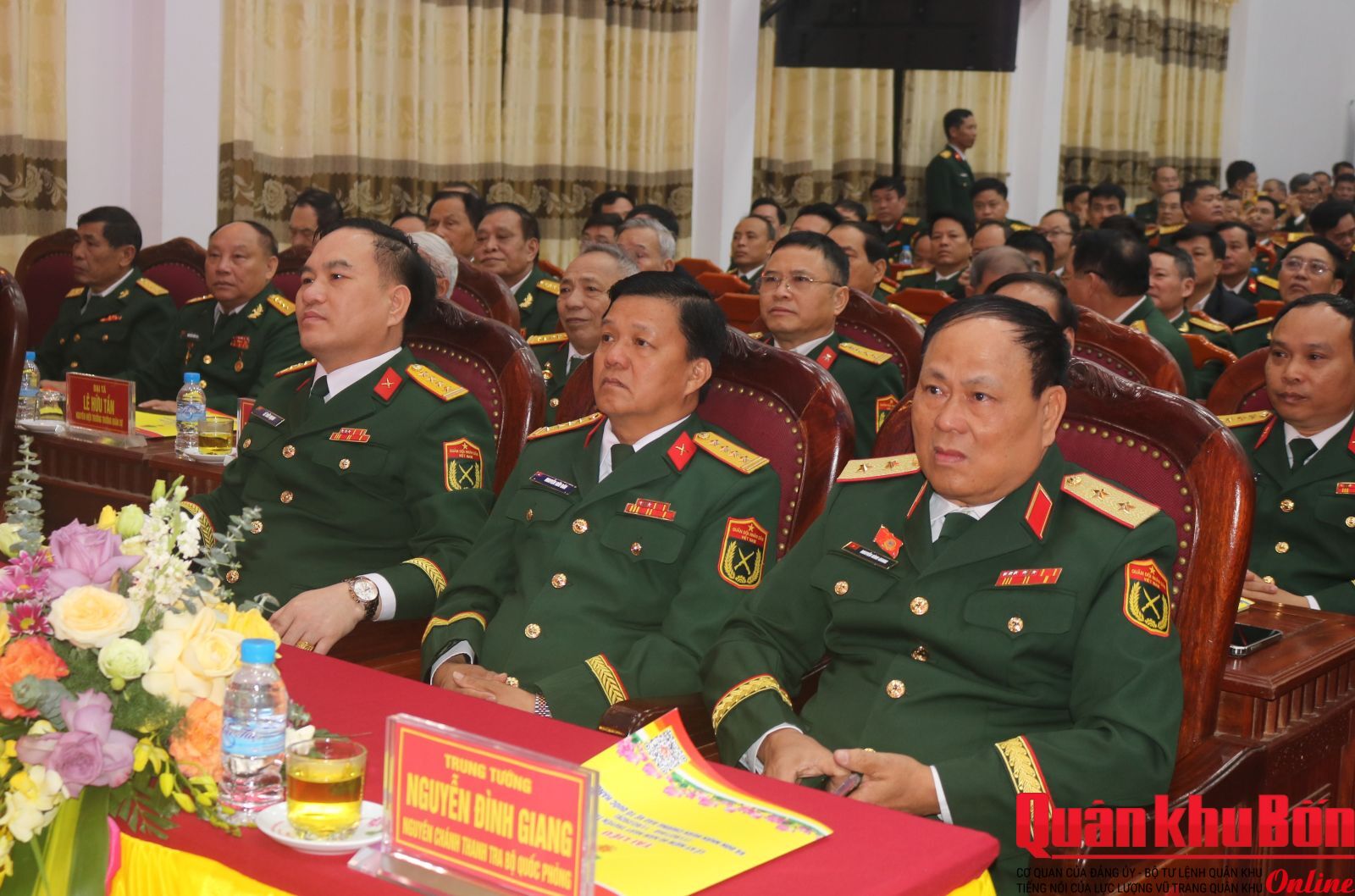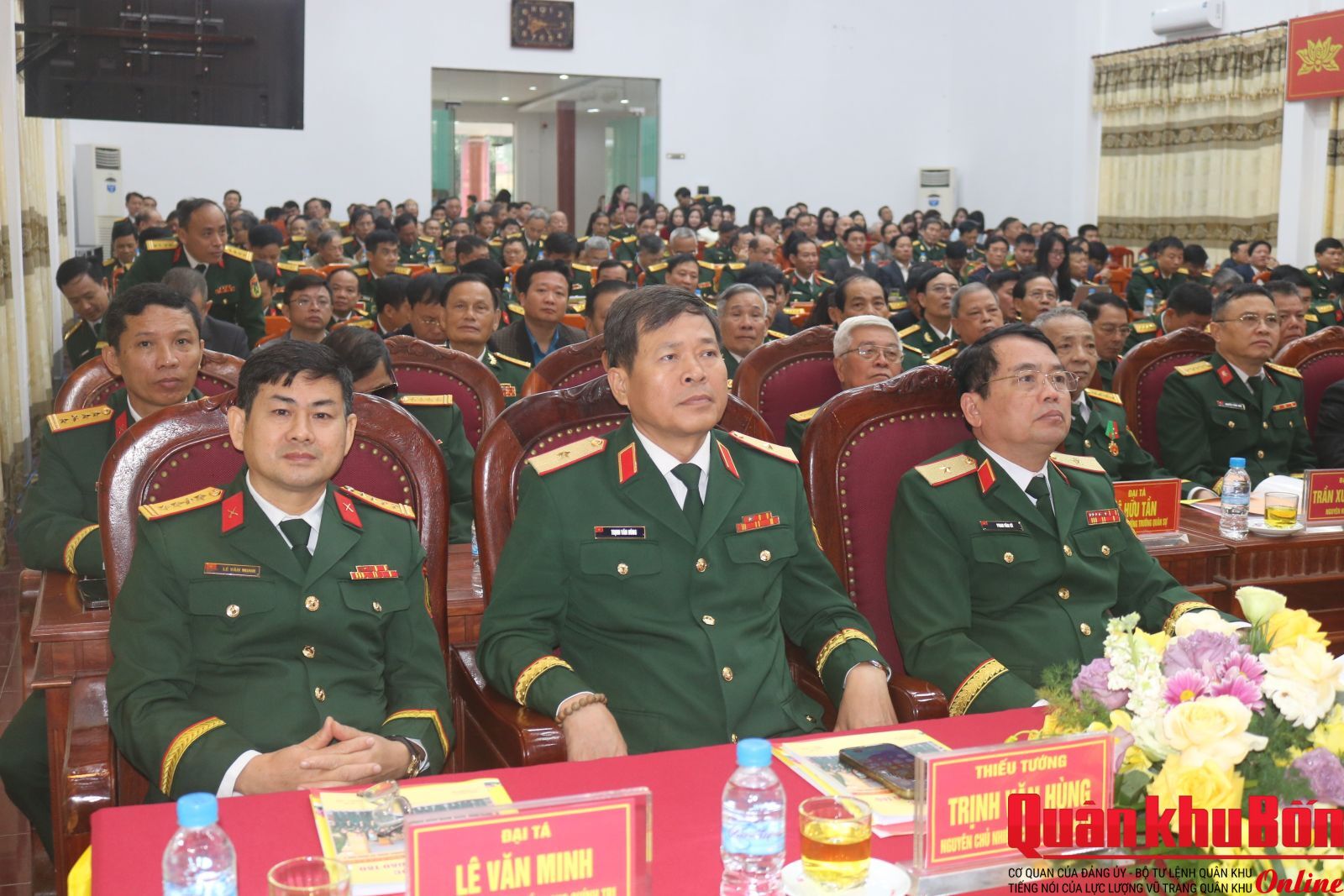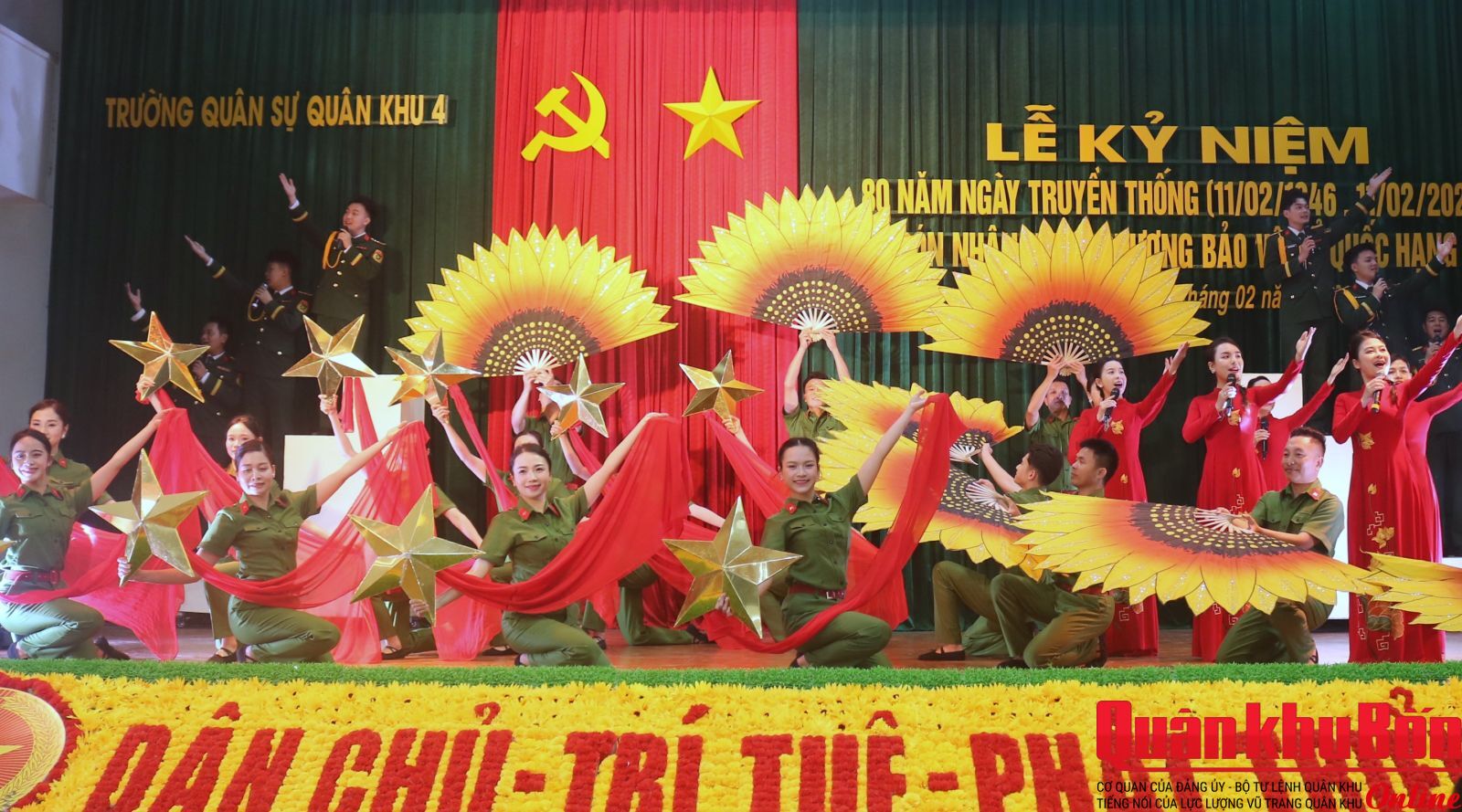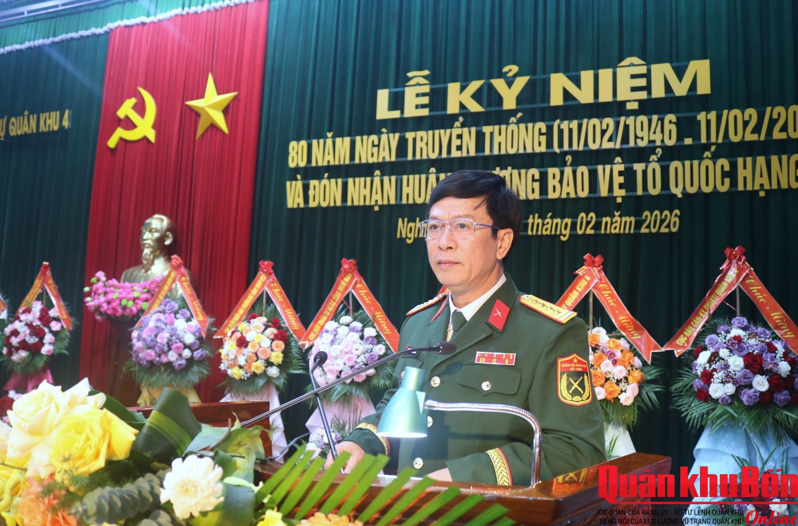 Phát biểu tại buổi lễ, Thiếu tướng Đoàn Xuân Bường, Ủy viên Trung ương Đảng, Bí thư Đảng ủy, Chính ủy Quân khu 4 biểu dương, chúc mừng những chiến công, thành tích mà Trường Quân sự Quân khu 4 đạt được trong suốt 80 năm qua. Đồng chí Chính ủy Quân khu 4 yêu cầu Nhà trường tiếp tục quán triệt sâu sắc Nghị quyết Đại hội Đảng các cấp và Nghị quyết về quân sự, quốc phòng, bảo vệ Tổ quốc trong tình hình mới trọng tâm là Nghị quyết 71 của Bộ Chính trị về đột phá phát triển giáo dục, đào tạo đồng thời đẩy mạnh phương châm “Chất lượng đào tạo của nhà trường là khả năng sẵn sàng chiến đấu của đơn vị”; đổi mới toàn diện đồng bộ quy trình nội dung đào tạo, hình thức phương pháp dạy học hiện đại, chuyển đổi số, phù hợp với yêu cầu thực tiễn…Đồng chí Chính ủy Quân khu tin tưởng rằng, với bề dày truyền thống, tinh thần đổi mới, sáng tạo, quyết tâm cao, Trường Quân sự Quân khu 4 sẽ tiếp tục hoàn thành sứ mệnh giáo dục, đào tạo cán bộ, góp phần xây dựng LLVT Quân khu 4 ngày càng vững mạnh, đáp ứng yêu cầu bảo vệ vững chắc Tổ quốc trong tình hình mới.