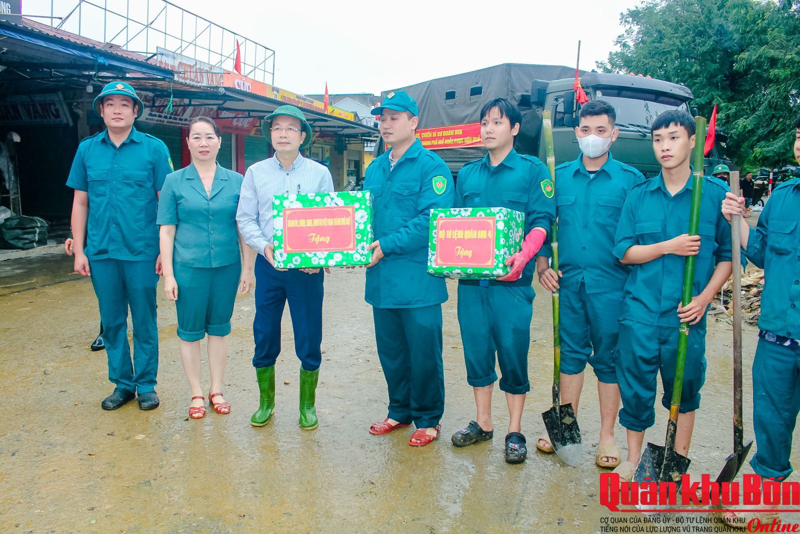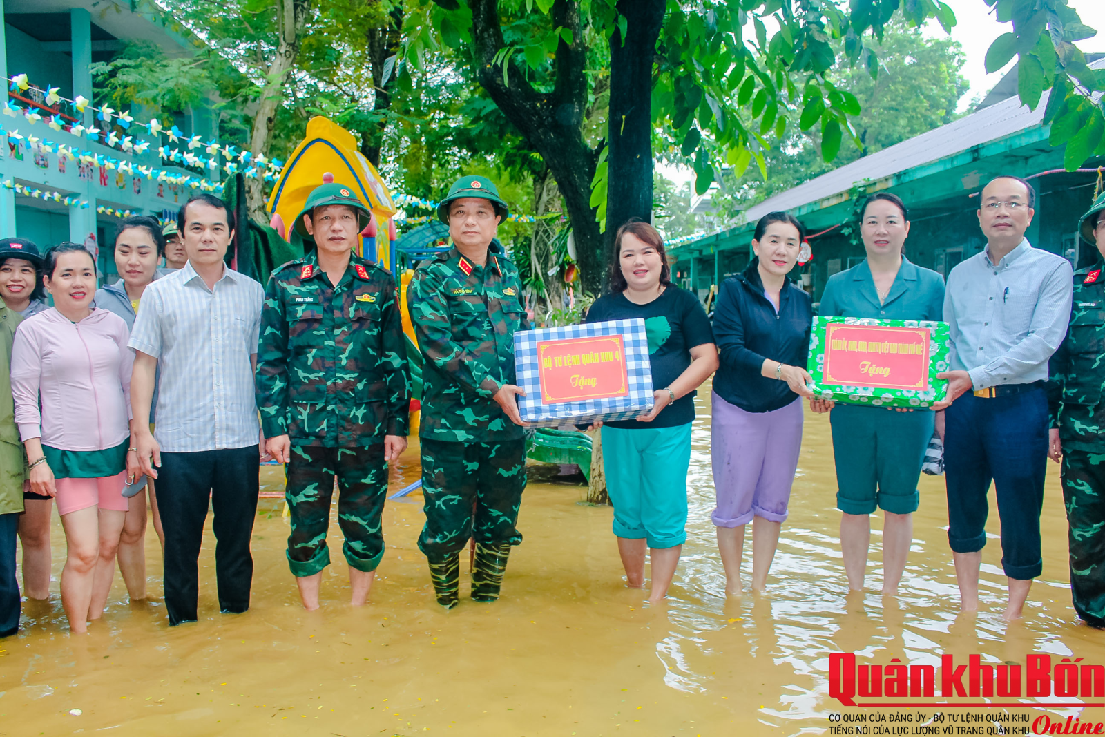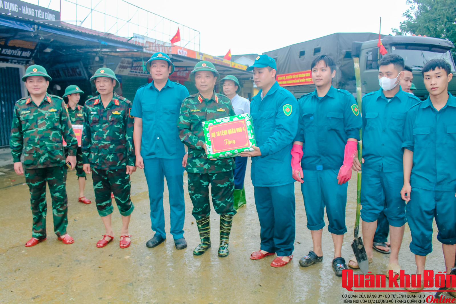Dịp này, Trung tướng Hà Thọ Bình, Tư lệnh Quân khu đã trao tặng các phần quà động viên cán bộ, chiến sĩ trực tiếp làm nhiệm vụ giúp dân khắc phục hậu quả mưa lũ, đồng thời gửi lời thăm hỏi, chia sẻ tới các giáo viên, y bác sĩ, tiểu thương chịu thiệt hại do thiên tai, mong muốn các tập thể sớm ổn định hoạt động, tiếp tục đồng hành cùng địa phương vượt qua khó khăn.