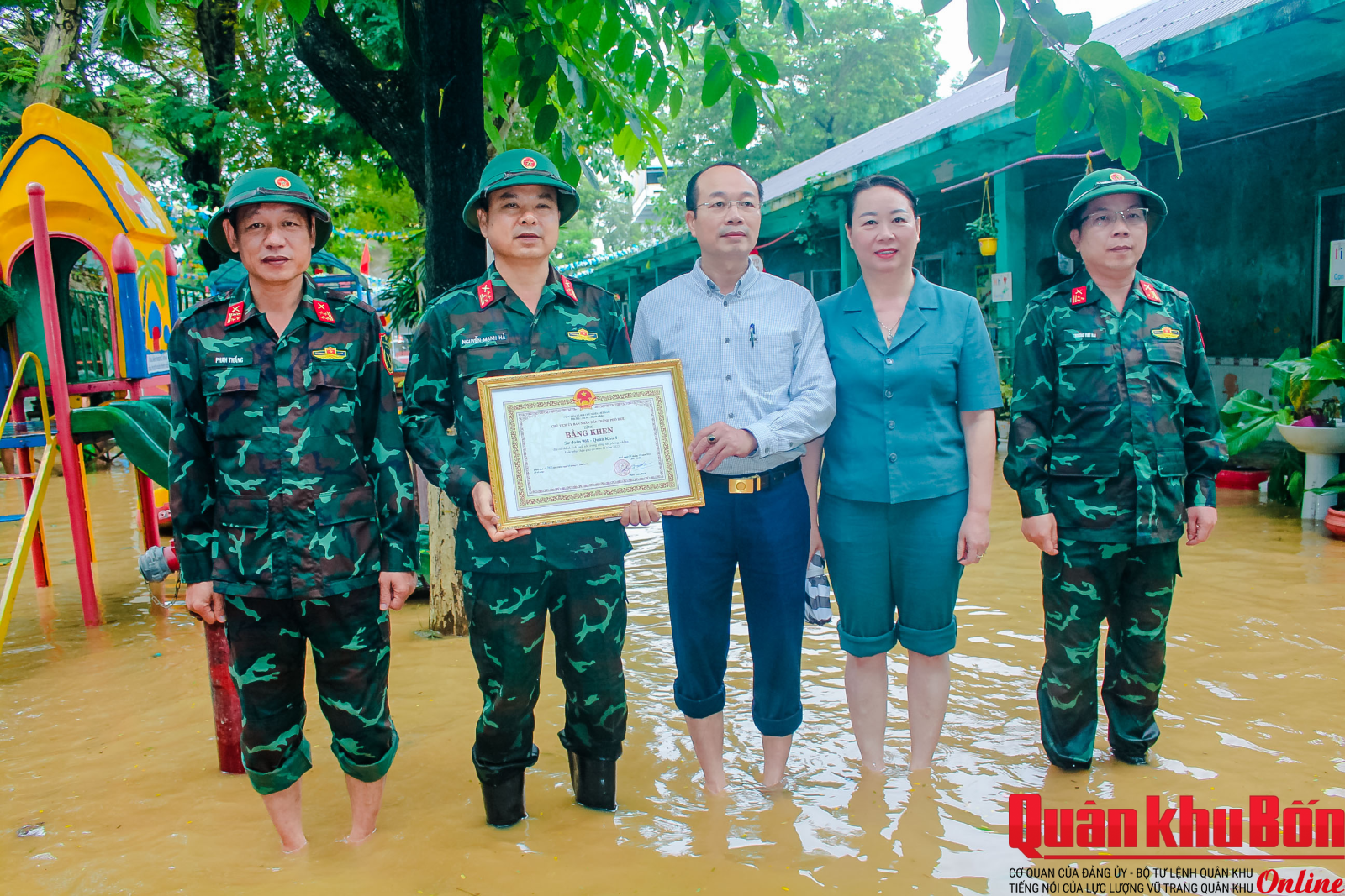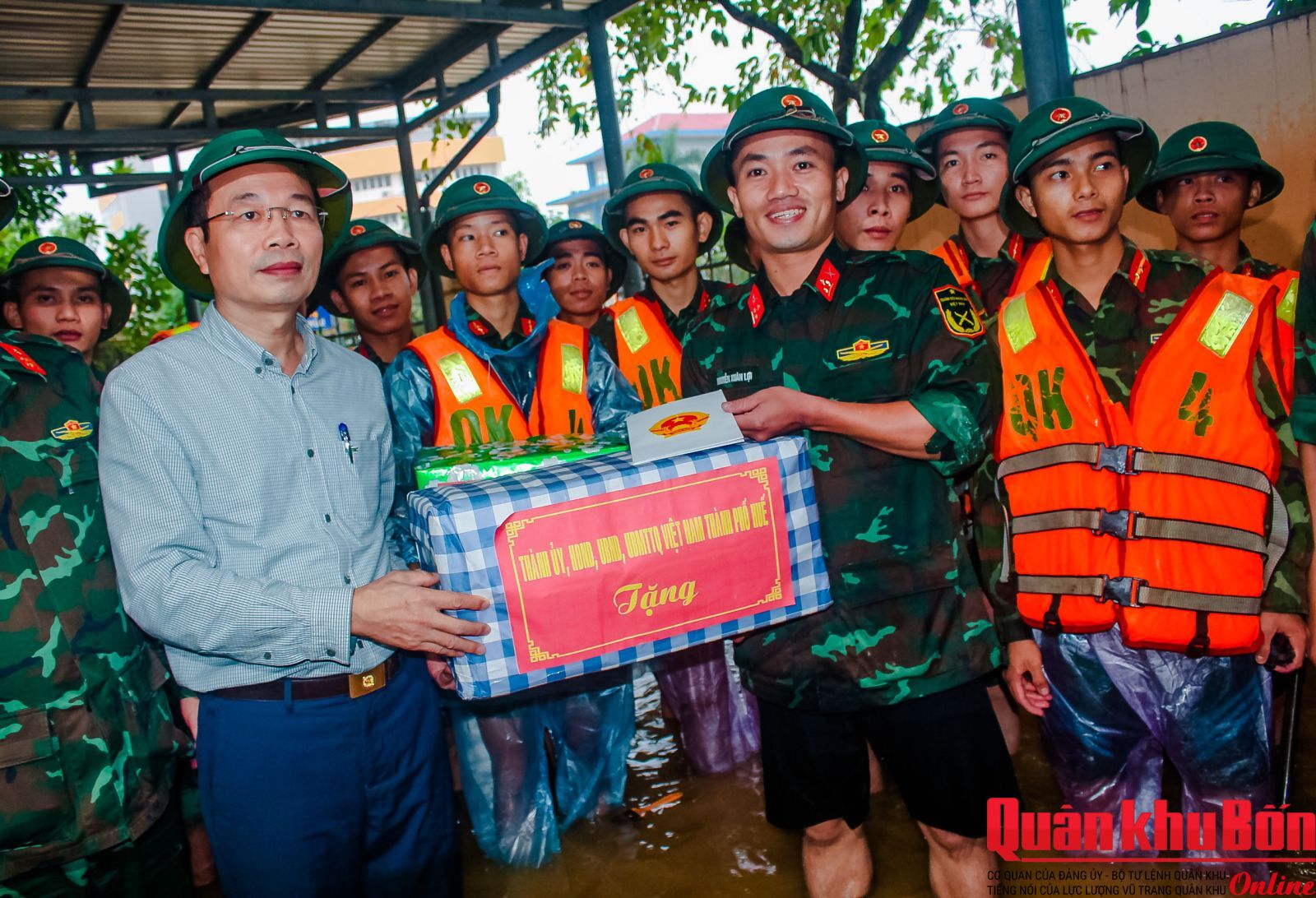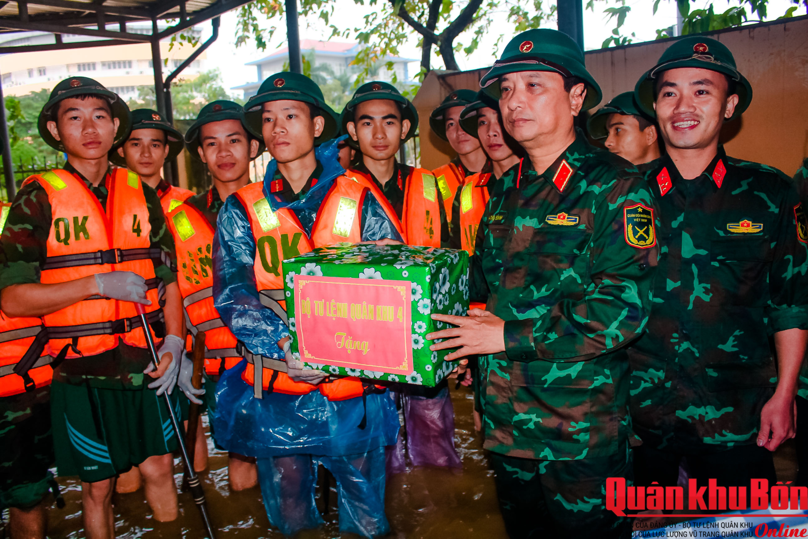 Dịp này, Trung tướng Hà Thọ Bình, Tư lệnh Quân khu đã trao tặng các phần quà động viên cán bộ, chiến sĩ trực tiếp làm nhiệm vụ giúp dân khắc phục hậu quả mưa lũ, đồng thời gửi lời thăm hỏi, chia sẻ tới các giáo viên, y bác sĩ, tiểu thương chịu thiệt hại do thiên tai, mong muốn các tập thể sớm ổn định hoạt động, tiếp tục đồng hành cùng địa phương vượt qua khó khăn.