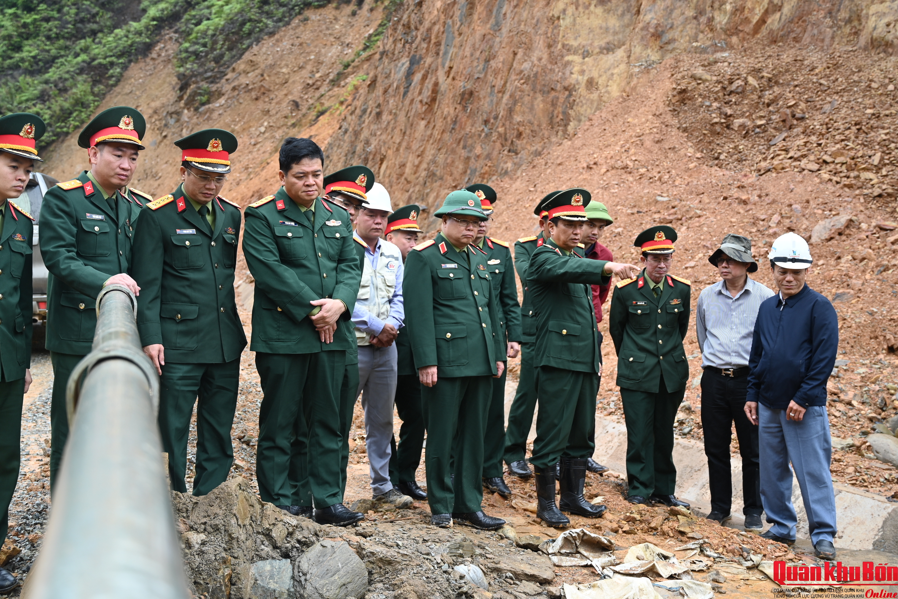 Đối với các đơn vị thi công và tư vấn giám sát, đồng chí Tư lệnh Quân khu yêu cầu phải chủ động đảm bảo đầy đủ nhiên liệu, vật liệu; bám, nắm chắc đặc điểm thời tiết, các vị trí có nguy co sạt trượt cao, tranh thủ những ngày nắng ráo, huy động tổng lực nhân lực, phương tiện, tăng ca, tăng kíp, tranh thủ thi công để xử lý dứt điểm các vị trí sạt lở do mưa lũ và bão số 12 gây ra; bảo đảm thi công đúng kỹ thuật, chất lượng, làm đến đâu, đảm bảo kiểm tra, đánh giá chất lượng đến đó. Đồng thời. đặc biệt chú trọng bảo đảm tuyệt đối an toàn lao động, an toàn giao thông, phấn đấu hoàn thành, nghiệm thu và bàn giao công trình chậm nhất vào cuối 30/6/2026.