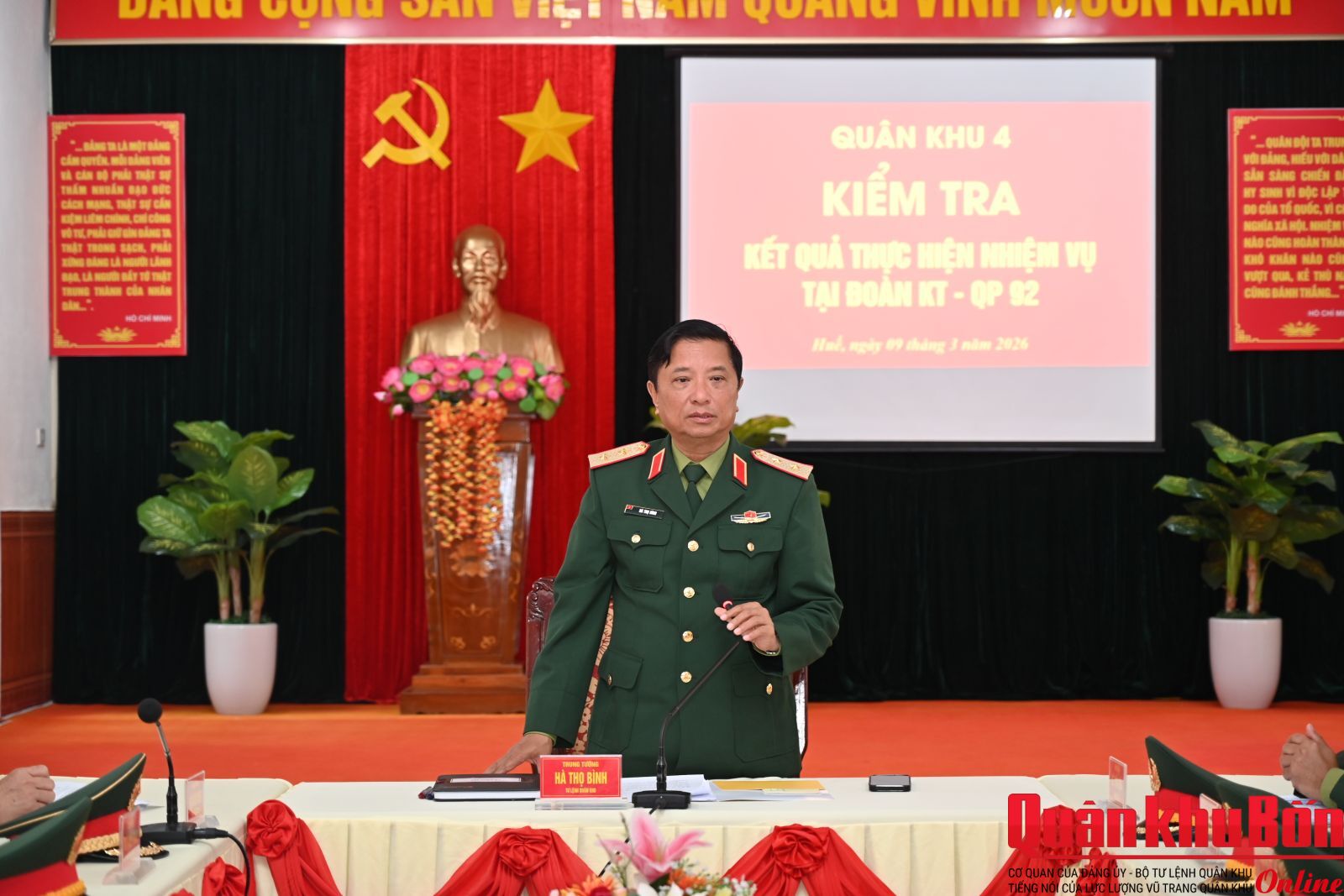 Cùng ngày, Trung tướng Hà Thọ Bình, Tư lệnh Quân khu cùng đoàn công tác Quân khu đã đến thăm, kiểm tra nhiệm vụ quân sự, quốc phòng; công tác chuẩn bị bầu cử Quốc hội khóa XVI và bầu cử Hội đồng nhân dân các cấp, nhiệm kỳ 2026 – 2031; kết quả triển khai dự án xây dựng doanh trại mới của Đoàn Kinh tế - Quốc phòng 92 đang triển khai tại xã Dân Hóa, tỉnh Quảng Trị.