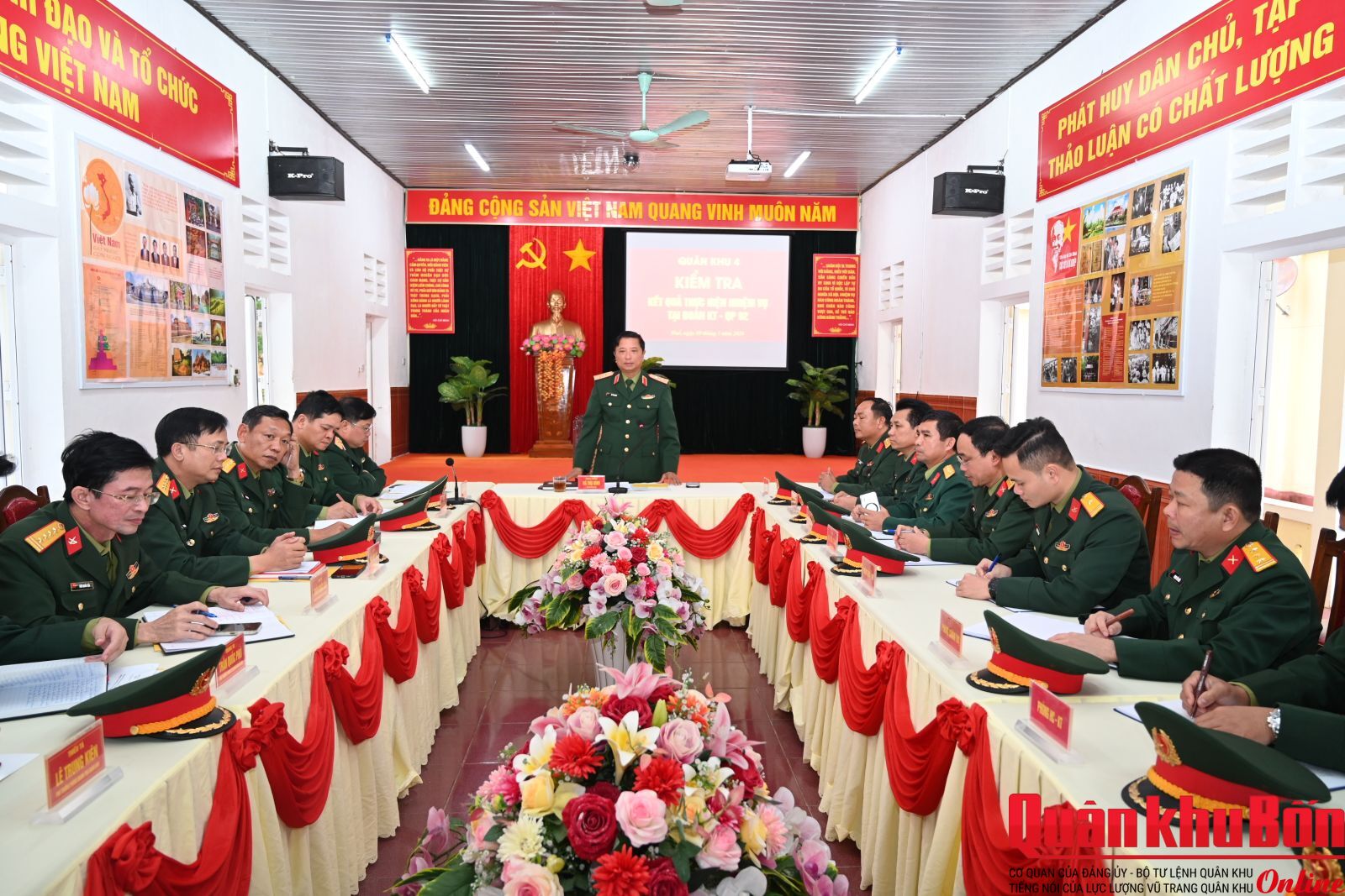 Đồng chí Tư lệnh Quân khu ghi nhận, biểu dương cán bộ, nhân viên Đoàn Kinh tế - Quốc phòng 92 thời gian qua đã luôn đoàn kết, nỗ lực khắc phục khó khăn, hoàn thành tốt các nhiệm vụ. Đồng chí Tư lệnh Quân khu yêu cầu cán bộ, nhân viên của Đoàn tiếp tục phát huy tinh thần đoàn kết, triển khai thực hiện có hiệu quả nhiệm vụ huấn luyện, xây dựng chính quy, quản lý kỷ luật.