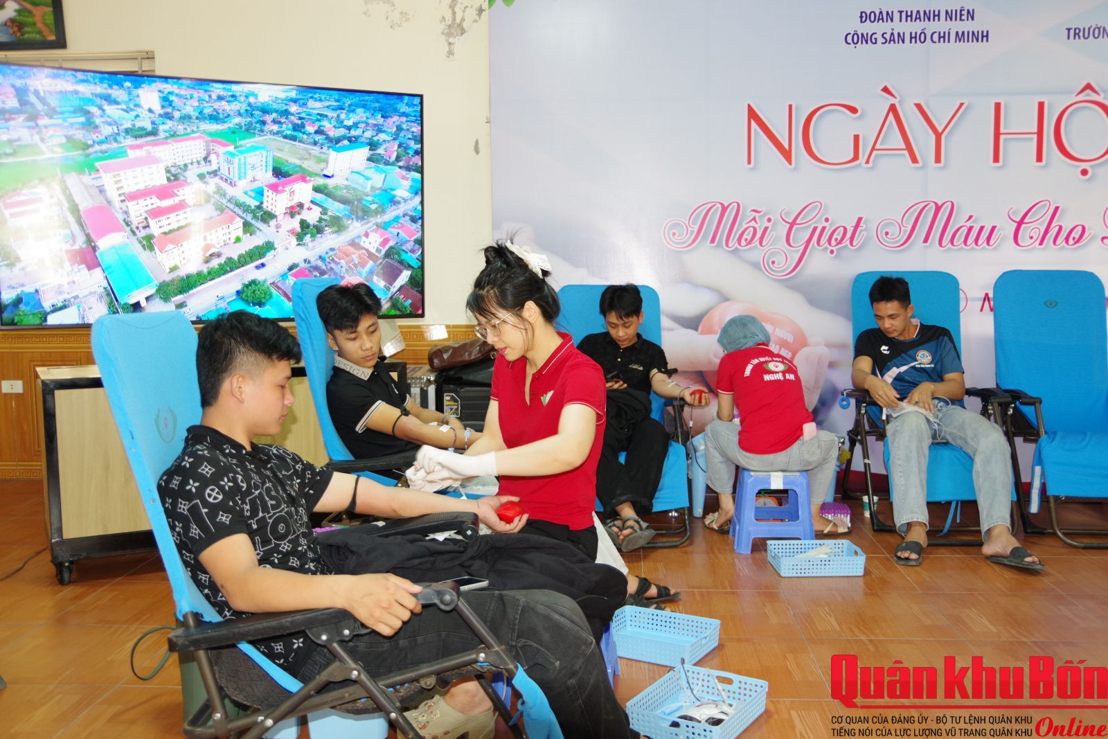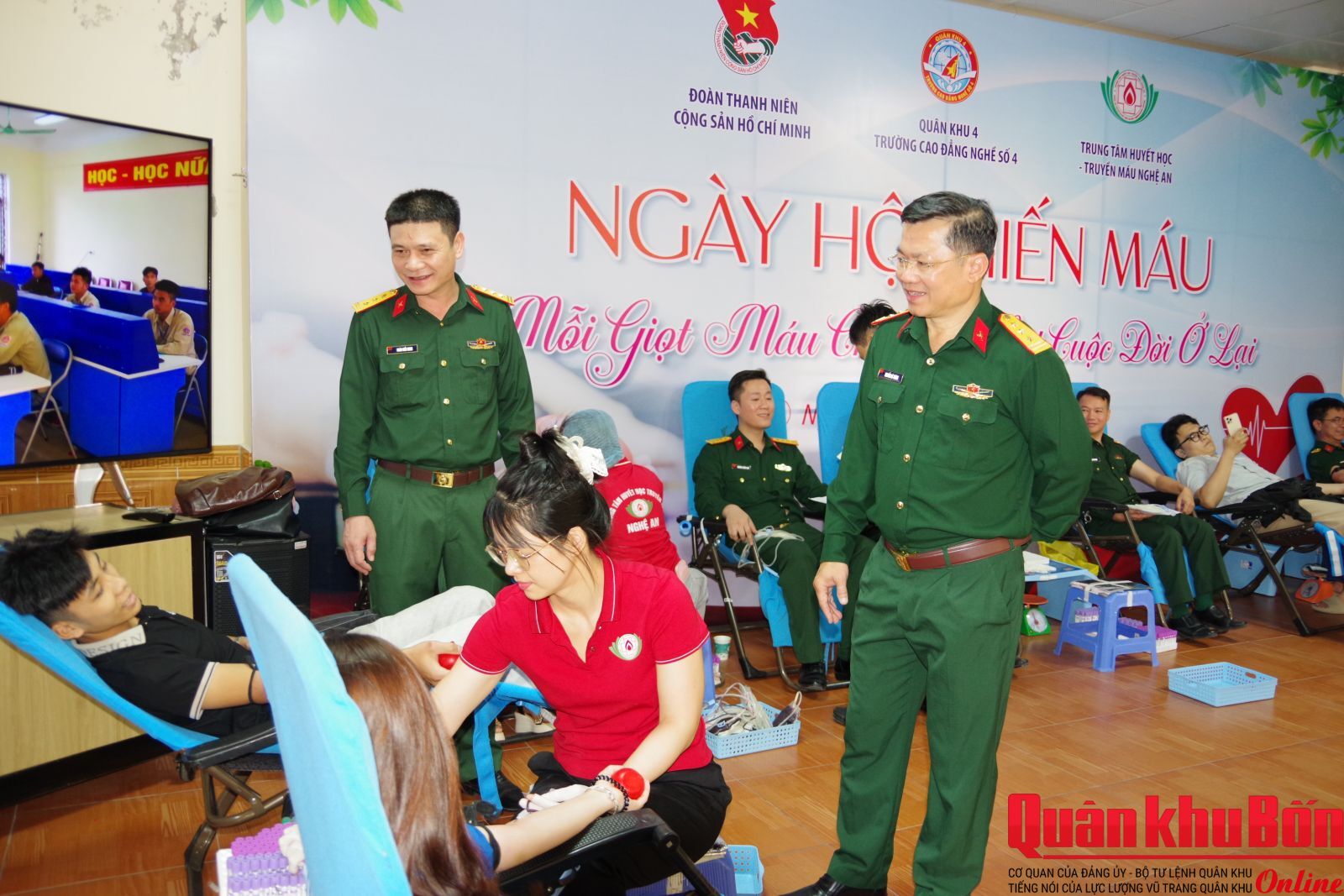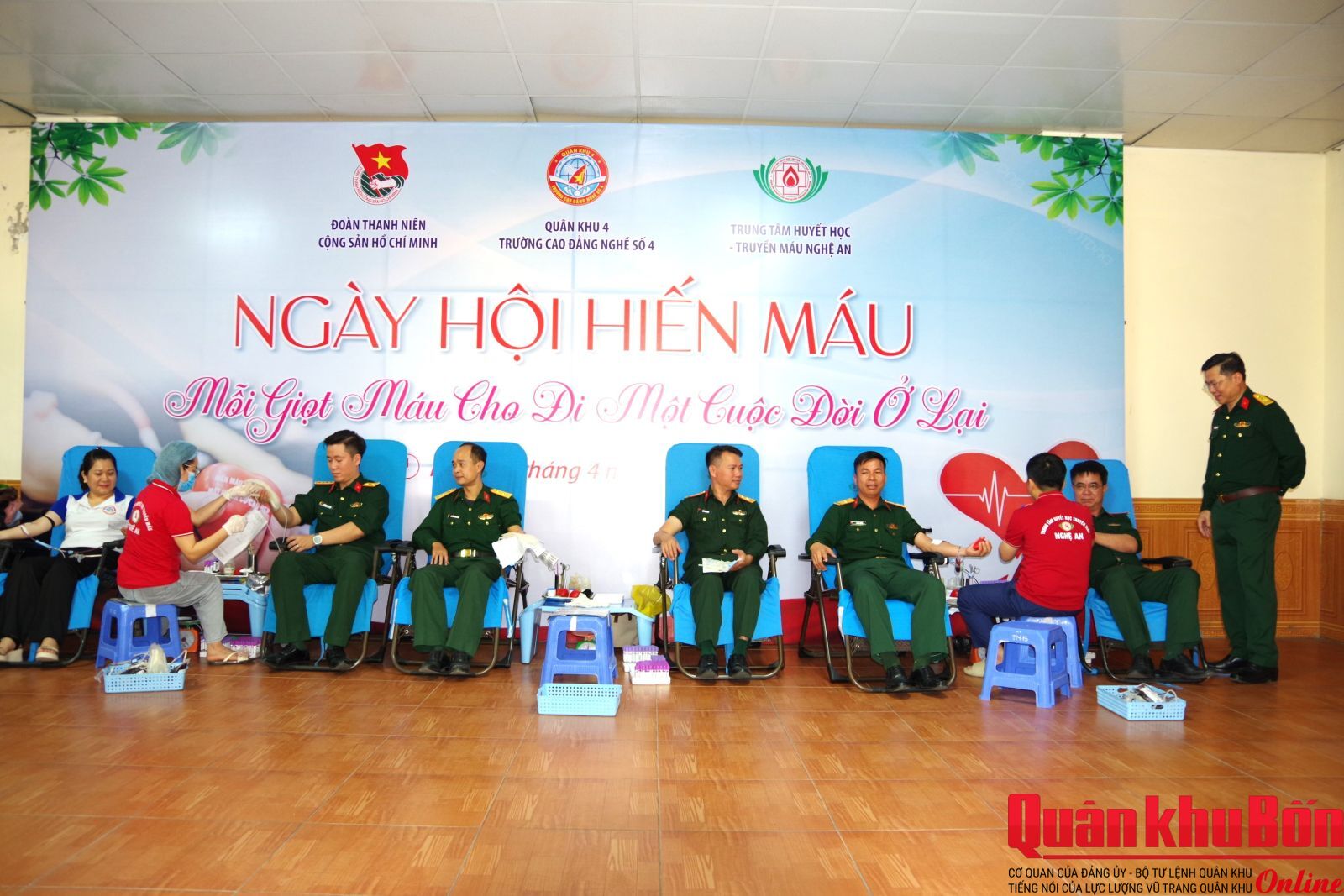 Hưởng ứng phong trào hiến máu tình nguyện vì cộng đồng, Đoàn Thanh niên Cộng sản Hồ Chí Minh Trường Cao đẳng Nghề số 4 (Quân khu 4) đã phối hợp với Trung tâm Huyết học - Truyền máu tỉnh Nghệ An tổ chức Ngày hội hiến máu với chủ đề “Một giọt máu cho đi, một cuộc đời ở lại”.