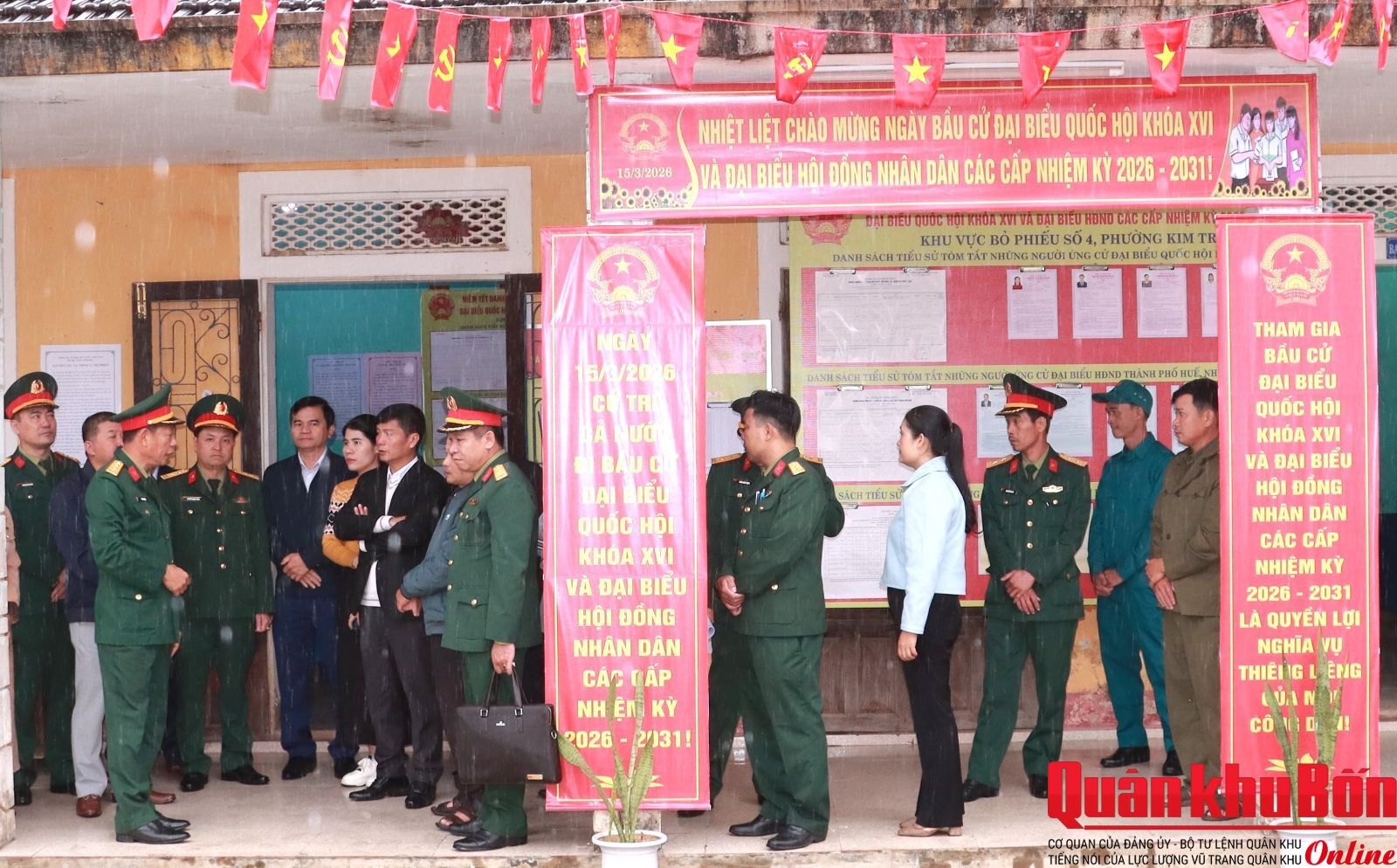 Thực hiện Kế hoạch số 15, ngày 12/01/2026 của Ủy ban Bầu cử thành phố Huế, ngày 12/03/2026, đoàn công tác số 2 Ủy ban bầu cử thành phố Huế do Đại tá Phan Thắng, Ủy viên Ban Thường vụ Thành ủy, Chỉ huy trưởng Bộ Chỉ huy Quân sự (CHQS) thành phố, Ủy viên Ủy ban bầu cử thành phố Huế làm trưởng đoàn đã đến kiểm tra công tác bảo đảm an ninh, trật tự và an toàn xã hội cuộc bầu cử đại biểu Quốc hội khóa XVI và bầu cử đại biểu Hội đồng nhân dân các cấp, nhiệm kỳ 2026 – 2031 tại phường Kim Trà, Hương Trà, Phong Điền, Phú Xuân và Vỹ Dạ.