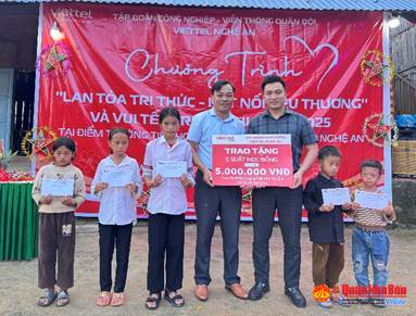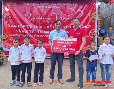 Vượt đường sá xa xôi, đầy khó khăn hiểm trở, đoàn thiện nguyện của Viettel Nghệ An đã đến với trường Tiểu học Tri lễ 4, mang theo nhiều món quà ý nghĩa, có giá trị cả về vật chất lẫn tinh thần. Tại chương trình, Viettel Nghệ An đã trao tặng 30 bộ bàn ghế học sinh trị giá 30 triệu đồng, 150 suất quà gồm đồ dùng học tập và bánh kẹo cho các em học sinh. Viettel Post và Viettel Construction Nghệ An đã dành tặng 10 suất học bổng (trị giá 1 triệu đồng/suất) cho các học sinh vượt khó hiếu học tại trường Tiểu học Tri Lễ 4. Đây là nguồn động viên to lớn, tiếp thêm niềm tin và nghị lực để các em học sinh tiếp tục phấn đấu học tập, rèn luyện.