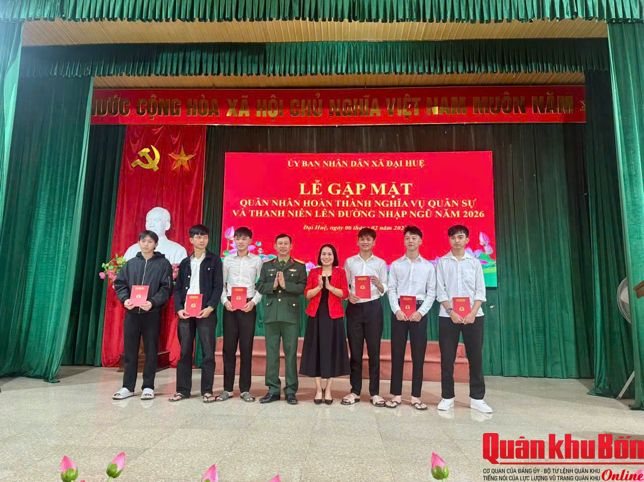 Ngày 06/02/2026, UBND xã Đại Huệ, tỉnh Nghệ An đã tổ chức gặp mặt quân nhân hoàn thành nghĩa vụ quân sự trở về địa phương và động viên thanh niên chuẩn bị lên đường nhập ngũ năm 2026.