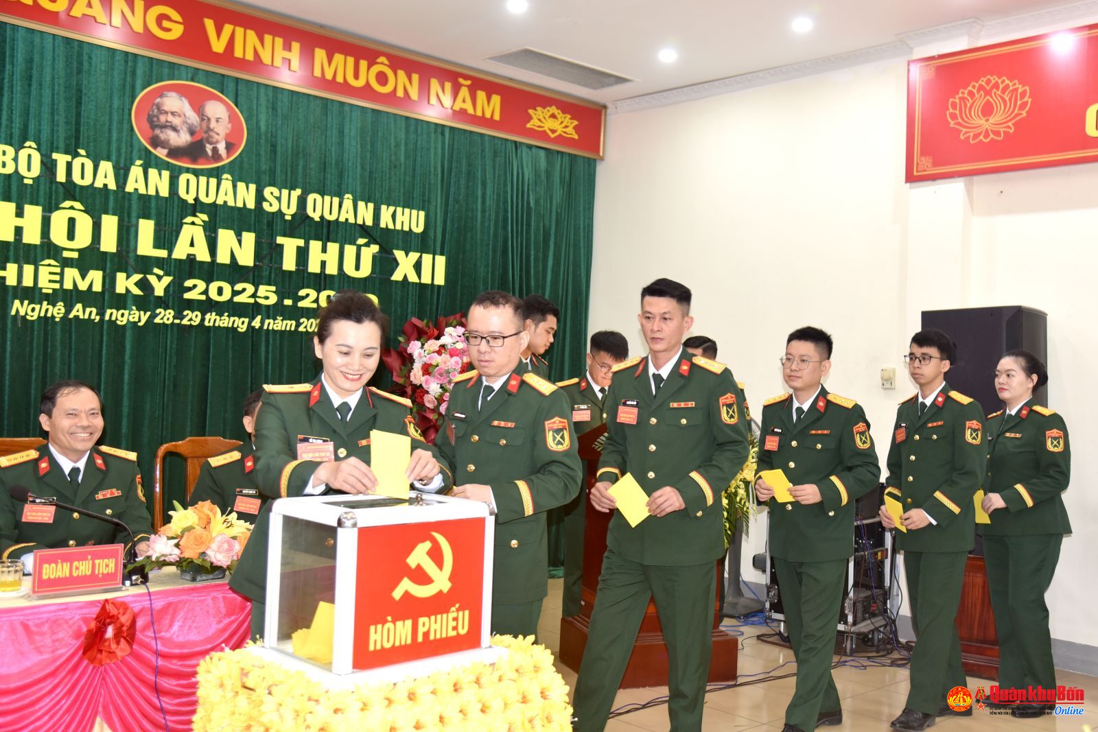 Dự Đại hội có Đại tá Nguyễn Thăng Long, Phó Chủ nhiệm Ủy Ban Kiểm tra Đảng ủy Cục Chính trị; Đại tá Phan Đình Quang, Phó Trưởng phòng Kế hoạch - Tổng hợp, Cục Chính trị; Thượng tá Trần Đình Thắng, Phó trưởng phòng Tổ chức - Cán bộ Tòa án Quân sự Trung ương, nguyên Phó Bí thư Đảng ủy Tòa án Quân sự Quân khu 4 nhiệm kỳ 2020 - 2025; đại biểu Phòng Kế hoạch tổng hợp (Cục Chính trị Quân khu) cùng 29 đảng viên trong Đảng bộ Tòa án Quân sự Quân khu.