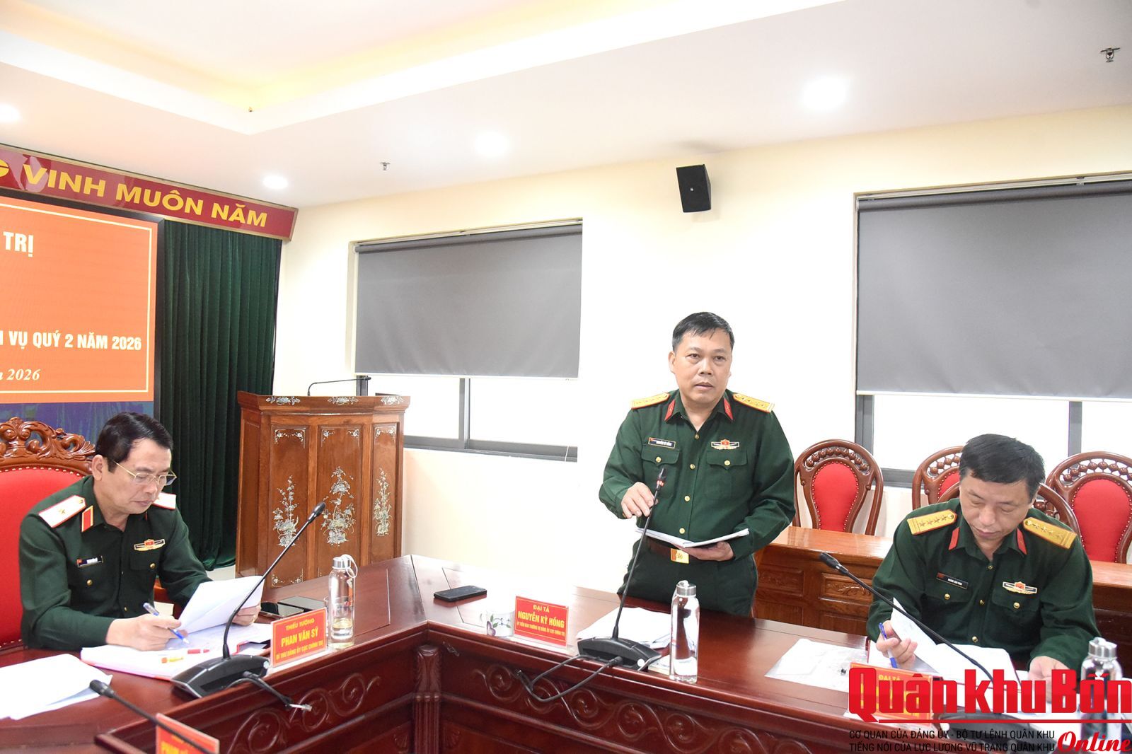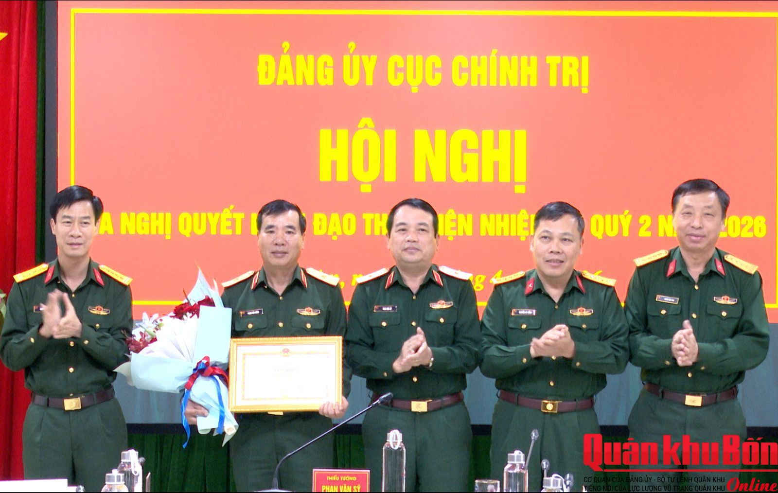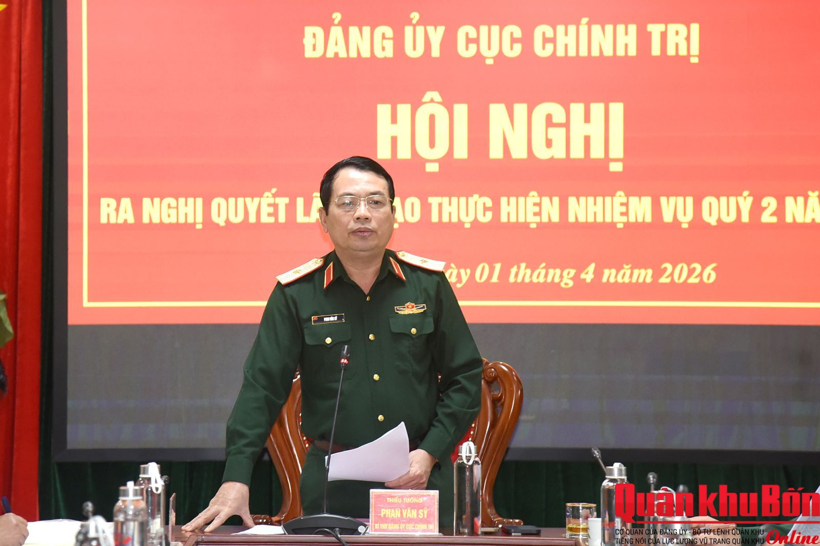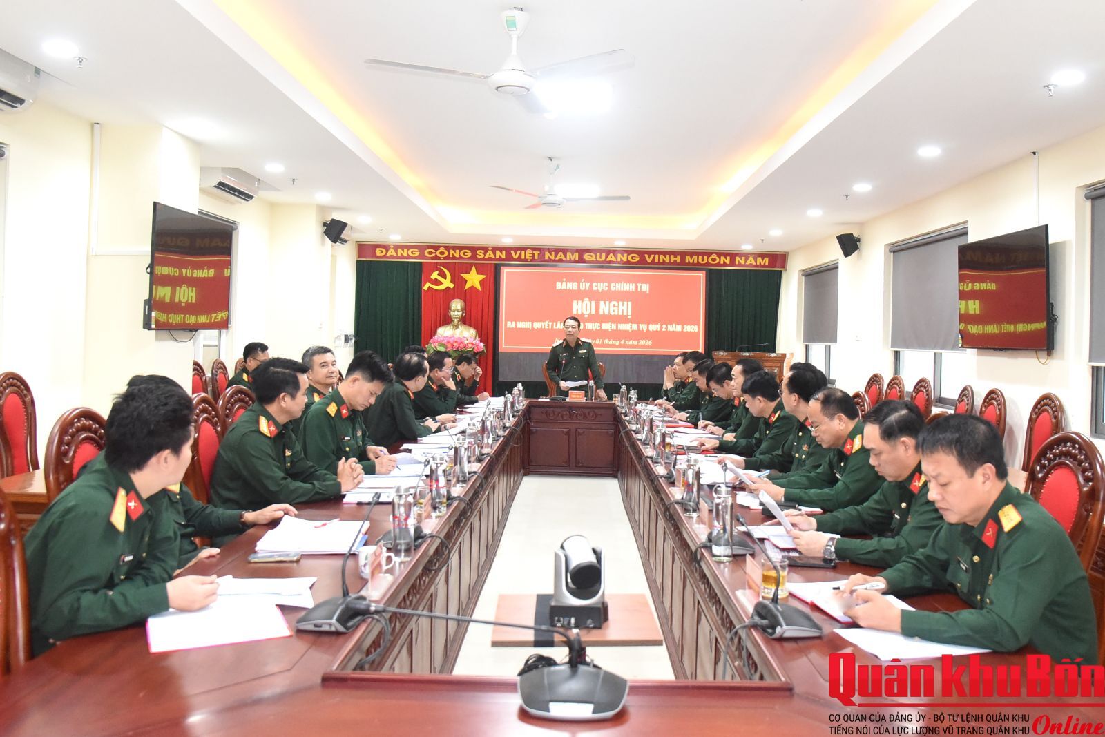 Chiều 01/4/2026, Đảng ủy Cục Chính trị Quân khu 4 tổ chức Hội nghị mở rộng ra Nghị quyết lãnh đạo thực hiện nhiệm vụ quý II năm 2026. Đồng chí Thiếu tướng Phan Văn Sỹ, Phó Chủ nhiệm Chính trị Quân khu, Bí thư Đảng ủy Cục Chính trị chủ trì Hội nghị. Dự Hội nghị có đồng chí Thiếu tướng Phạm Văn Đông, Ủy viên Ban Thường vụ Đảng ủy, Chủ nhiệm Chính trị Quân khu cùng các đồng chí trong Đảng ủy Cục Chính trị. Hội nghị mời mở rộng đồng chí Đại tá Nguyễn Tiến Dũng, Phó Chủ nhiệm Chính trị Quân khu cùng bí thư các chi bộ trong Đảng ủy Cục Chính trị.
