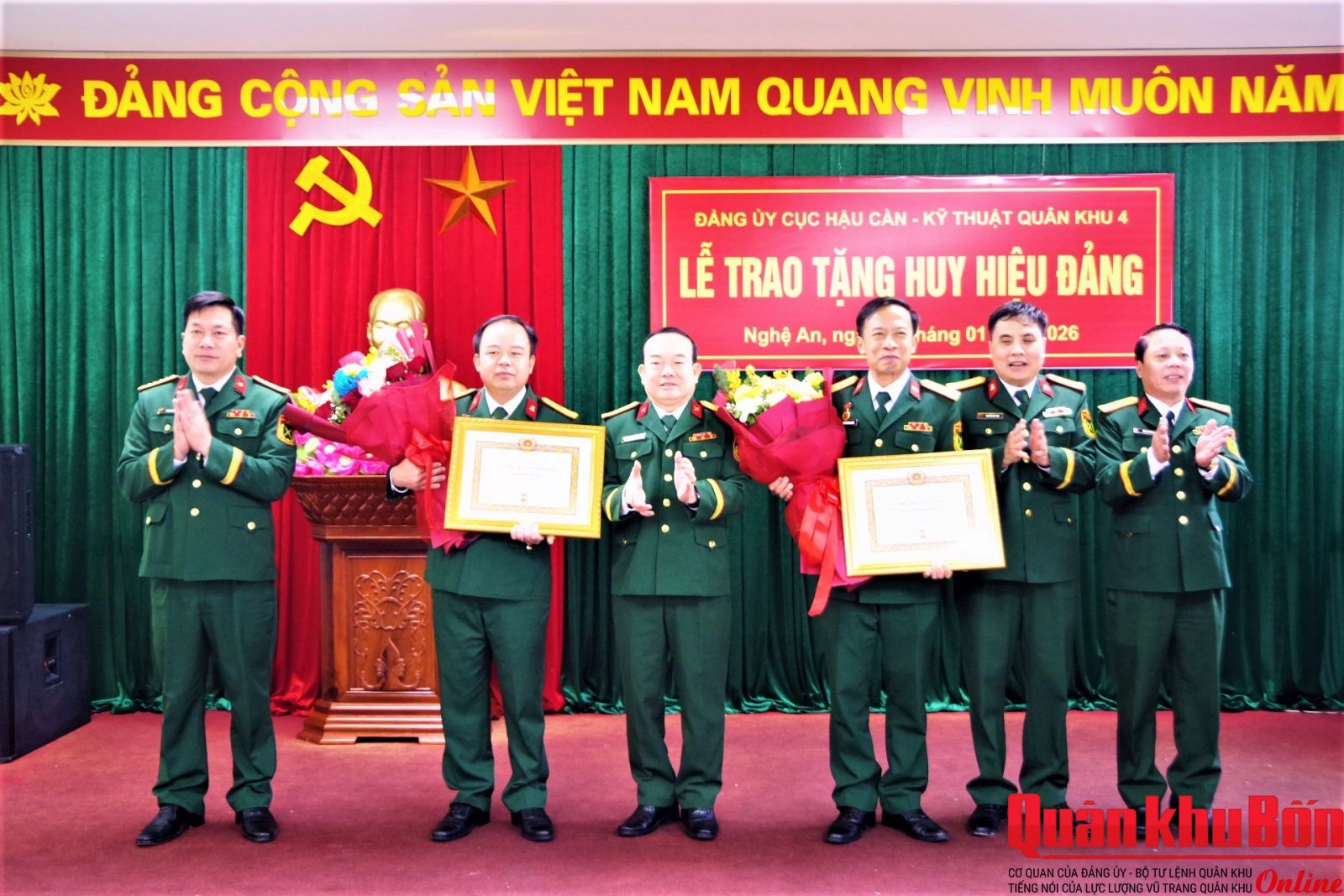 Sáng 20/1/2026, Đảng ủy Cục Hậu cần - Kỹ thuật Quân khu 4 tổ chức Lễ trao tặng Huy hiệu 30 năm tuổi Đảng cho Thiếu tướng Ngô Nam Cường, Ủy viên Ban Chấp hành Đảng bộ Quân khu , Phó Tư lệnh Quân khu 4 ; Đại tá Đinh Bạt Hùng, Trưởng phòng Xe máy - Vận tải và Trung tá Nguyễn Đình Cường, Trợ lý Phòng Xe máy - Vận tải, Cục Hậu cần - Kỹ thuật Quân khu.
