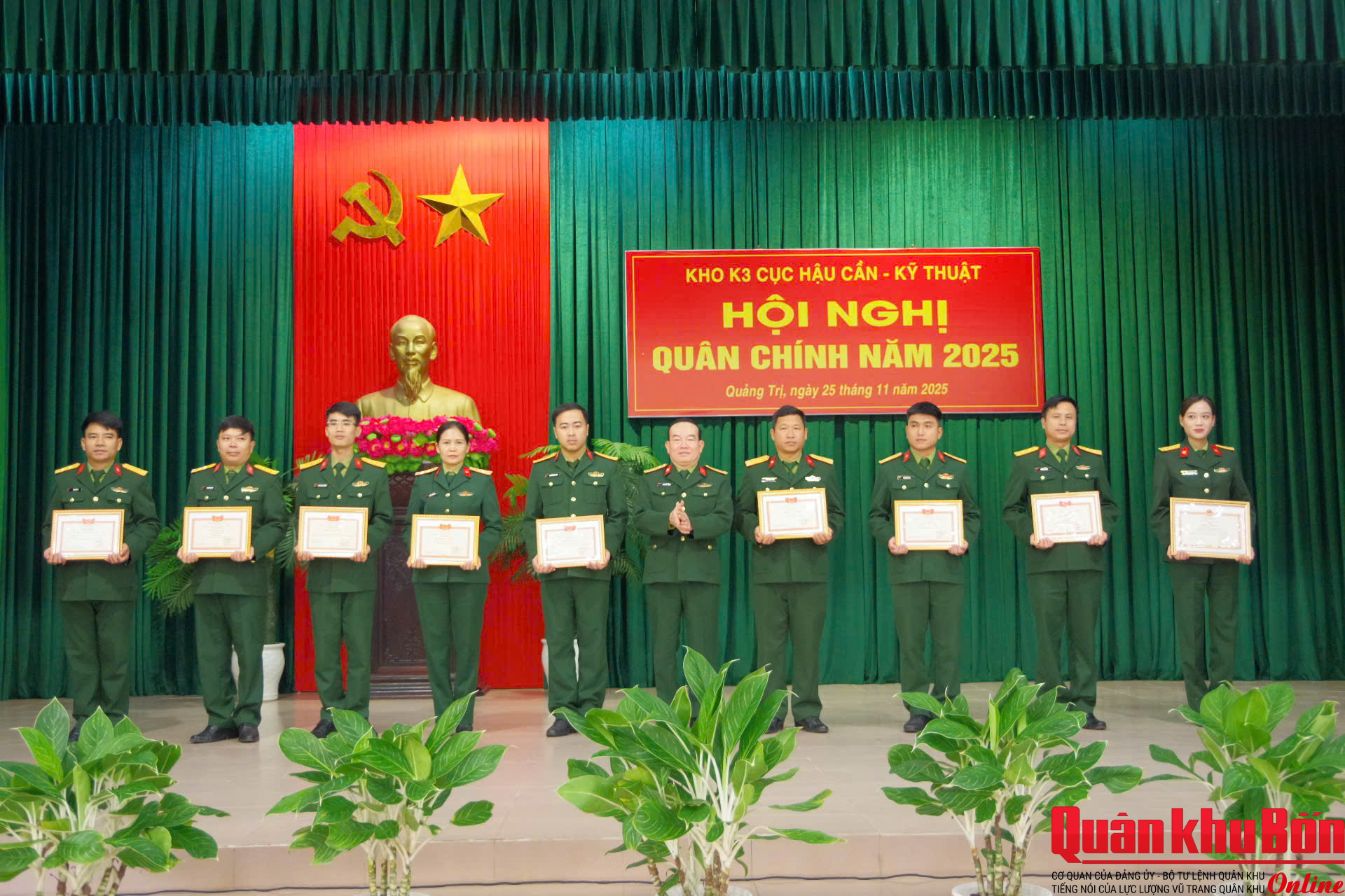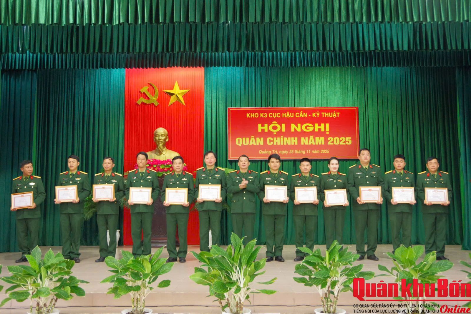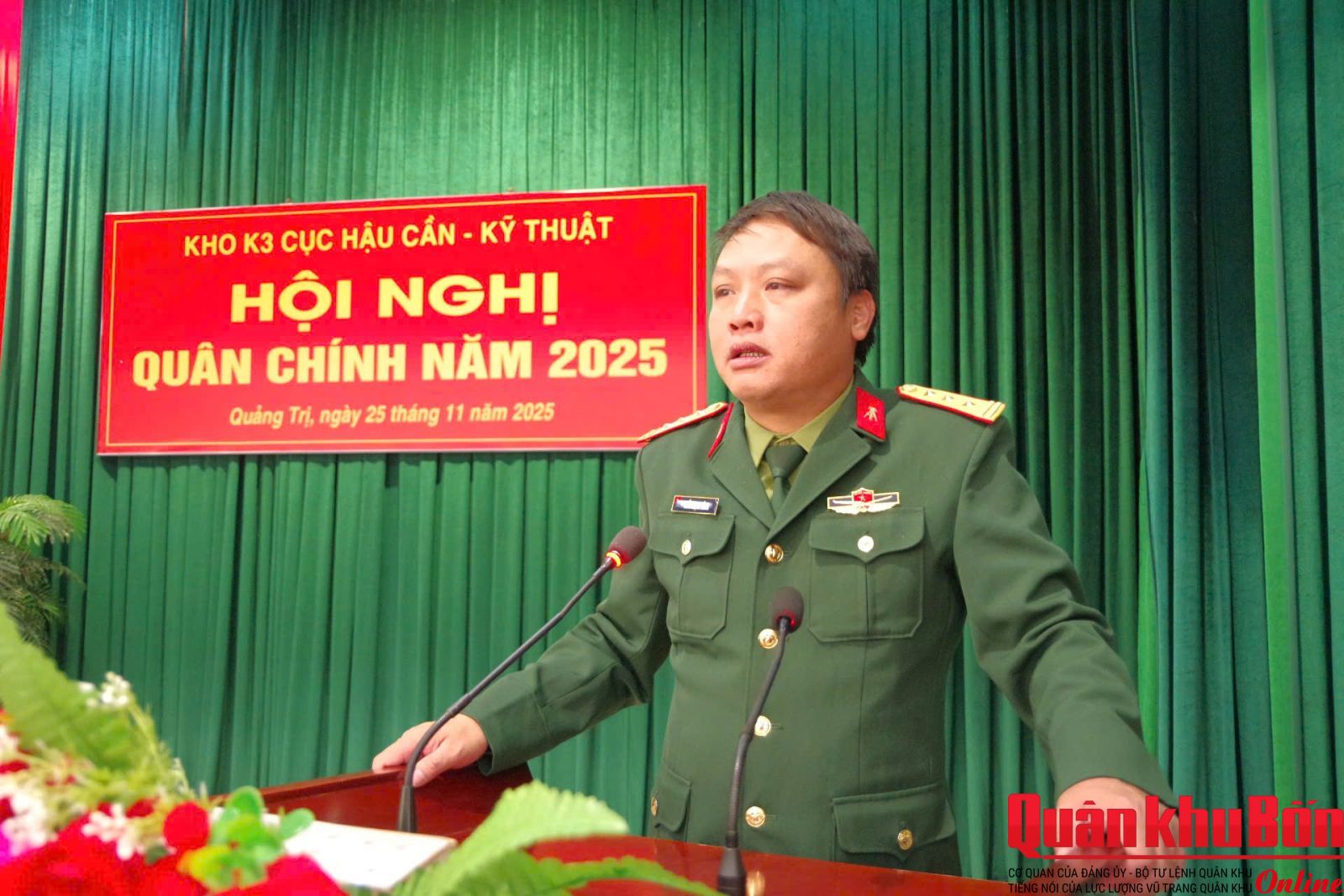 Sáng ngày 25/11/2025, Đảng ủy Kho K3 (Cục Hậu cần - Kỹ thuật Quân khu 4) tổ chức Hội nghị ra Nghị quyết lãnh đạo thực hiện nhiệm vụ năm 2026. Thượng tá Đoàn Minh Ngọc, Bí thư Đảng ủy, Chính trị viên Kho chủ trì hội nghị. Đại tá Phan Gia Thuận, Bí thư Đảng ủy, Chính ủy Cục dự, chỉ đạo Hội nghị. Dự, theo dõi hội nghị có đại biểu Ủy ban Kiểm tra Đảng ủy Cục, các phòng: Tham mưu - Kế hoạch, Quân y thuộc Cục Hậu cần - Kỹ thuật. Tham dự hội nghị có các đồng chí trong Đảng ủy Kho K3, Bí thư Đảng ủy bộ phận và Bí thư các chi bộ trực thuộc.