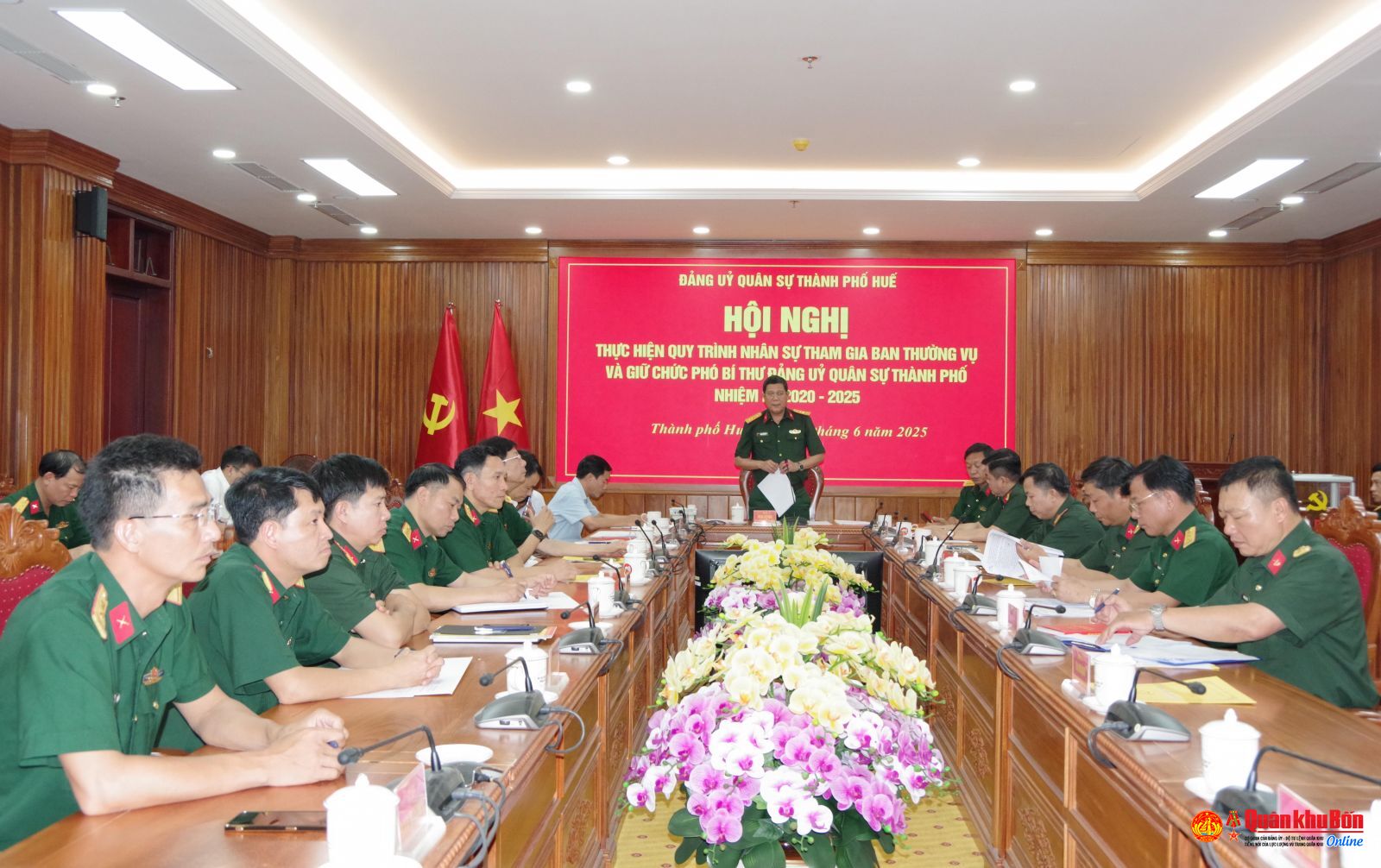 Sáng 23/6/2025, Đảng ủy Quân sự thành phố Huế đã tổ chức hội nghị thực hiện quy trình nhân sự tham gia Ban Thường vụ và giữ chức Phó Bí thư Đảng ủy Quân sự thành phố nhiệm kỳ 2025 - 2030. Đại tá Hoàng Văn Nhân, Phó Bí thư Đảng ủy, Chính ủy Bộ Chỉ huy Quân sự (CHQS) thành phố chủ trì Hội nghị. Đồng chí Nguyễn Văn Phương, Phó Bí thư Thành ủy, Chủ tịch Ủy ban Nhân dân thành phố Huế dự và chỉ đạo hội nghị.