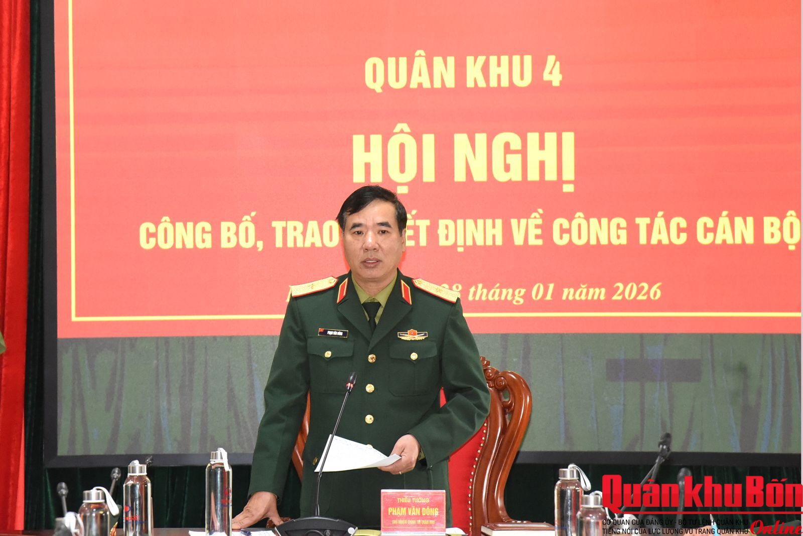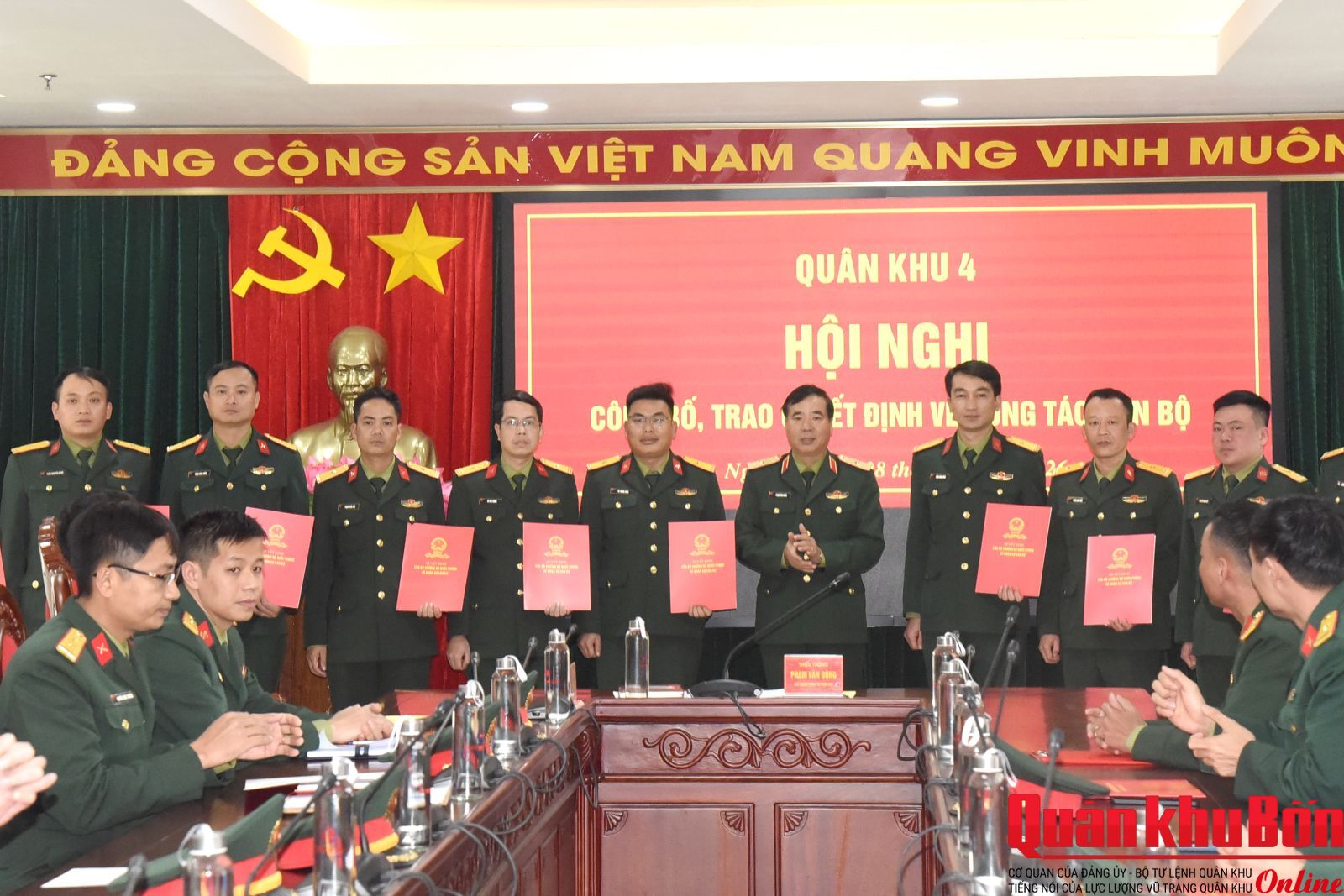 Chiều ngày 28/01/2026, Quân khu 4 đã tổ chức Hội nghị công bố và trao quyết định về công tác cán bộ. Thiếu tướng Phạm Văn Đông, Ủy viên Ban Thường vụ Đảng ủy, Chủ nhiệm Chính trị Quân khu chủ trì hội nghị.