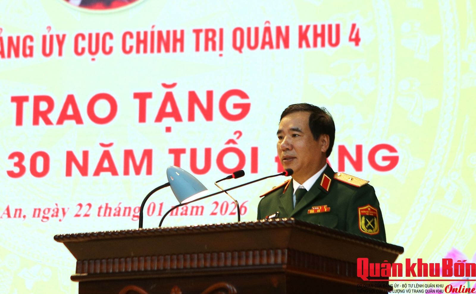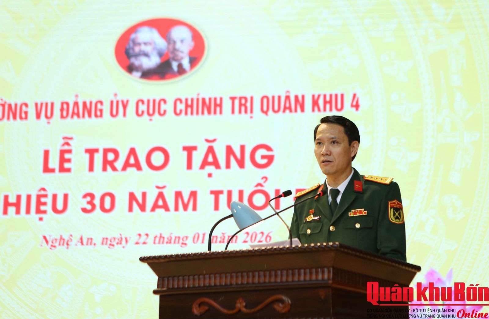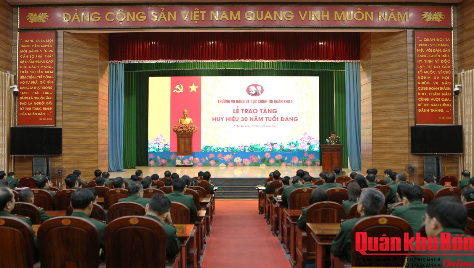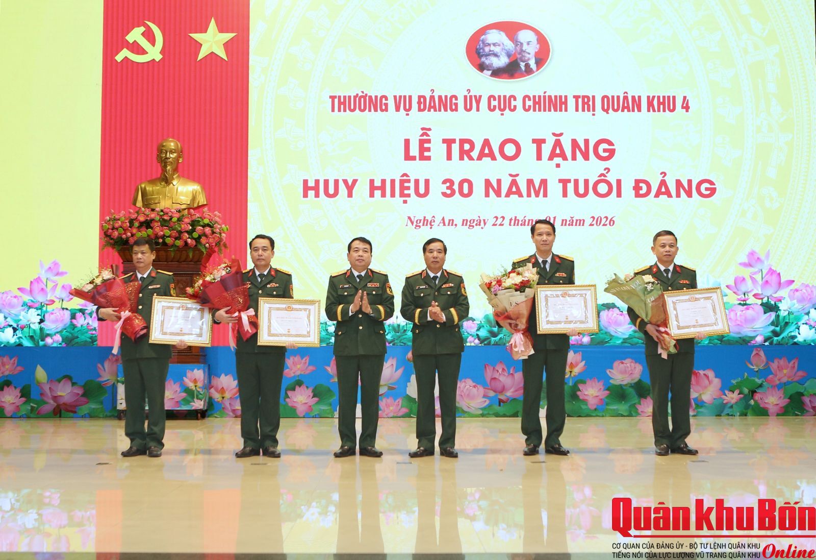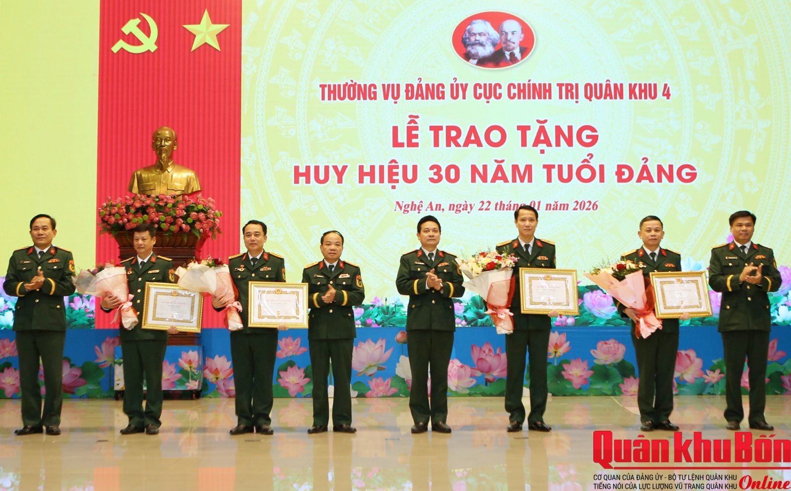 Sáng 22/1/2026, Thường vụ Đảng ủy Cục Chính trị đã long trọng tổ chức Lễ trao tặng Huy hiệu 30 năm tuổi Đảng cho 4 đồng chí đảng viên. Dự buổi lễ có Thiếu tướng Phạm Văn Đông, Ủy viên Ban Thường vụ Đảng ủy, Chủ nhiệm Chính trị Quân khu; Thiếu tướng Phan Văn Sỹ, Bí thư Đảng ủy Cục Chính trị, Phó Chủ nhiệm Chính trị Quân khu; các đồng chí trong Thường vụ Đảng ủy Cục Chính trị.