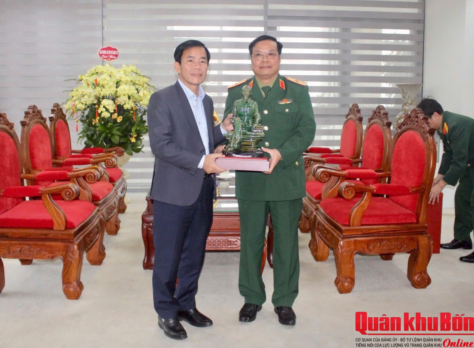 Nhân dịp này, Đoàn công tác Quân khu 4 cũng đã đến thăm, chúc Tết Tỉnh ủy, Ủy ban Nhân dân tỉnh Quảng Trị; Công an tỉnh Quảng Trị; Hội Cựu chiến binh tỉnh Quảng Trị, các cơ quan báo chí, truyền thông trên địa bàn. Qua đó, trao đổi tình hình, tăng cường mối quan hệ phối hợp, đoàn kết trong thực hiện nhiệm vụ quốc phòng, an ninh trên địa bàn.