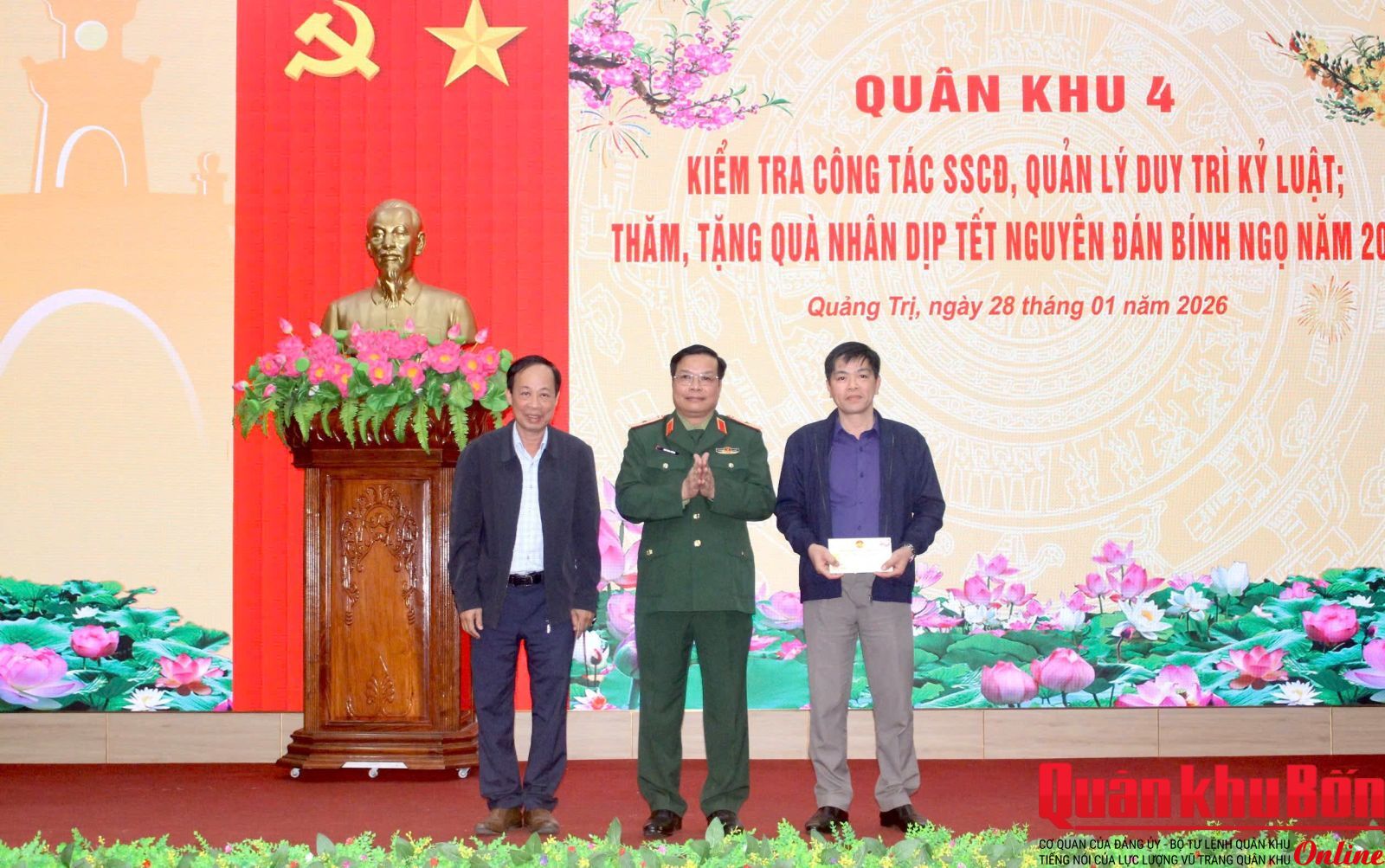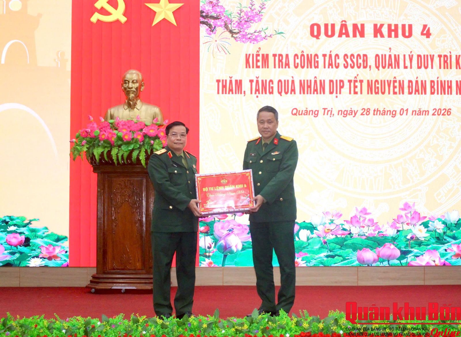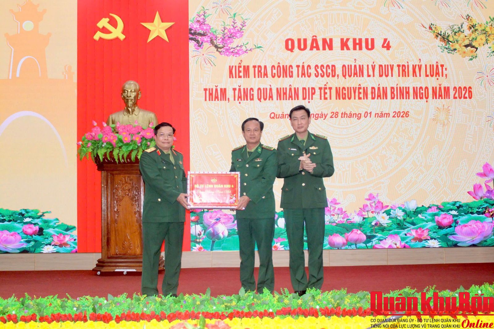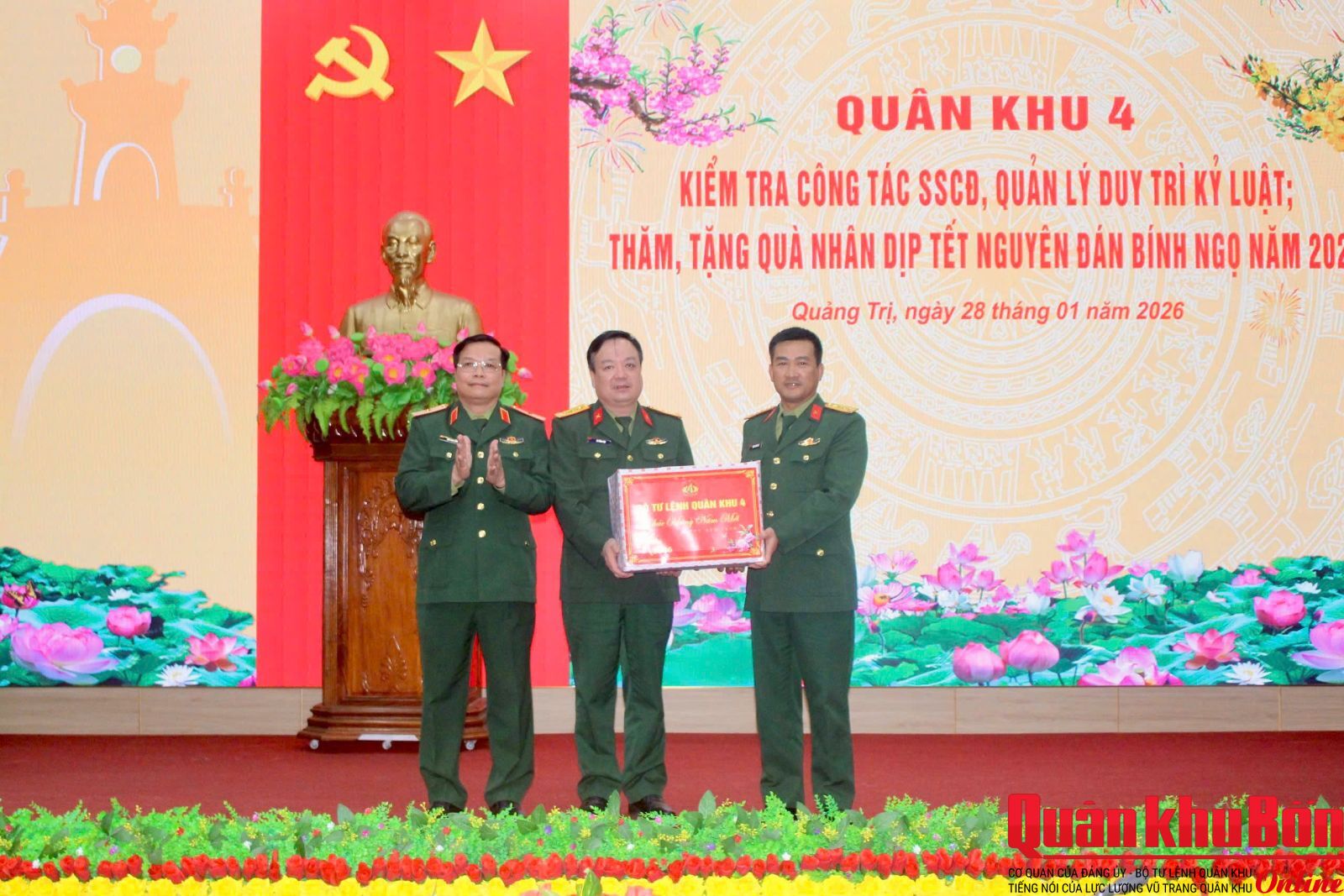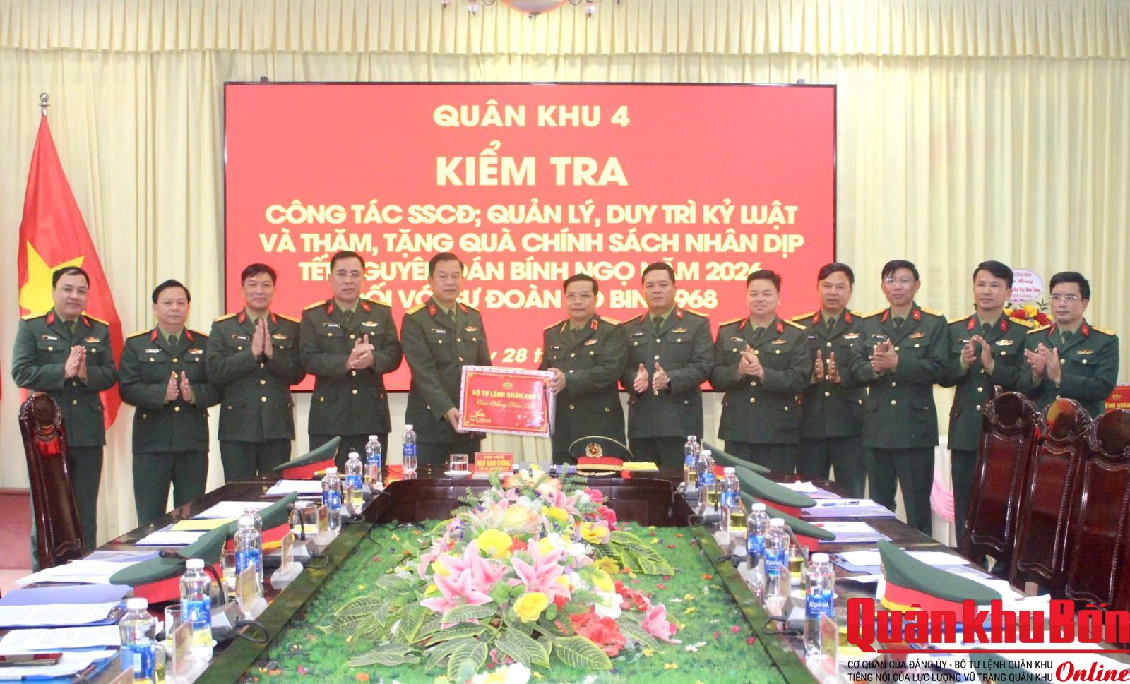 Nhân dịp Tết Nguyên đán Bính Ngọ năm 2026, trong hai ngày 28 và 29/1/2026, Đoàn công tác Quân khu 4 do Thiếu tướng Ngô Nam Cường, Phó Tư lệnh Quân khu 4 làm Trưởng đoàn đã đến kiểm tra công tác sẵn sàng chiến đấu (SSCĐ), quản lý, duy trì kỷ luật và thăm, tặng quà chính sách trên địa bàn tỉnh Quảng Trị. Tham gia đoàn công tác có Thượng tá Phan Duy Thuận, Phó Chủ nhiệm Hậu cần – Kỹ thuật Quân khu, cùng đại diện các cơ quan chức năng Quân khu 4.