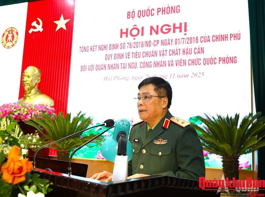 Sáng 26/11/2025, Bộ Quốc phòng tổ chức Hội nghị tổng kết thực hiện Nghị định số 76/2016/NĐ-CP ngày 1-7-2016 của Chính phủ quy định về tiêu chuẩn vật chất hậu cần đối với quân nhân tại ngũ, công nhân và viên chức quốc phòng.