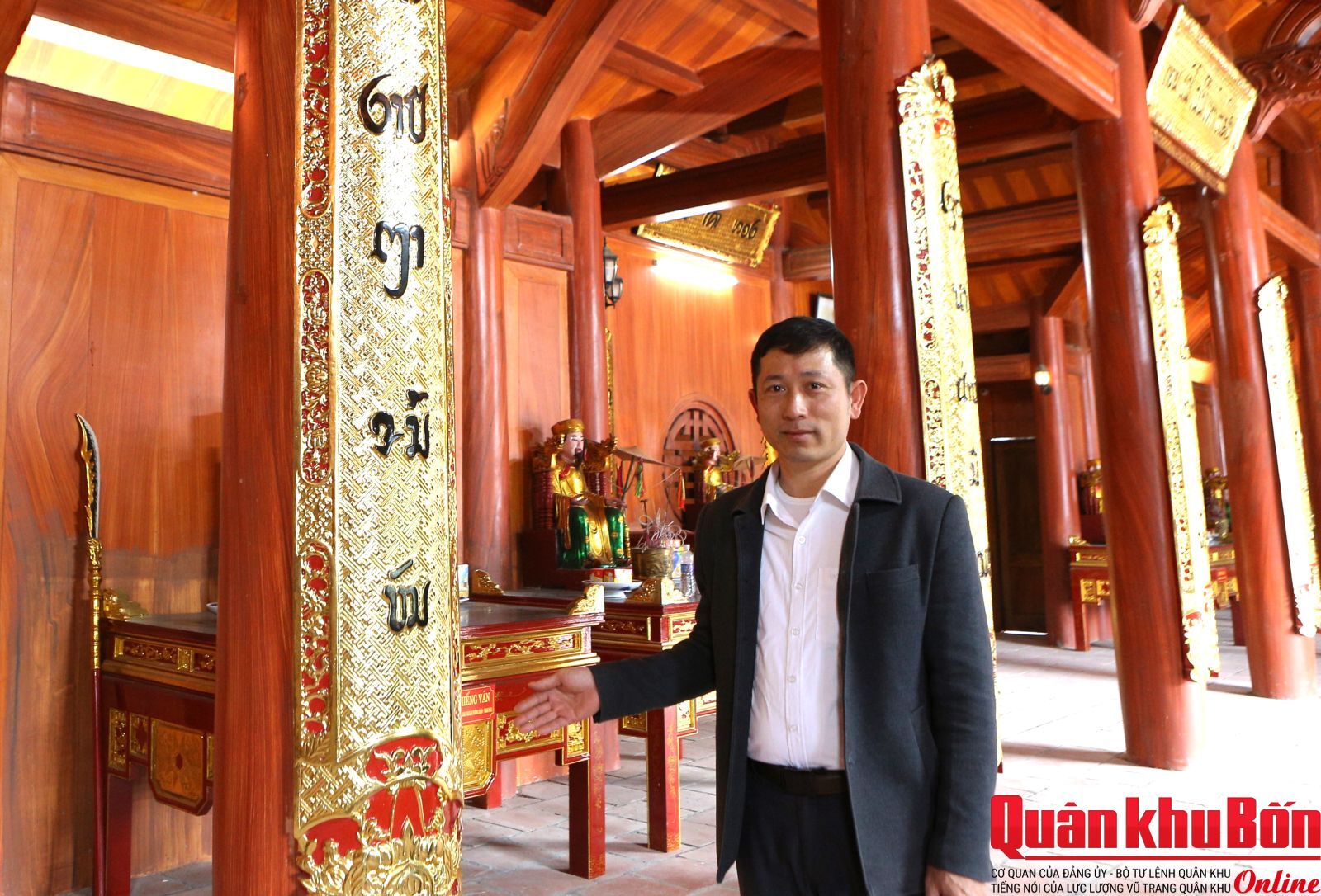 Ấn tượng đầu tiên không chỉ là sự nhiệt tình, mà là chiều sâu hiểu biết của anh. Từ lịch sử hình thành ngôi đền, cấu trúc chín gian gắn với quan niệm vũ trụ của người Thái, đến các thành phần thờ tự, tên gọi các thần linh, các bàn thờ của 9 mường, các nghi thức trong lễ hội dâng trâu… anh đều trình bày rành mạch, hệ thống. Đặc biệt, khi dừng lại trước những dòng chữ Thái cổ còn lưu trên xà, cột, anh đọc thông thạo, giải nghĩa cặn kẽ. Trong khoảnh khắc ấy, tôi hiểu rằng phía sau dáng vẻ điềm đạm của một cán bộ cơ sở là cả một niềm trăn trở lớn lao với văn hoá dân tộc mình.